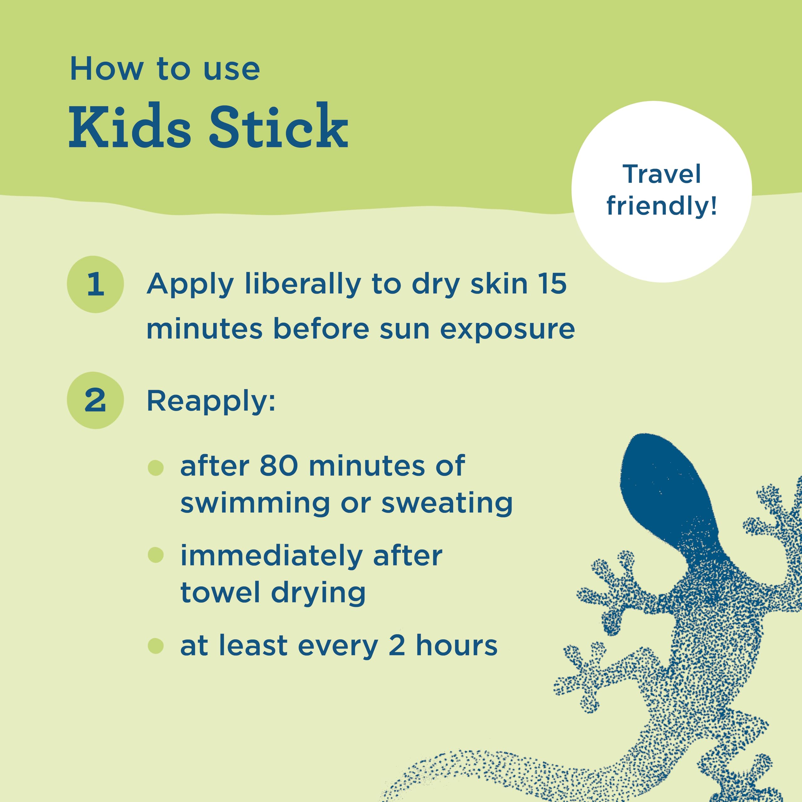 Protect little faces on the go with Blue Lizard Kids Mineral Sunscreen Stick. This broad-spectrum UVA/UVB SPF 50 protection glides on easily, rubs in clear, and dries smooth, not sticky. Maximum water resistance (80 minutes) means more fun in the sun. Made with skin-nourishing botanicals, this formula helps nourish your little one’s skin. Throw it into your bag, backpack, or pocket for on-the-go broad-spectrum protection. This sunscreen stick is formulated with mineral active ingredients. It is vegan, cruelty-free, paraben-free, fragrance-free, and free from potentially harsh chemical sunscreen active ingredients that might irritate sensitive skin. Pocket-sized and TSA-friendly, this is the perfect travel companion to our sunscreen lotions. How to Use: Apply liberally to dry skin 15 minutes before sun exposure. Reapply: after 80 minutes of swimming or sweating, immediately after towel drying, or at least every 2 hours. For topical use only. Keep out of reach of children. For children under 6 months of age: Ask a doctor. Sun protection measures: Spending time in the sun increases your risk of skin cancer and early skin aging. To decrease this risk, regularly use a sunscreen with a broad spectrum SPF value of 15 or higher and other sun protection measures including: Limit time in the sun, especially from 10 a.m. to 2 p.m. Wear long-sleeved shirts, pants, hats and sunglasses. Protect the product in the container from excessive heat and direct sun. Product may stain some fabrics. We ♥ the Reef: This product is formulated without Oxybenzone or Octinoxate to help protect fragile reef ecosystems. Pediatricians trust Blue Lizard Australian Sunscreen, so you can have peace of mind that your child’s skin is protected from the sun.