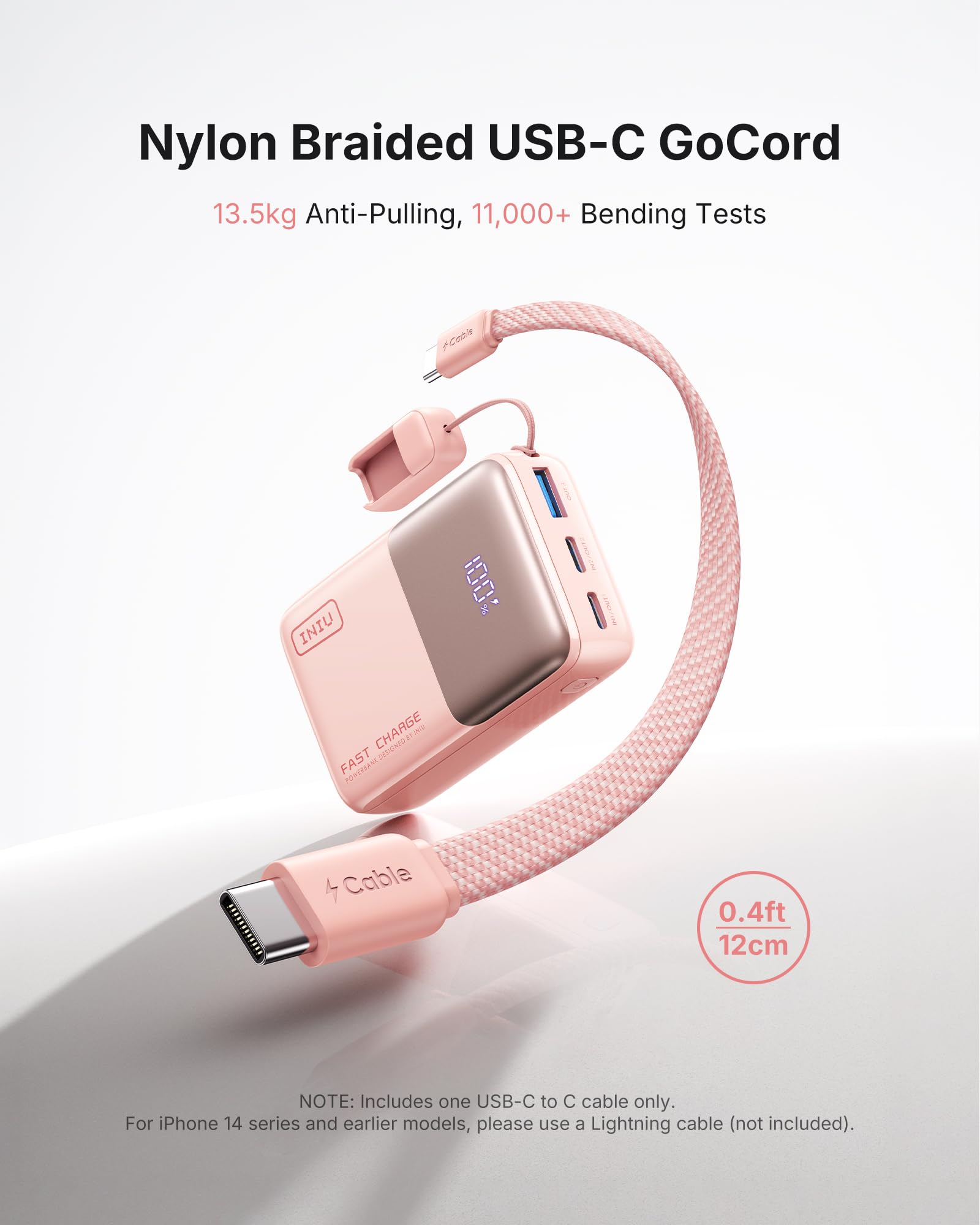 Detachable Lanyard USB C Cable: INIU's power bank features a new detachable lanyard cable design for added convenience. This USB-C to C cable supports both charging and recharging and since it's removable, you can easily use it with other power banks or devices.