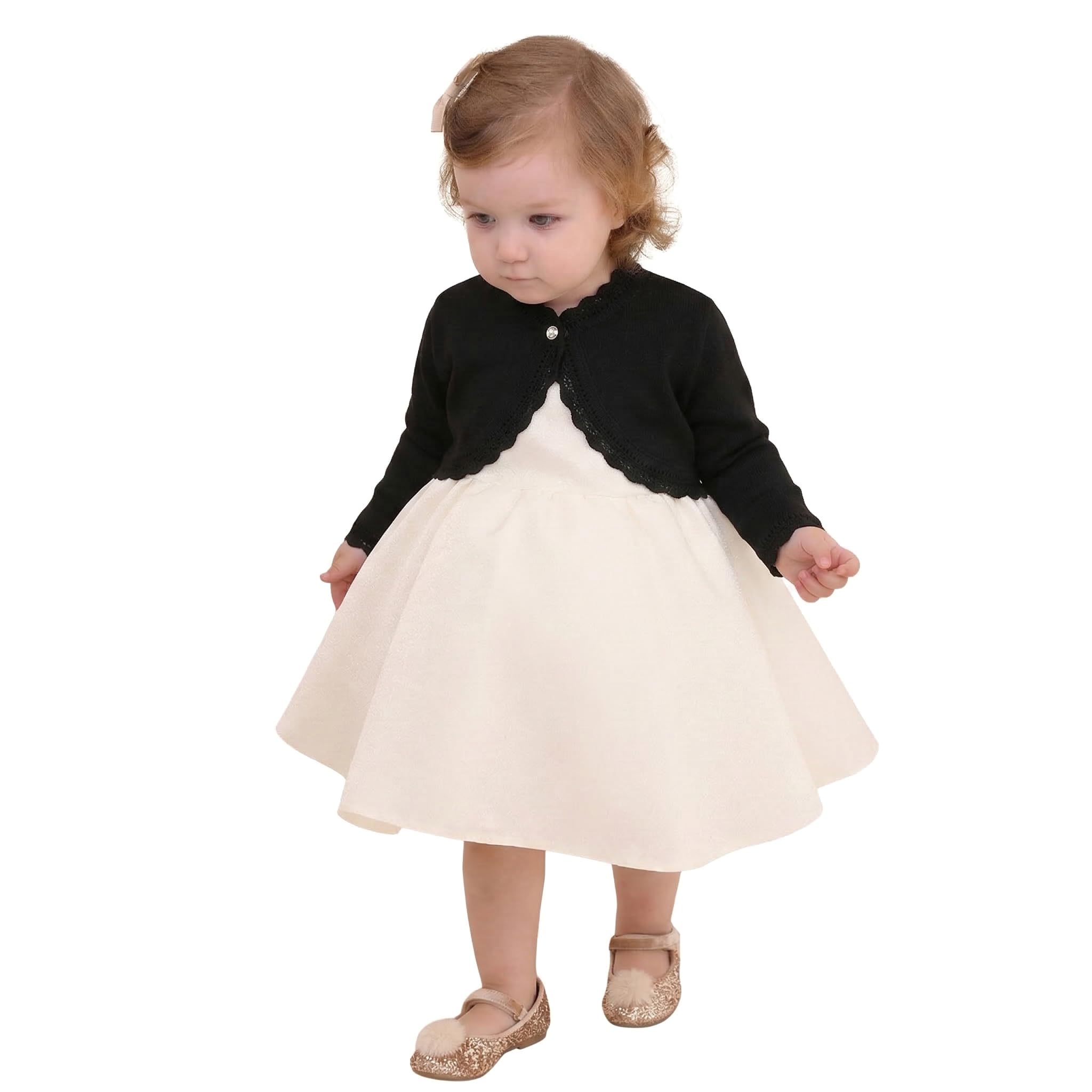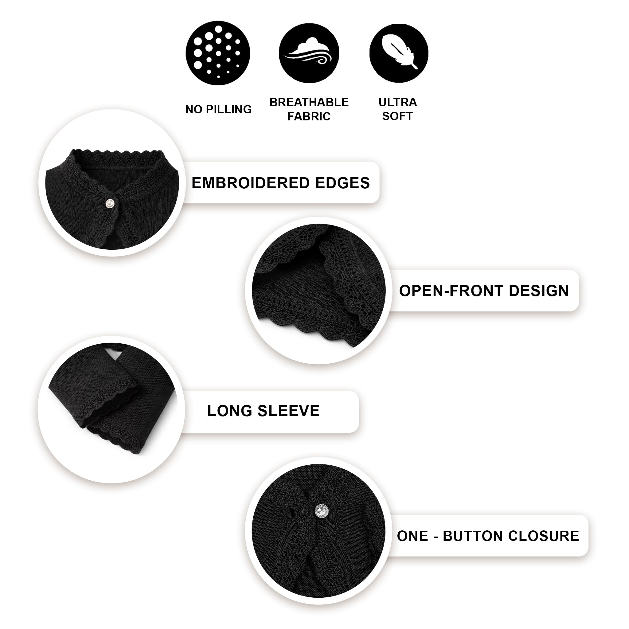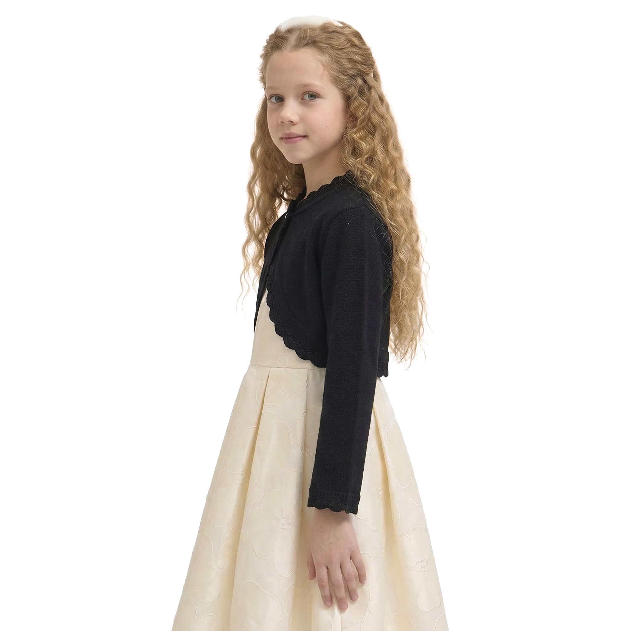 Long sleeve eyelet hem design bolero is perfect for over any dress