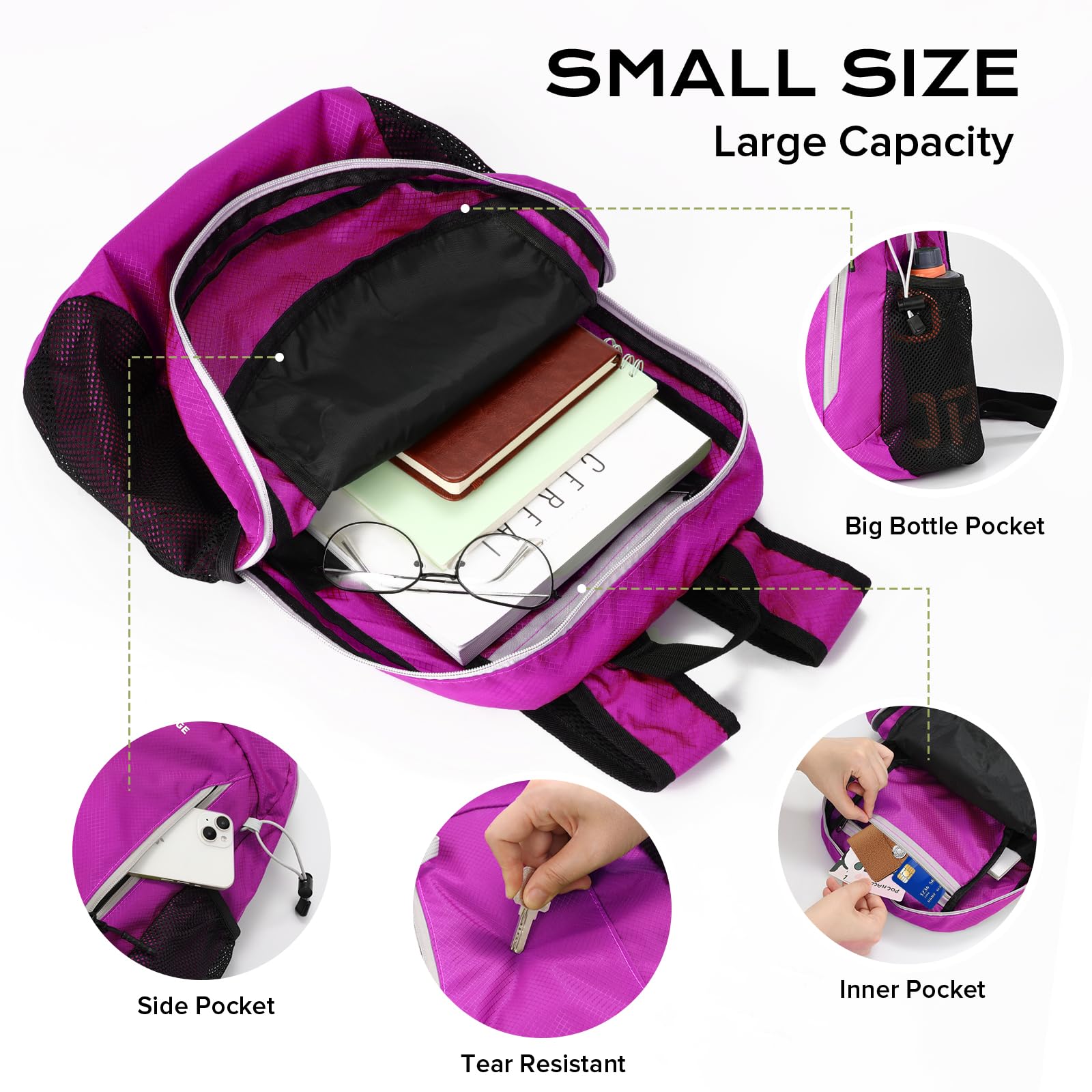 Foldable into a Pouch and Compact : When not in use, hikers can easily fold this collapsible small back pack into its inner pocket, as small as a palm, which can be easily packed into your bag or suitcase, providing additional storage space to carry extra gear or souvenirs