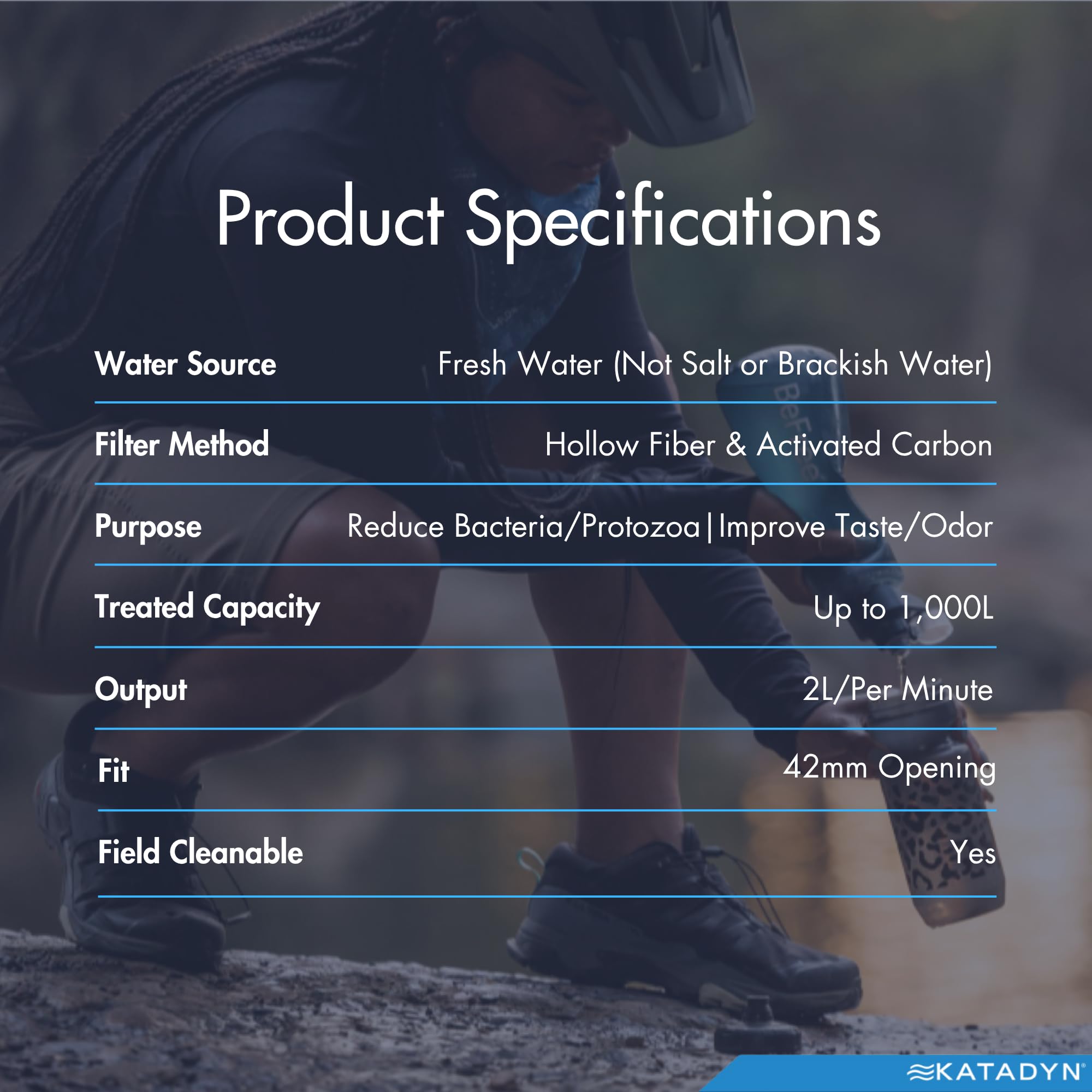 Keep your Katadyn AC BeFree water filter performing at its best with these high-quality replacement items. Specifically designed for the AC BeFree, components that help maintain optimal filtration performance and water quality during all your outdoor adventures. EZ-Clean Membrane: Features a high-flow hollow fiber membrane that filters out bacteria and protozoa. Thanks to its design, it can be easily cleaned in seconds - no tools required - by simply shaking or swishing in water.