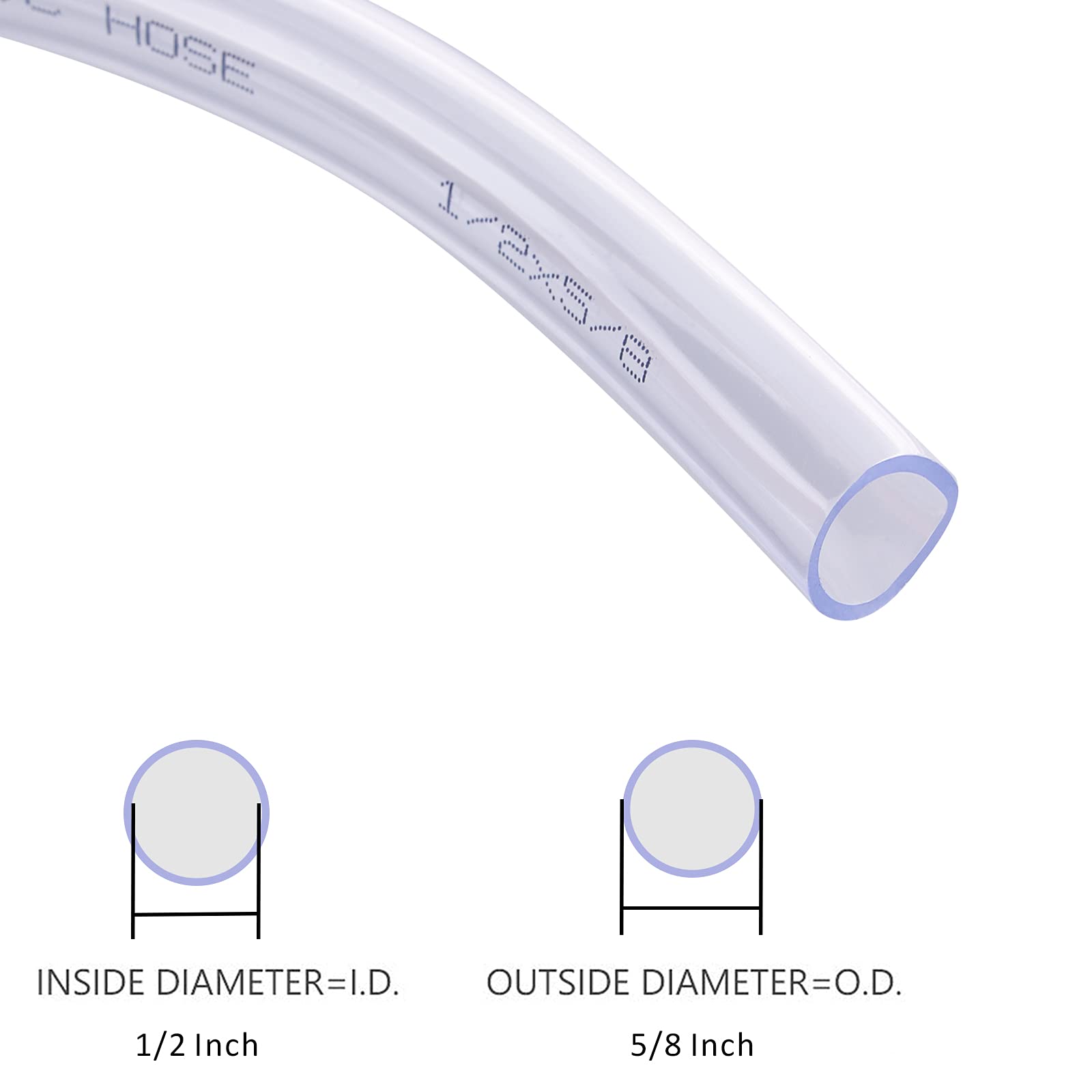Size - Plastic PVC tubing, 1/2 inch ID X 5/8 inch OD Length: 50 Feet