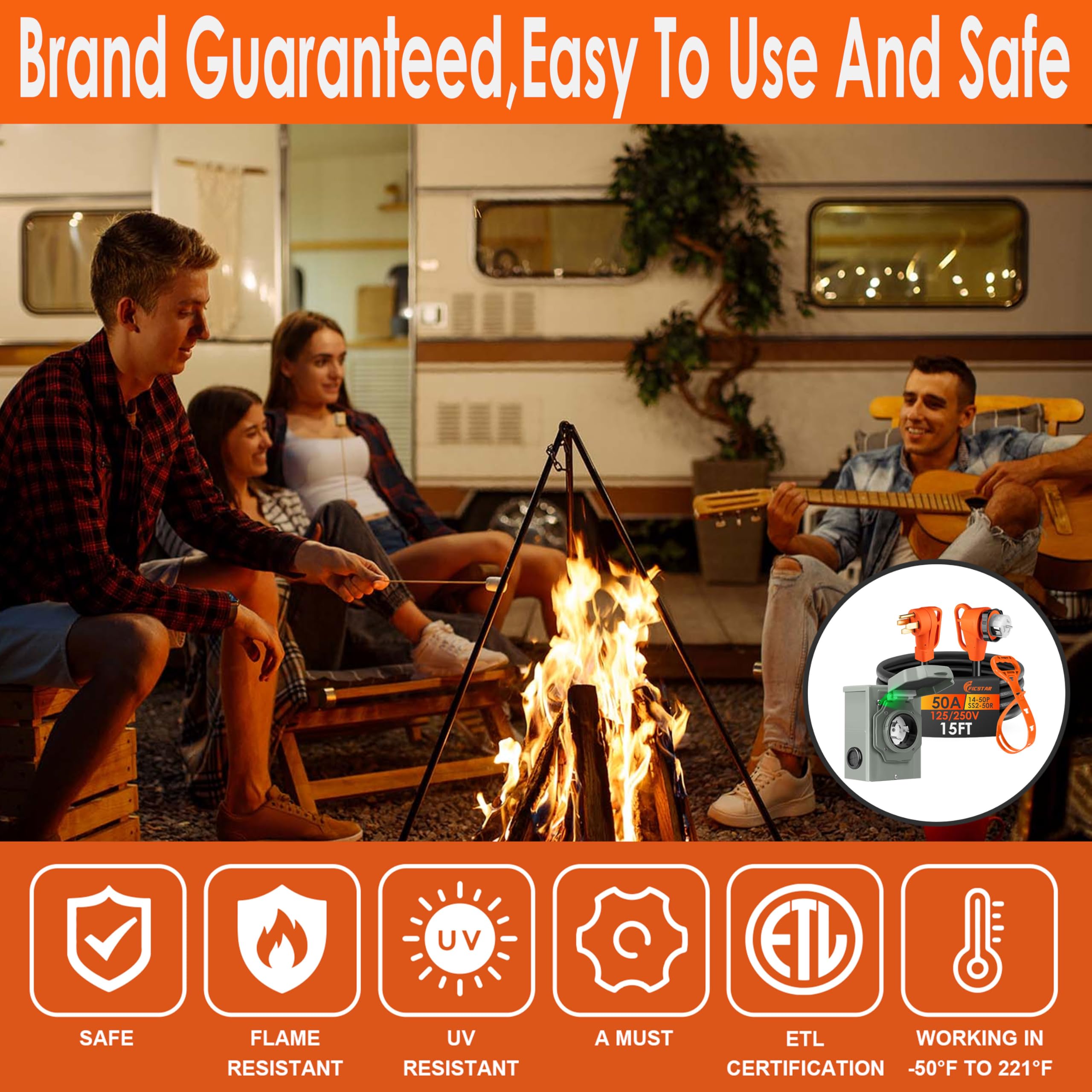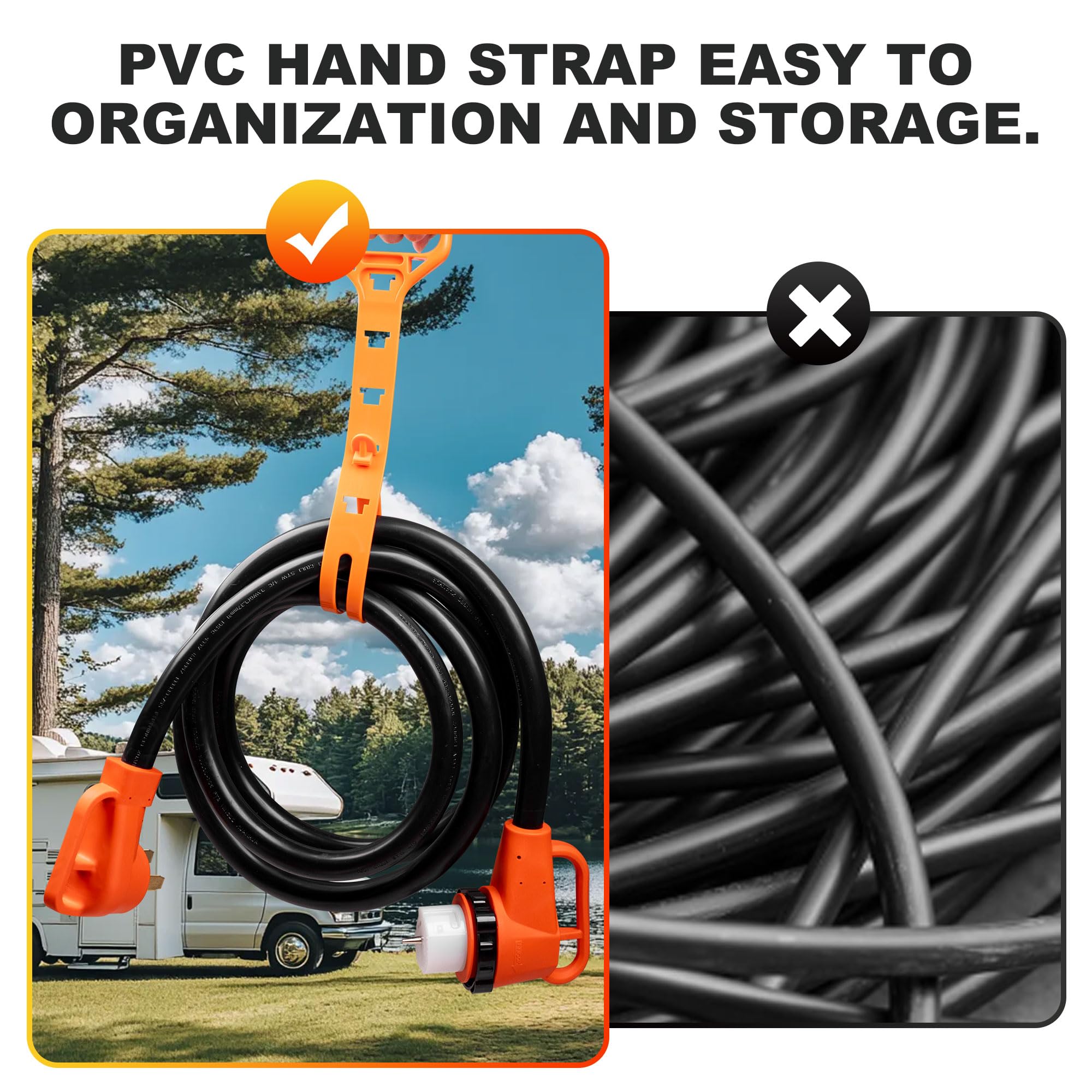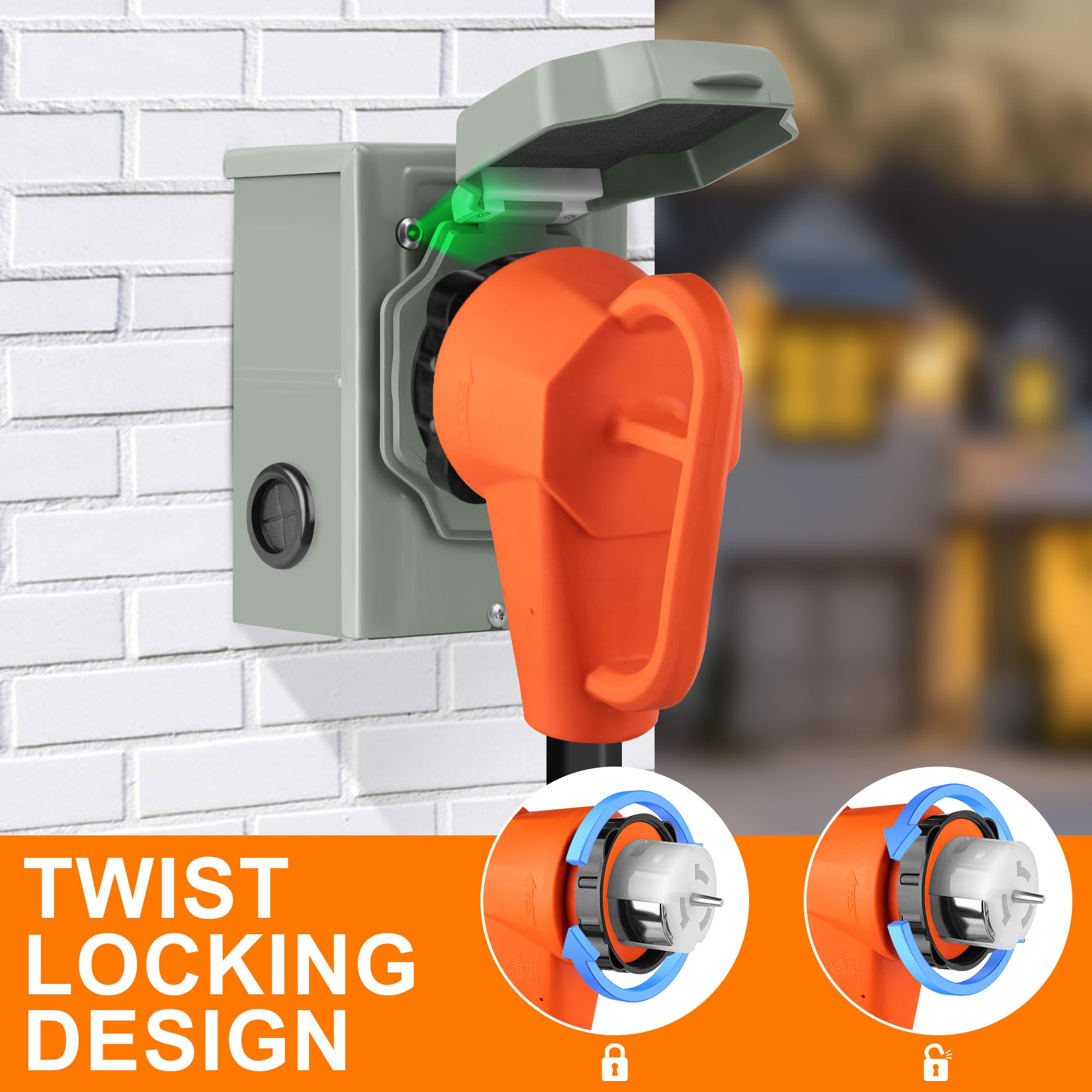 【Ergonomic Design】In order for you to better plug, unplug and protect the 50a generator cord and 50amp generator inlet box, both ends of the Ficstar 50 amp cord are designed with 90° grips, very reasonable, The design also extends the service life of the Waterproof Combo Kit