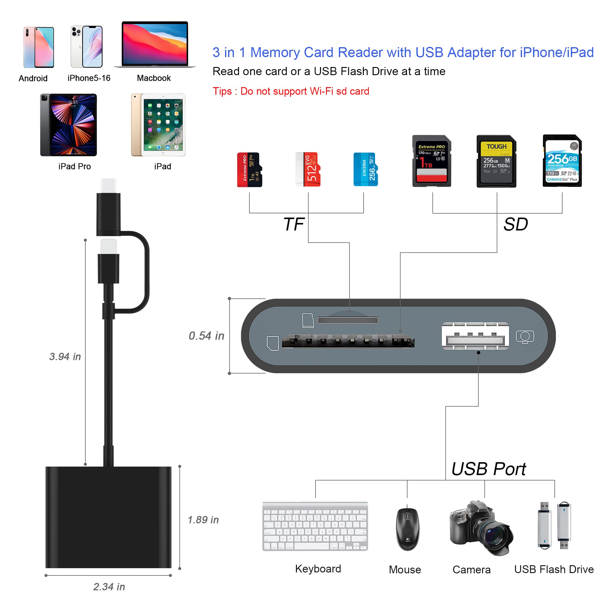 [Accessories for iPhone with Dual Card Slots]: This SZHAIYIJIN Memory Card Reader for iPhone Support SD Card and TF Card, Secure Digital (Standard SD/SDHC) and Micro SD(TF) card. Do NOT Support Wi-Fi SD Memory card.