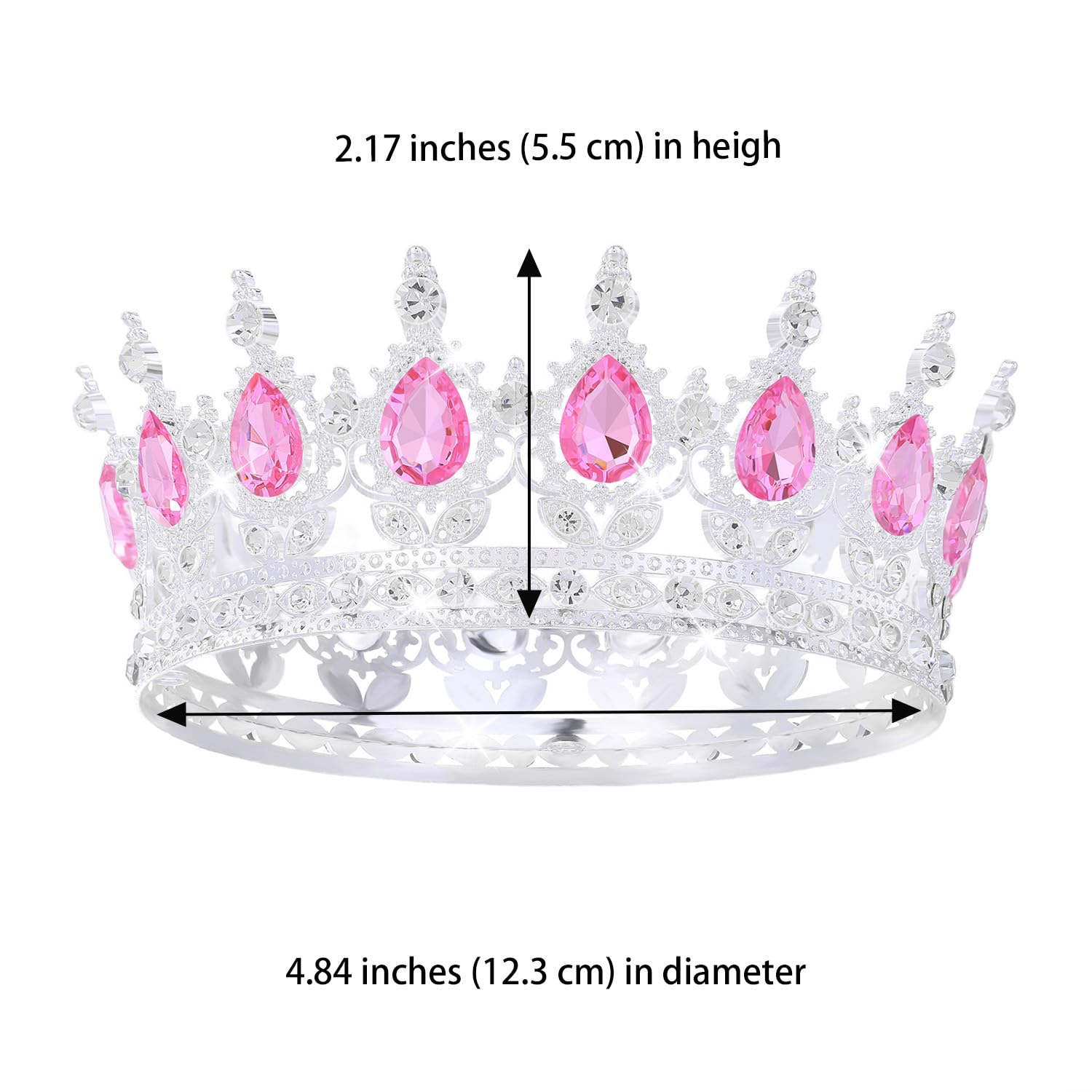 Size and Package: Our tiara crown are suitable for adult women and girls, Diameter about: 4.72 inches, Height about: 2.0 inches, Weight about: 0.234 lb. The package includes four clips to fix the crown on your head and brings you a long and comfortable wearing experience.