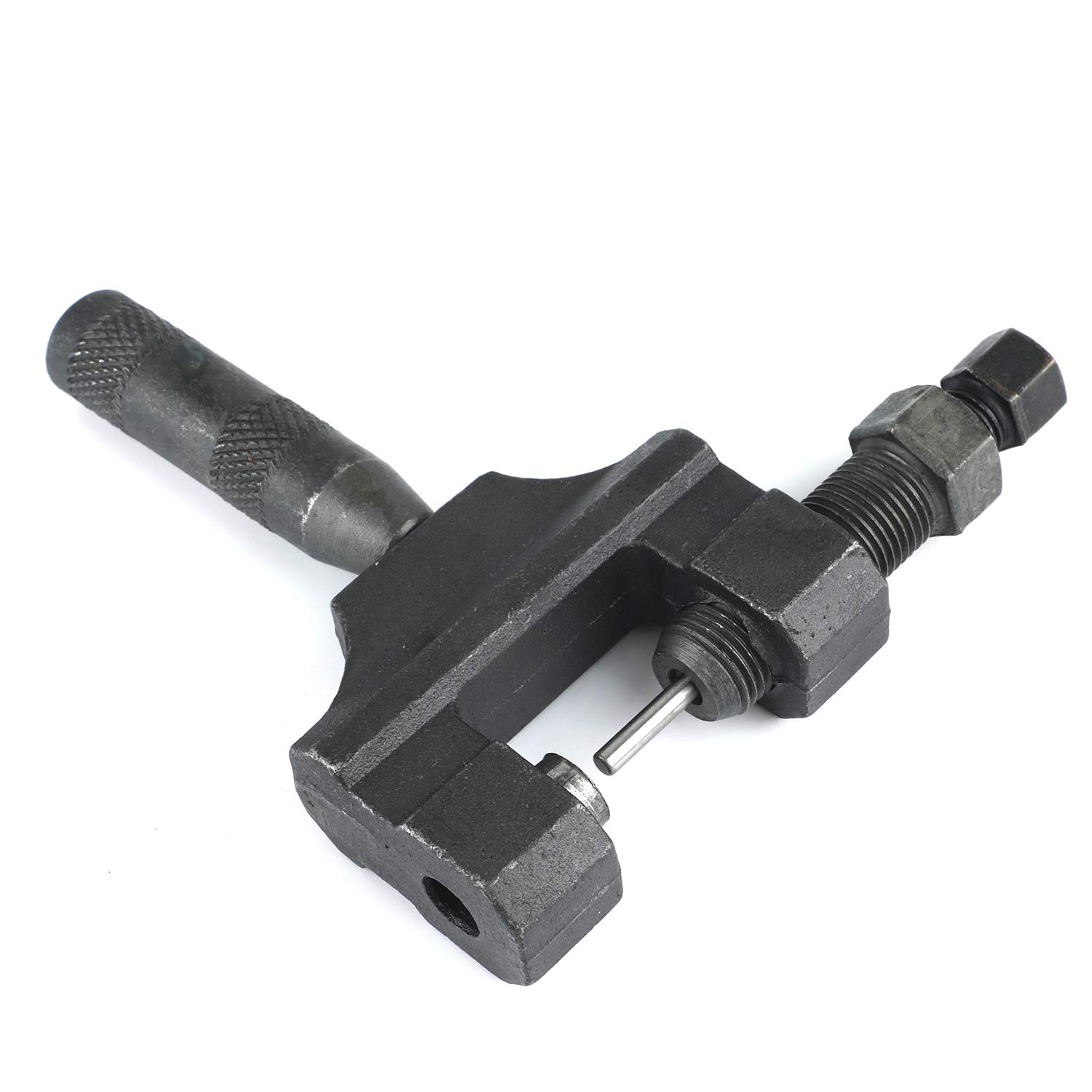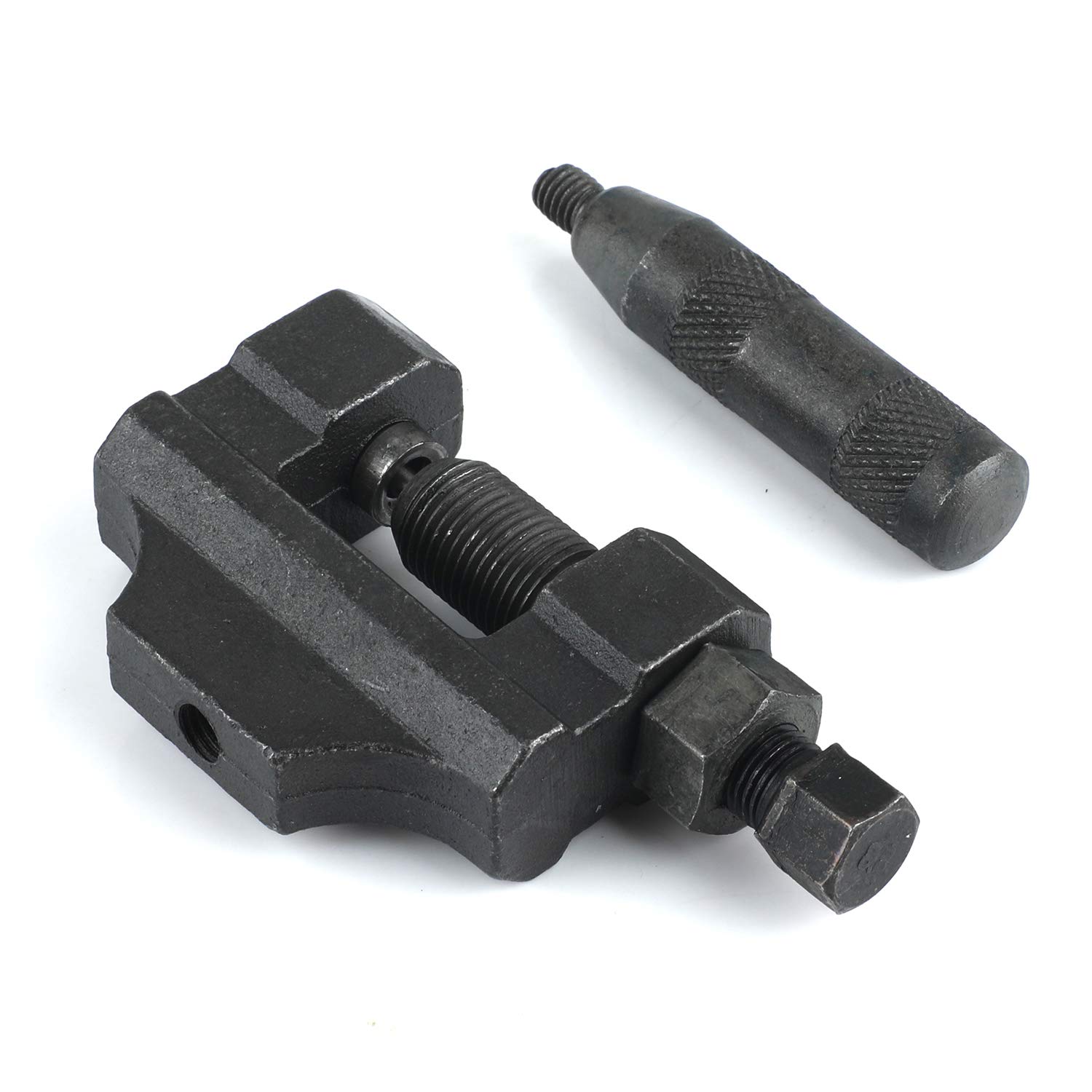 Package includes: 1 X Chain Breaker Tool The item is a professional and practical motorcycle chain breaker link splitter tool. Which is mainly made of high-grade carbon steel material for durable to use. It is recommended to grind off the chain pin head before using this tool. This will significantly reduce the load on the tool and help prevent premature wear or damage to the breaking tips. The effective length of the needle diameter 3.8mm is about 30mm manual measurement may be error Available use range 420/428/520/530 motorcycle chain 4 chain 10B 08B 10A 08A single row chain