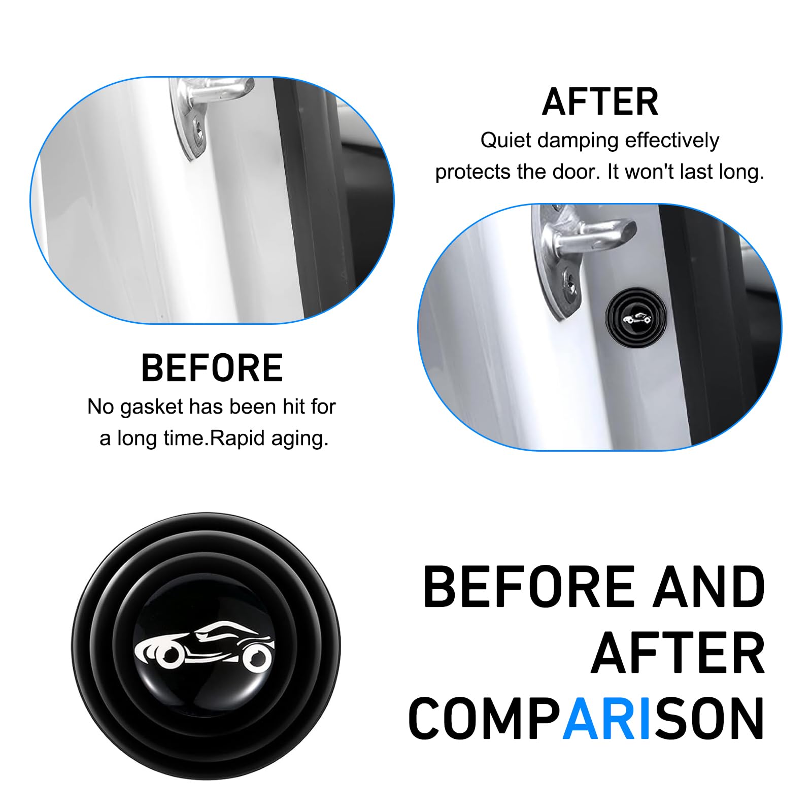 Soundproof & Shock-Absorbing: These door shock absorbers cushion door-slamming impact to reduce noise, eliminating loud slams for a quieter interior. They also absorb shock to prevent dents, paint chips, or scratches from door collisions, keeping doors looking new and boosting comfort.