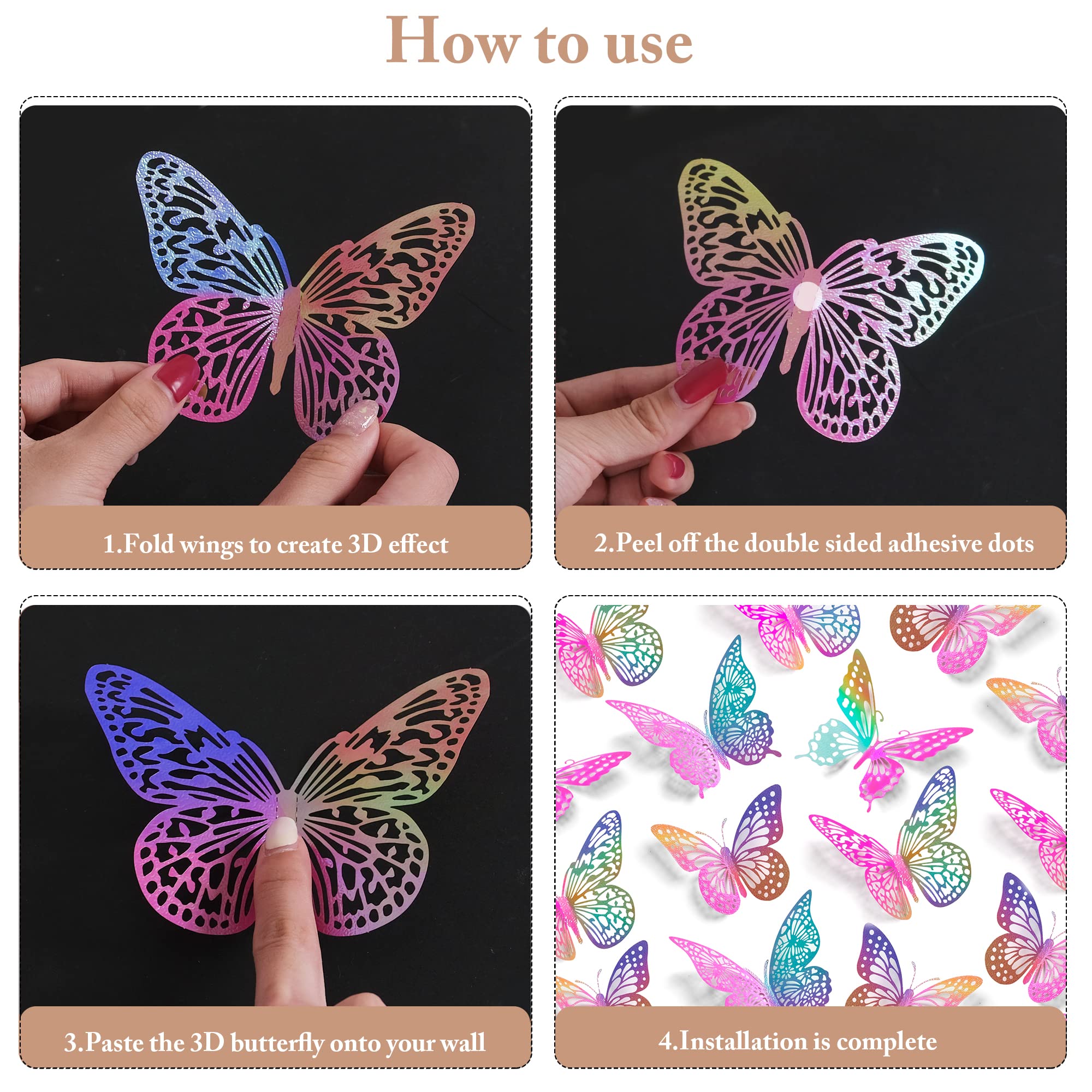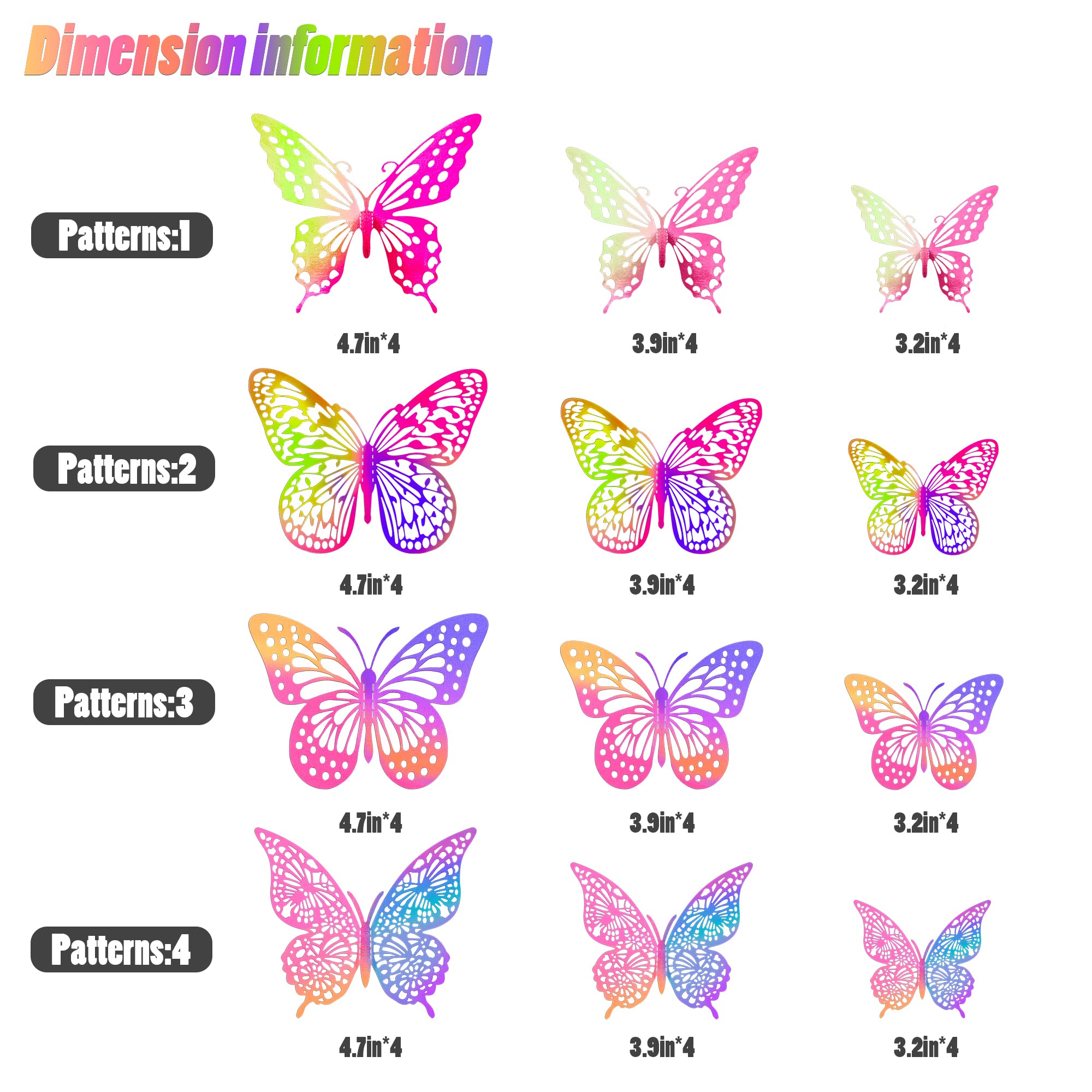 【Package Included】48 pcs butterfly wall stickers: 12 pcs Style 1, 12 pcs Style 2, 12 pcs Style 3, 12 pcs Style 4, each style has 3 sizes(3", 4", 5"). Coming with 48 pcs double sided adhesive dots.