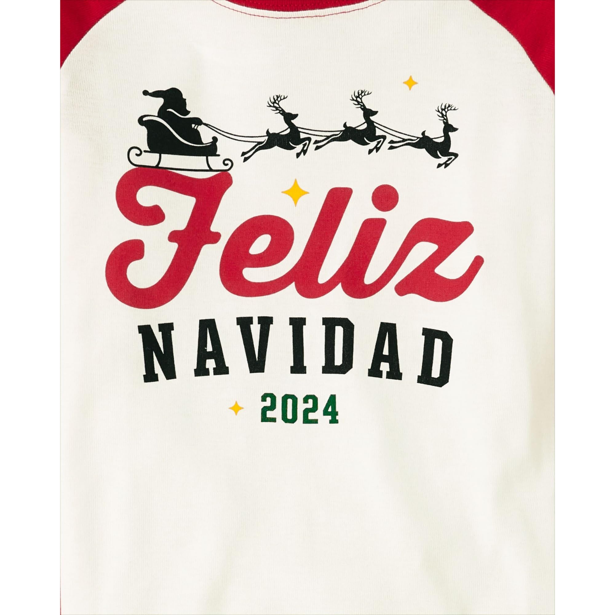 PAJAMA TOP: Crew neck, raglan long sleeves, 'Feliz Navidad 2024' graphic, banded cuffs