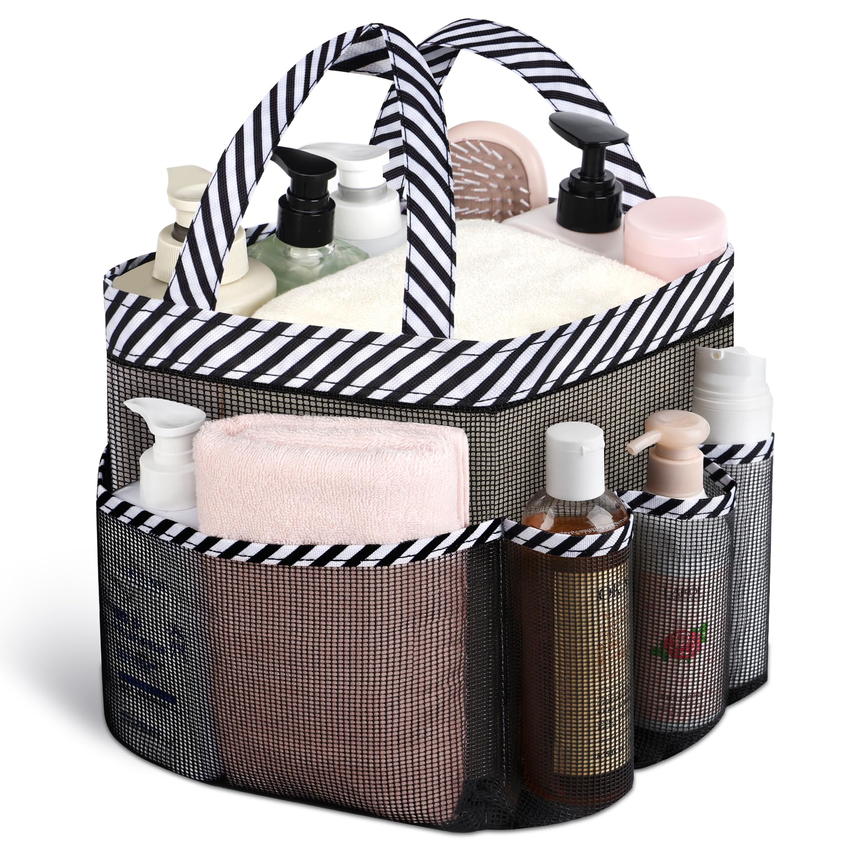High Quality : The shower caddy portable is made of tough and sturdy mesh, the shower basket can holds many toiletries and doesn't tear, and the mesh at the bottom allows for quick water filtration and may keep the pocket upright