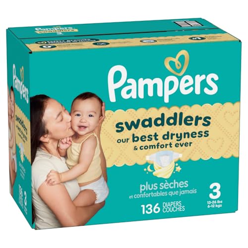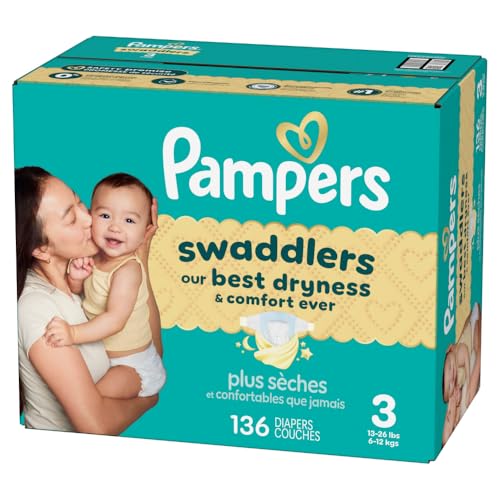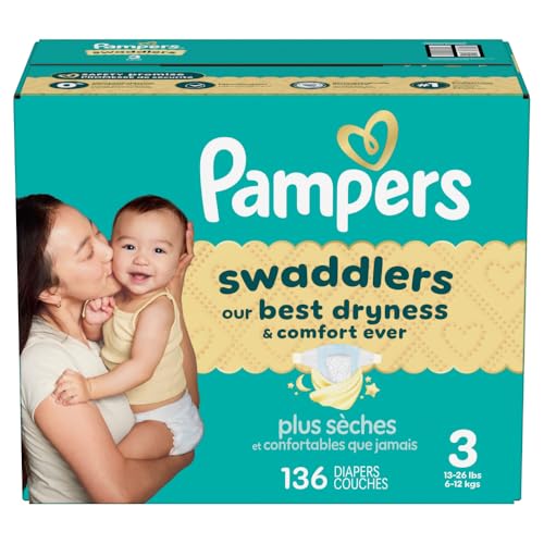 Wrap your baby in our best dryness and comfort ever. Try Pampers Swaddlers. These Pampers disposable diapers are designed with a KeepDry Liner and irresistible pillowy softness to keep your baby dry and comfortable from their very first days and beyond. Plus, they’re drier than the Luxury Diaper for all-night comfort. Pampers Swaddlers are dermatologist tested, hypoallergenic, and free of elemental chlorine, parabens, and latex** to protect babies’ sensitive skin. Pampers Swaddlers surround your baby with up to 100% blowout and leak protection, thanks to their absorbent core and All-Around LeakGuard with Blowout Barrier. Trusted by pediatricians and parents alike, Pampers Swaddlers are from the Most Awarded Diaper Brand^, the #1 pediatrician recommended brand^^, Best of Babylist winner, and the #1 choice of parents^^^. Pampers has been providing products that prioritize comfort, safety, and effectiveness for over 60 years. Earn savings while you shop with Pampers Rewards. Every 10 scans = $10 off. Scan. Earn. Repeat. Use them with Pampers Sensitive Baby Wipes for healthy skin. Pampers Swaddlers are available in preemie diapers, newborn diapers, and size 1 through size 8. To find your baby’s ideal fit, just measure by weight and reference our available baby diaper sizes. Pampers preemie diapers (up to 4 lbs.), newborn diapers (up to 10 lbs.), size 1 diapers (8–14 lbs.), size 2 diapers (10–22 lbs.), size 3 diapers (13-26 lbs.), size 4 diapers (15–34 lbs.), size 5 diapers (20-37 lbs.), size 6 diapers (23-34 lbs.), size 7 diapers (26-50 lbs.), size 8 diapers (30+ lbs.). *Based on S4 Luxury Diaper Brand. 3 typical wettings of 75mL **No natural rubber. ^ Based on Awards Given 2021-2025 ^^ Based on 2024 survey of U.S. and Canadian pediatricians. ^^^ Based on Nielsen dollar sales L52W