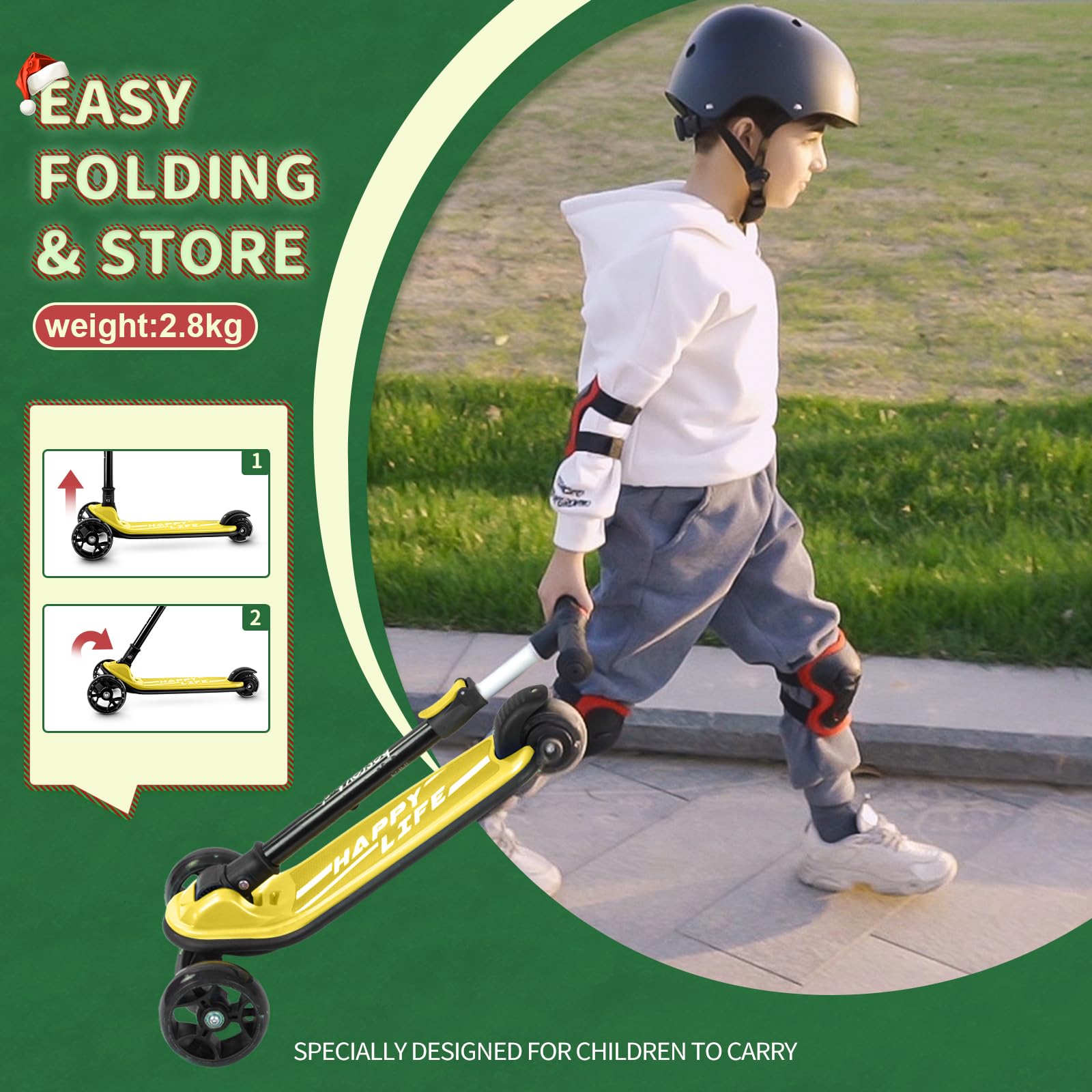 Super Cool Flashin LED PU Wheels - The toddler scooter features two big fronts LED wheels and small rear LED wheels, which are motion activated with no batteries required. Lights get brighter the faster your kids go. The bright and eye-catching design keeps children safe and fun in the dark. Highly sensitive rear brake, stop when stepped on.