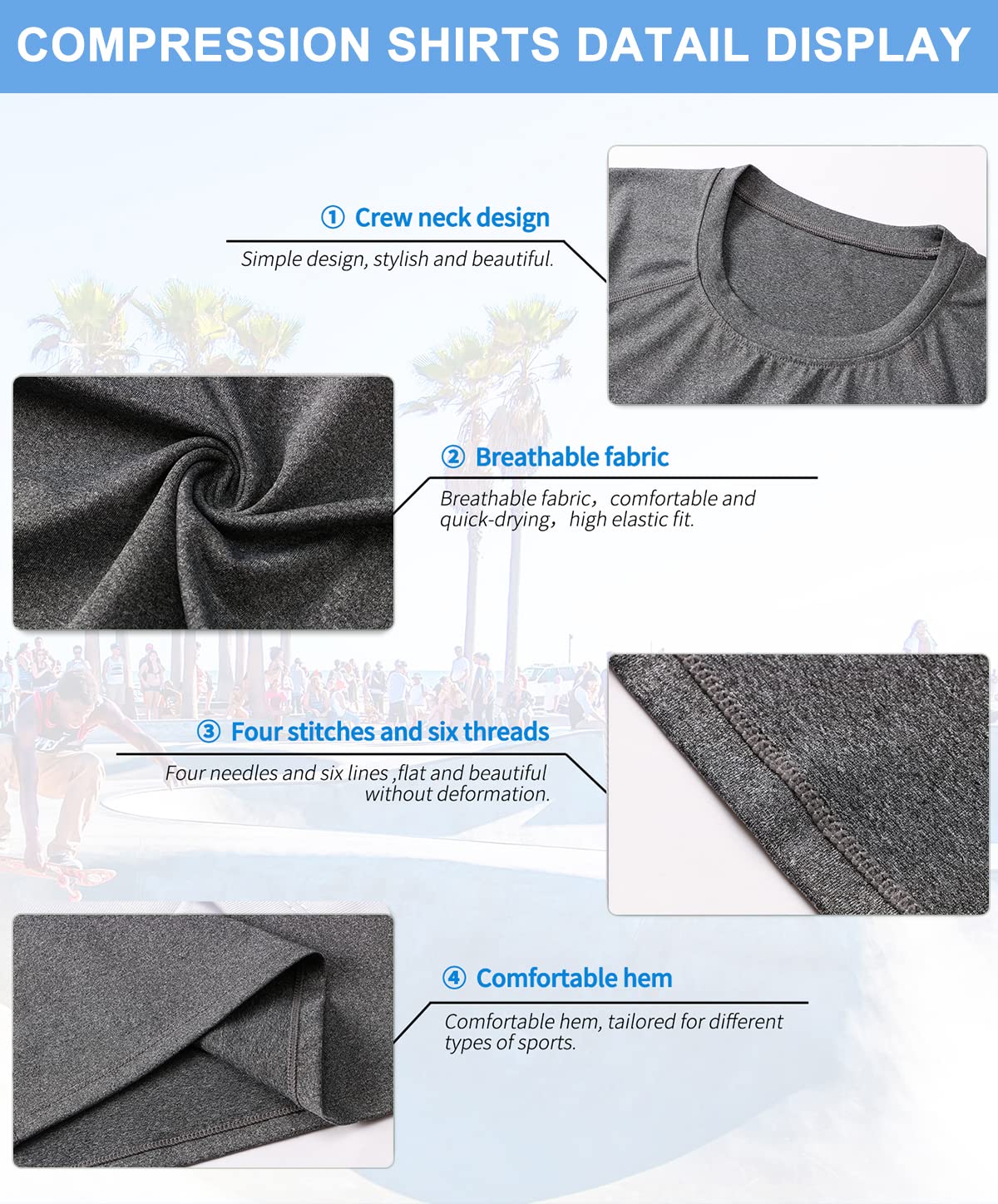 ??ERGONOMIC COMPRESSION FIT?: Ergonomic seam design follows the natural lines of the body. Cool in Summer and heat retention in winter. Crew-neck mens athletic compression tops increase more flexible and keep.