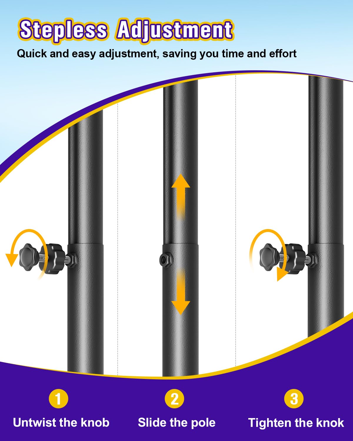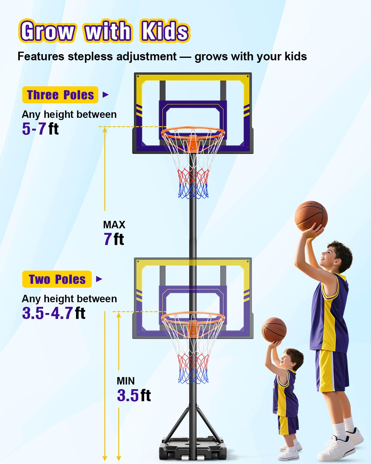 Stepless Adjustable Height 3.5-7ft: Our basketball hoop outdoor features a stepless adjustment system, allowing you to set the height anywhere between 3.5 and 7ft. Compared to traditional screw-fixed height adjustments, this method saves time and effort. The stepless adjustment ensures growing kids can always find the perfect height for themselves