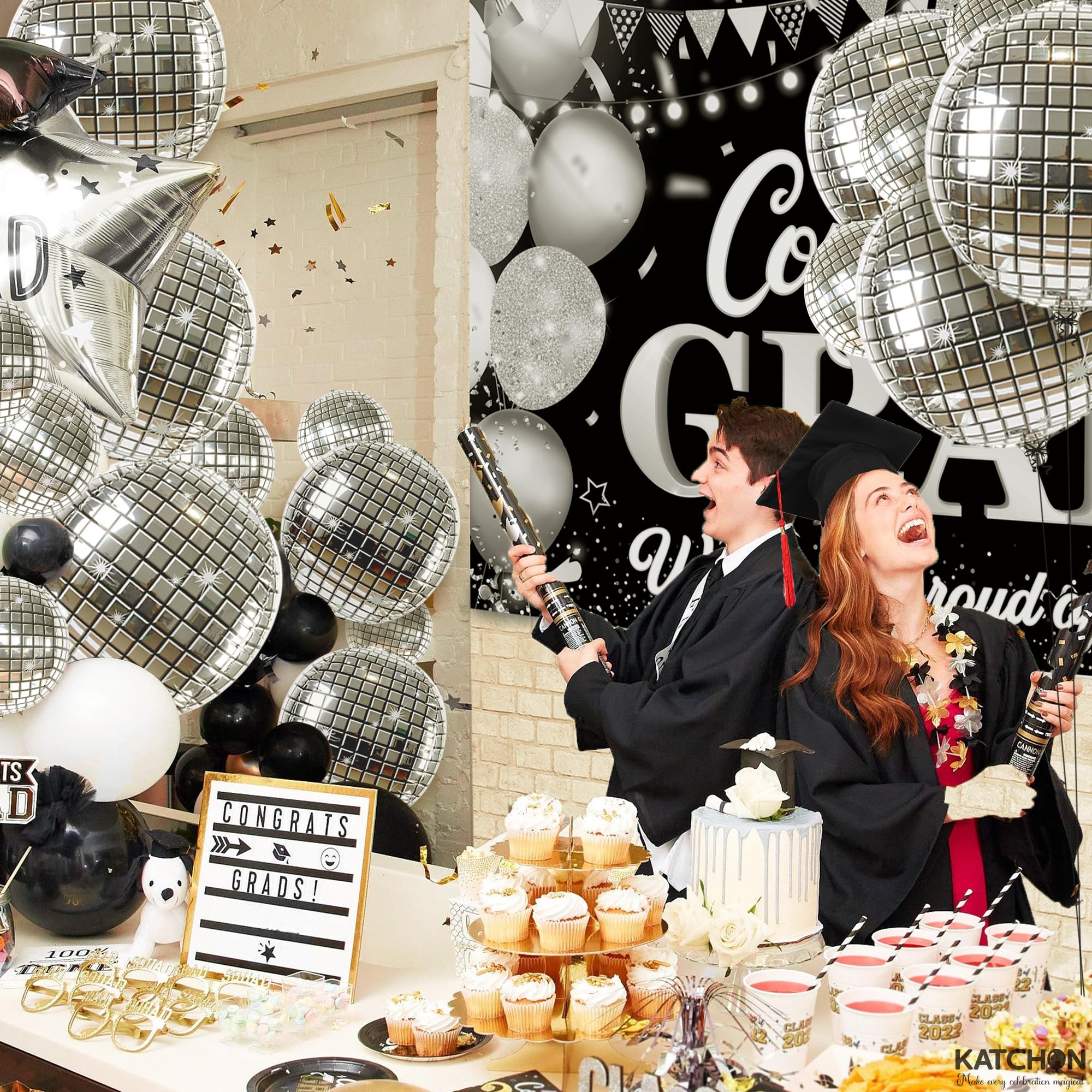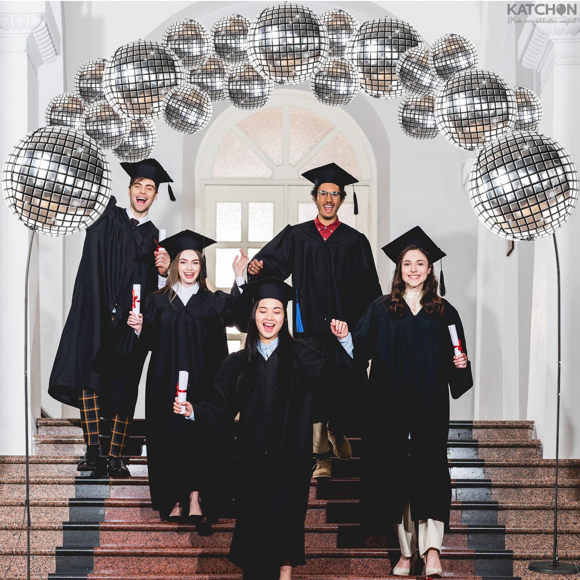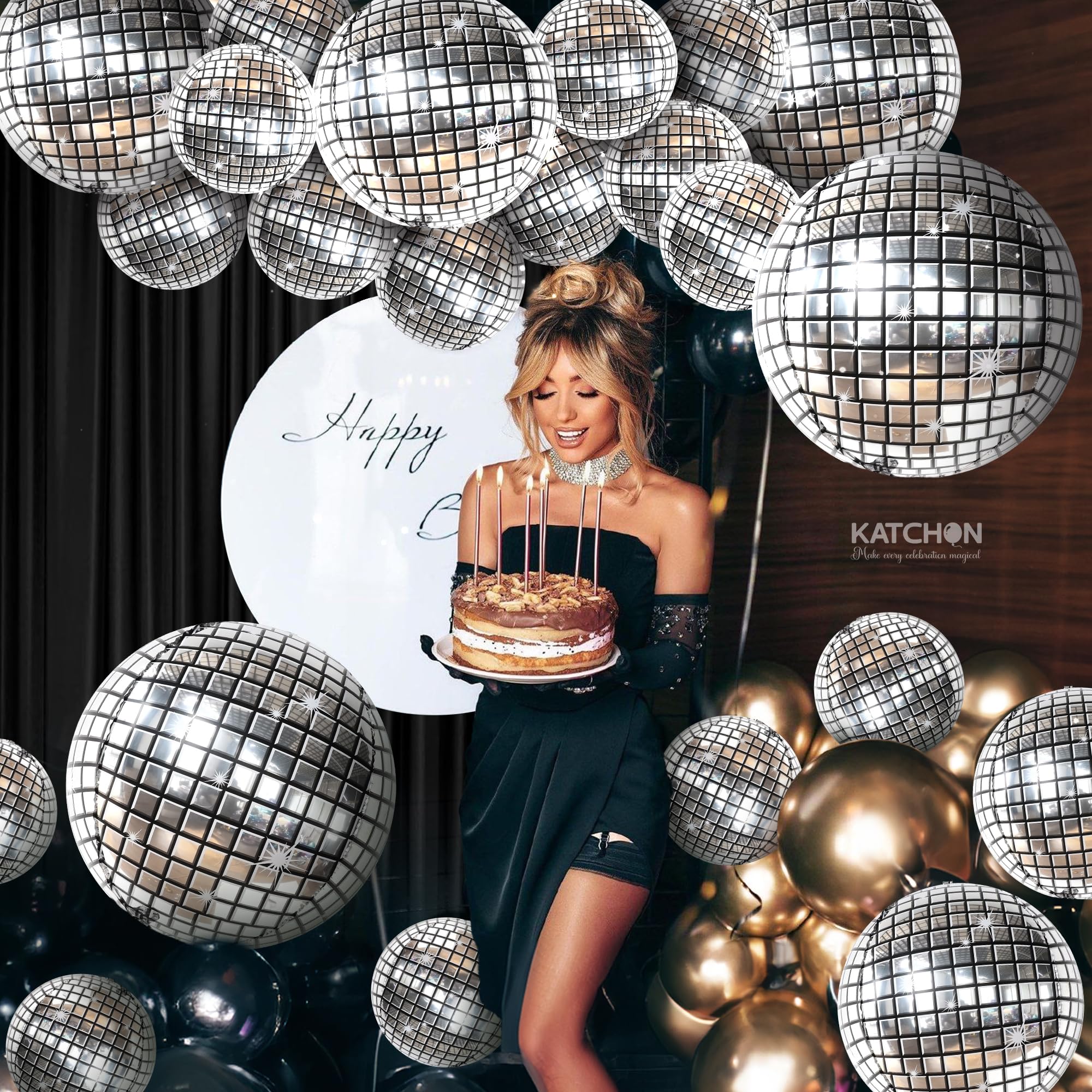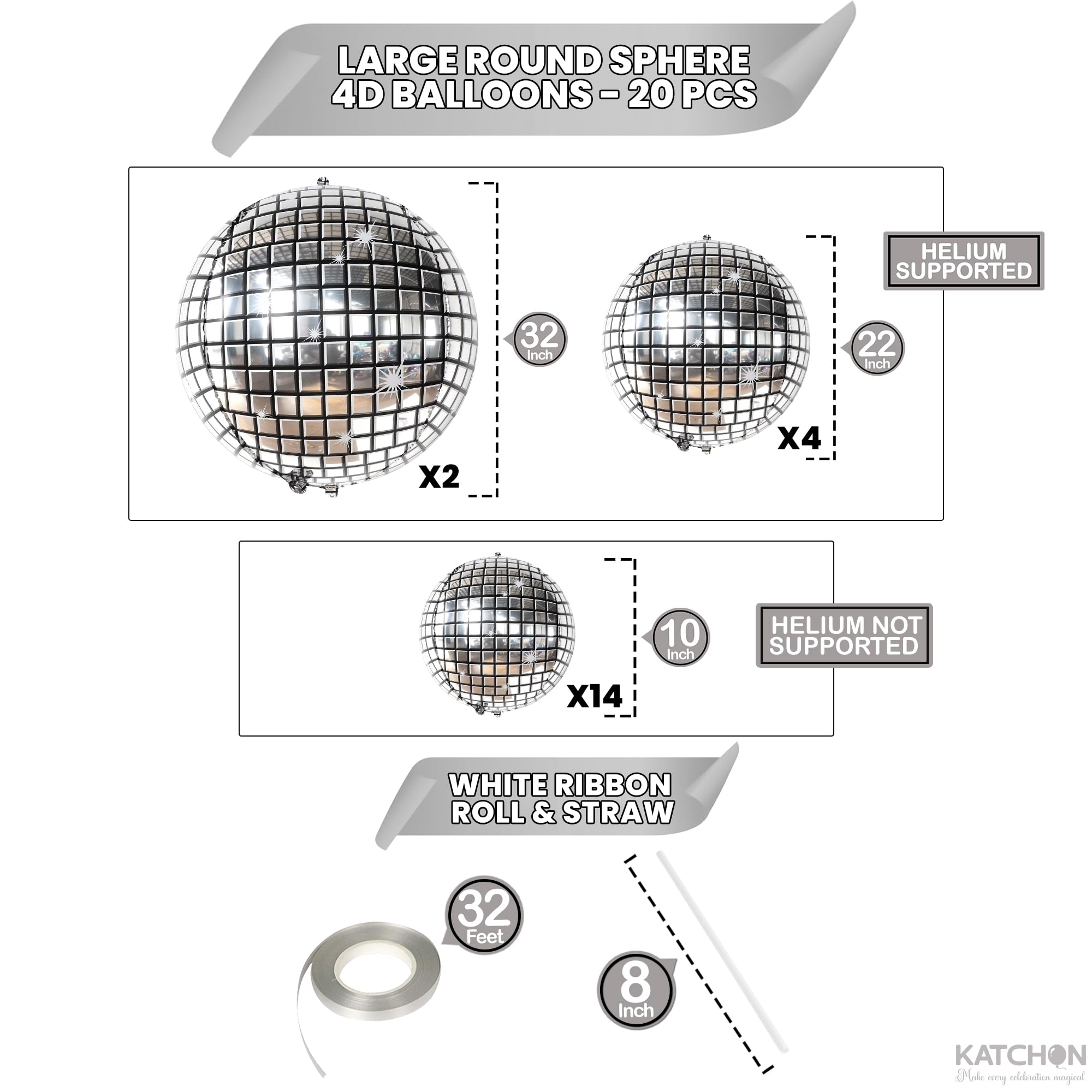 HUGE - 32 INCH DISCO BALLOONS | BRING SOME DISCO MAGIC : Shake a Leg with round metallic disco ball balloons arch kit, disco party balloons for 70s disco party decorations, 80s decorations for party disco decor. A unique disco balloons party favors. Katchon large silver disco ball balloons are not just shiny, they come in a pack of 20 with 3 different sizes and are sure to add some disco fever to your disco bachelorette party decorations. Use this disco balls balloons for disco ball decor, disco ball party decorations and bachelorette party accessories.