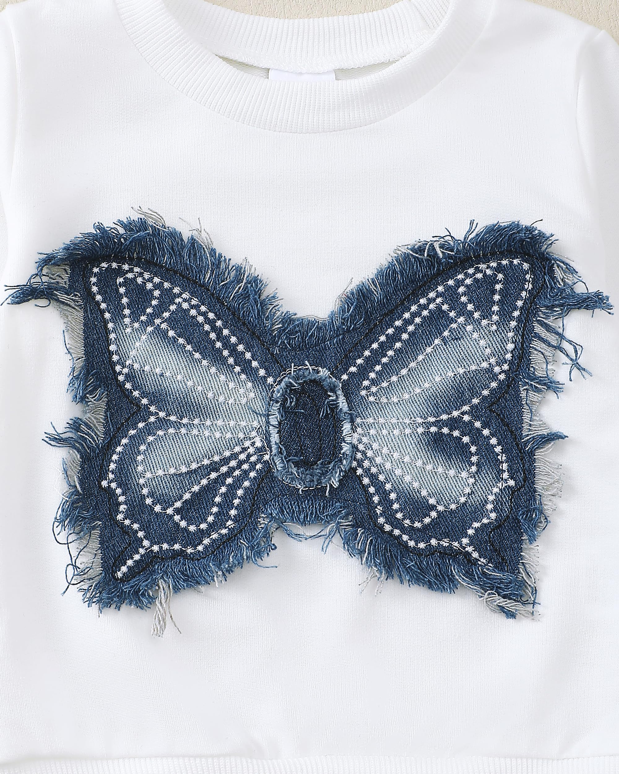 Soft Faux Denim Fabric: Our baby girl clothes are made of polyester. Unlike traditional denim, the faux denim material is softer and more flexible, giving you the look of jeans without the stiffness. These girls flare jeans also long-lasting enough to wear on its own, offering versatility and easy pairing with other outfits.