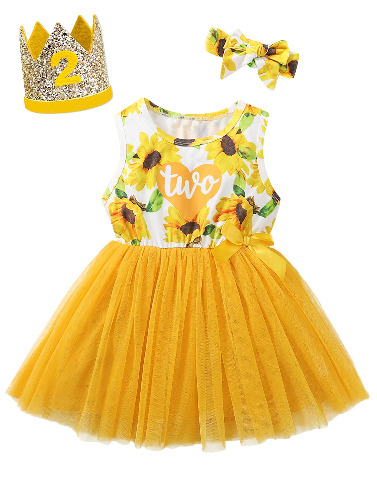 A beautiful two years old birthday dress with crown and wreath makes the baby sweet and cute