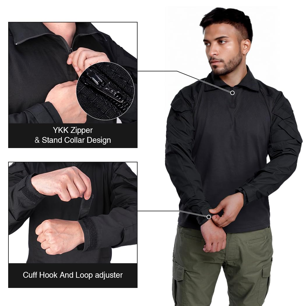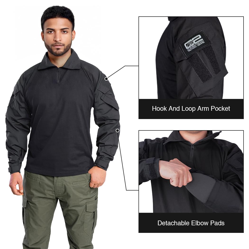 MATERIAL: Our combat shirts are made of high quality cotton and polyester fabric, The arm and collar part feature unique 50% cotton& 50% polyester fabric. Which can provide great comfort tear-resistance and protection. The body part is 100% cotton, skin-friendly and breathable, ensures comfort and durability.
