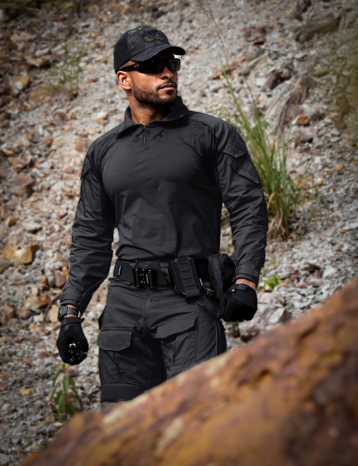 3D CUT-OUT DESIGN: Our tactical shirts are special designed to fit the body's curves and range of motion, ensuring a snug yet unrestricted fit with our 3D cut. The loose-fitting, drop-in shoulders and sleeves allow for a full range of motion, Providing excellent comfort and arm movement when wearing it. Ideal choice for outdoor hunting shooting, etc.