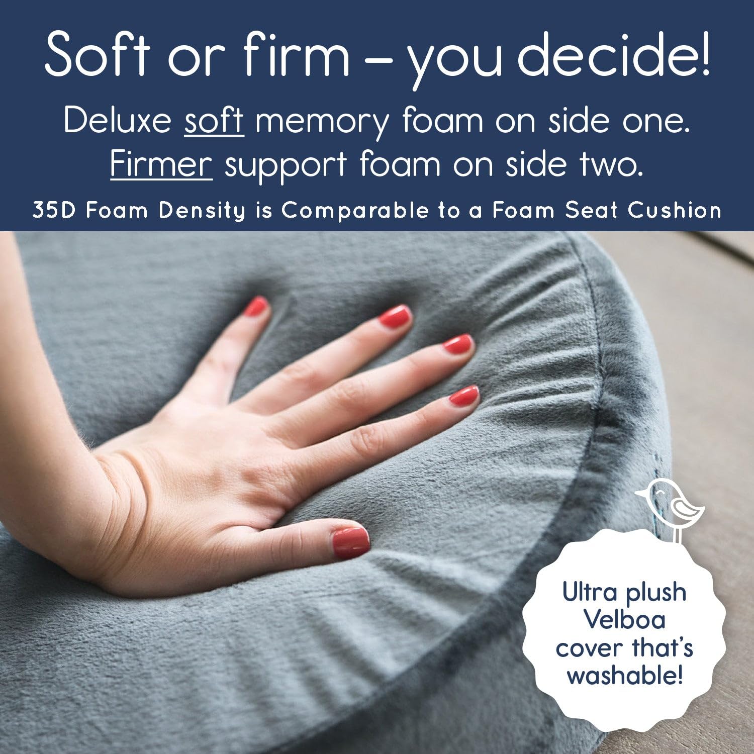 SOFT OR FIRM… YOU DECIDE: 2-sided design to suit moms during all 3 trimesters. Deluxe, soft memory foam on side 1, and firmer support foam on side 2. As your needs and desires shift from moment to moment, simply flip it over to regain maximum comfort. IDEAL SOLUTION FOR PREGNANCY DISCOMFORT. 35D density comparable to a foam seat cushion.