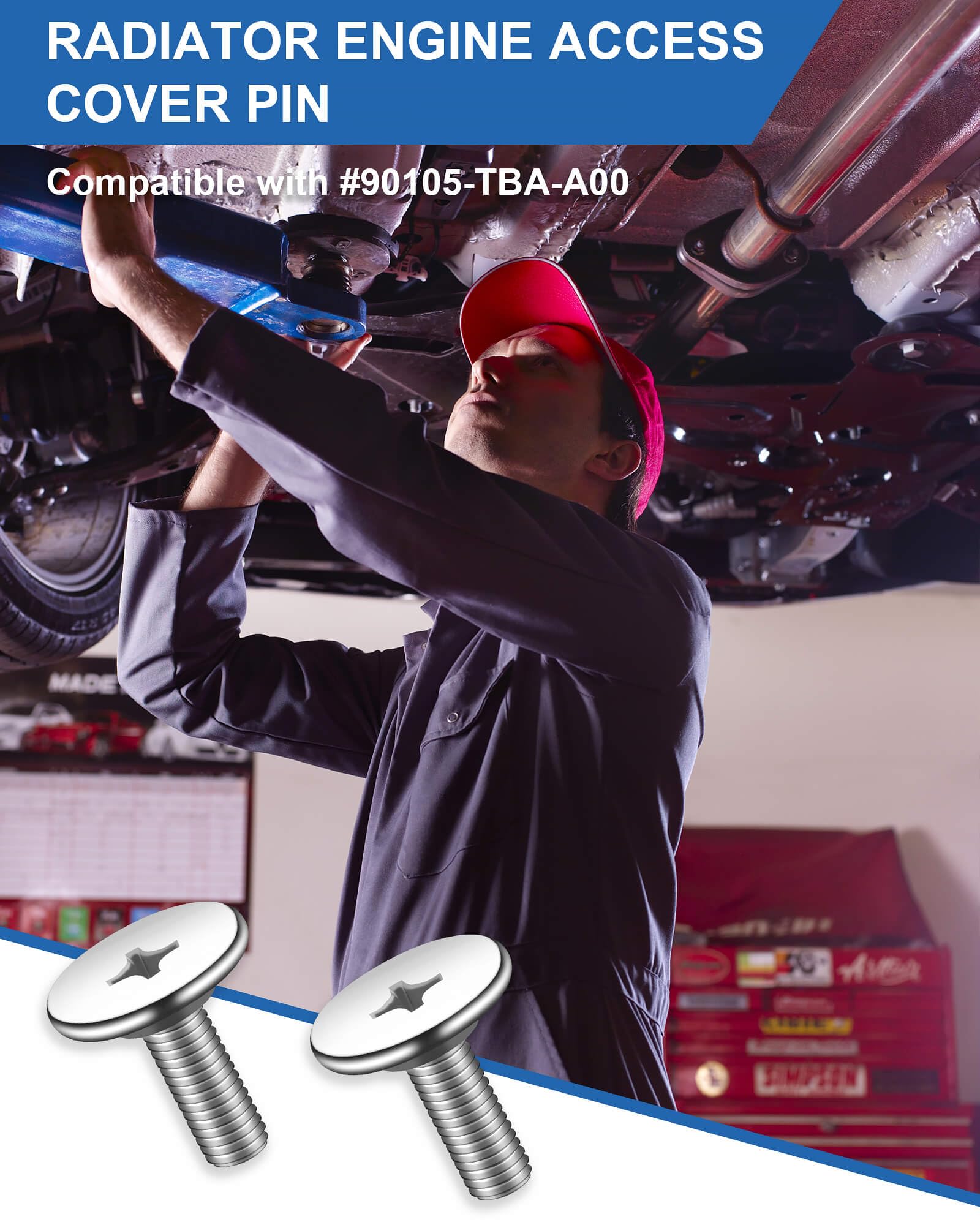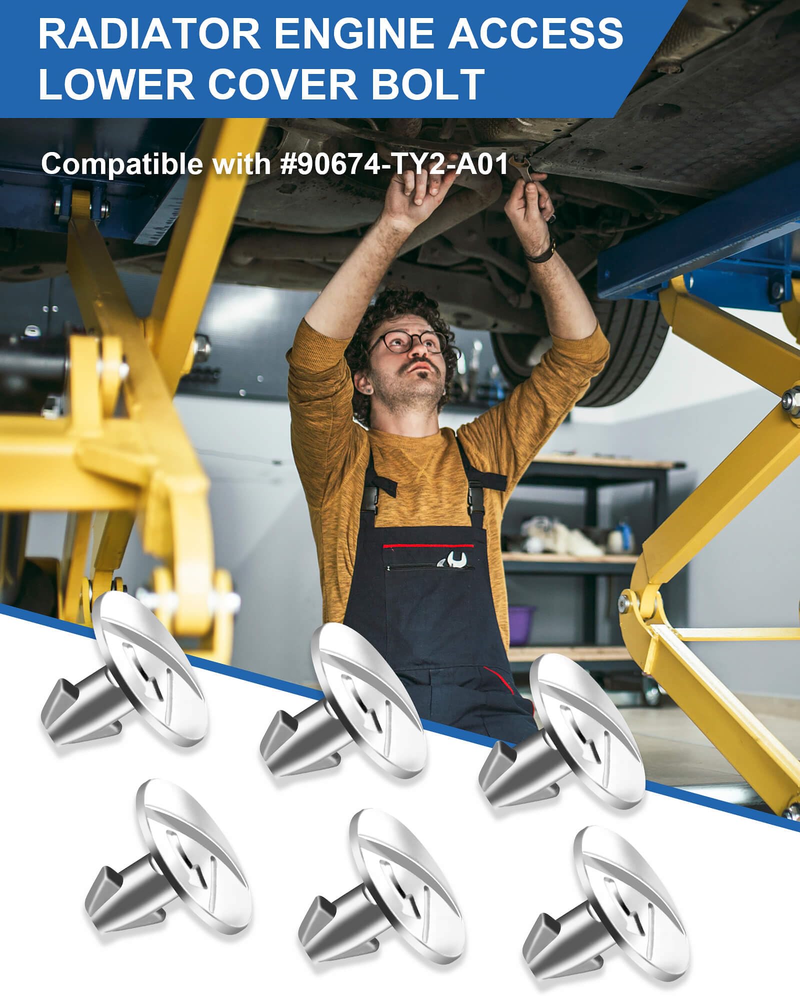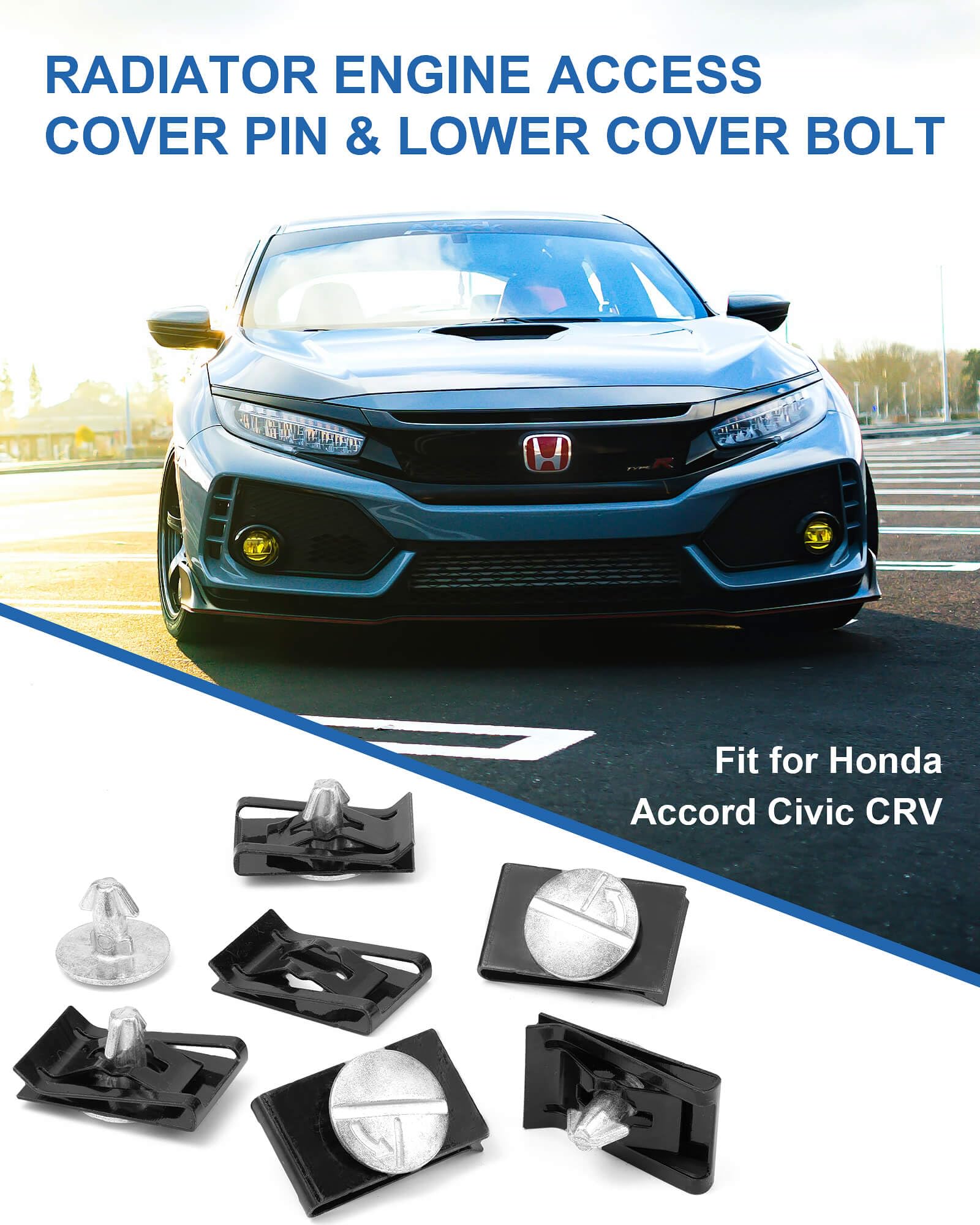 【Practical and Convenient Set】 This set includes 6 engine access cover pins, compatible with #90674-TY2-A01, 2 lower cover bolts, compatible with #90105-TBA-A00, and 6 radiator engine access cover pin clips. Everything you need for a hassle-free replacement.