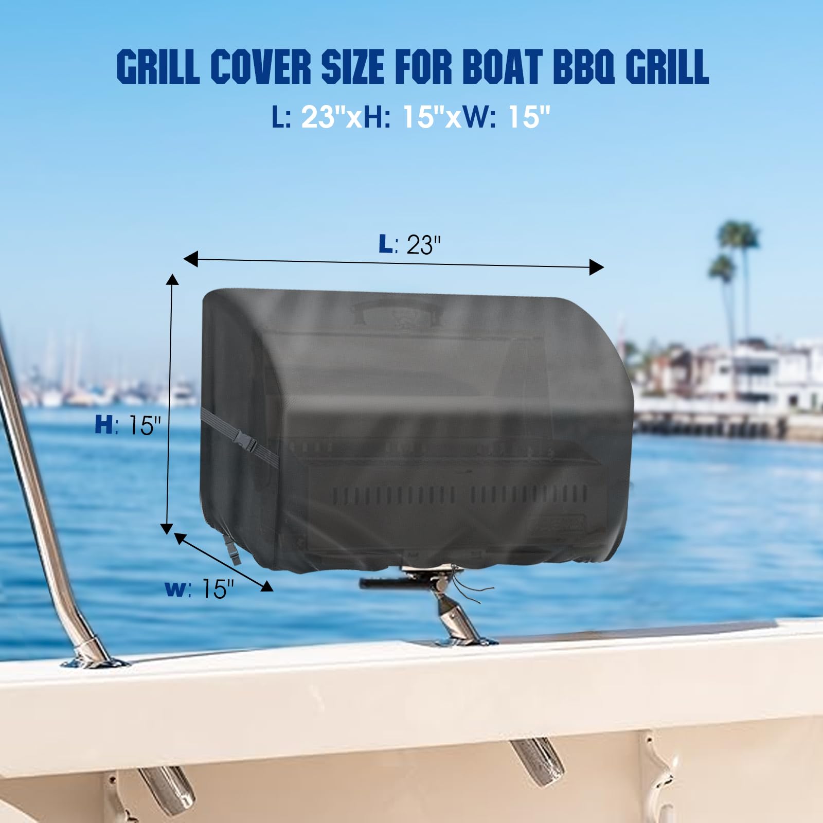 Dimension of Agustone Cover: 23"x15"x15", designed for Magma boat gas grill, such as Magma Cabo grill, Magama ChefsMate grill, Magma Kuuma boat grill. Also fits for other BBQ grill within similar sizes