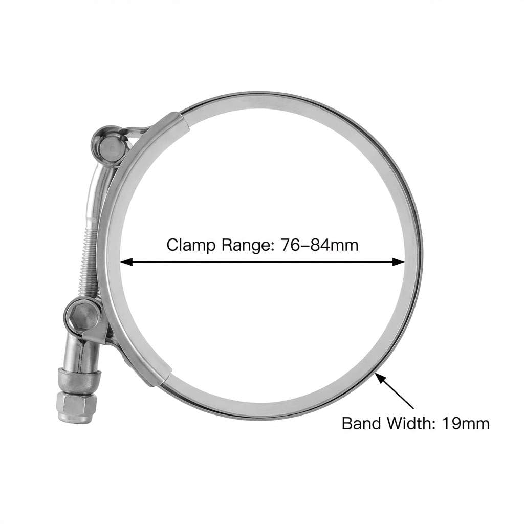 CLEAR SIZE RANGE – Adjusts from 76mm to 84mm, ideal for hoses with 2.75" inner diameter and 3–4mm wall thickness.