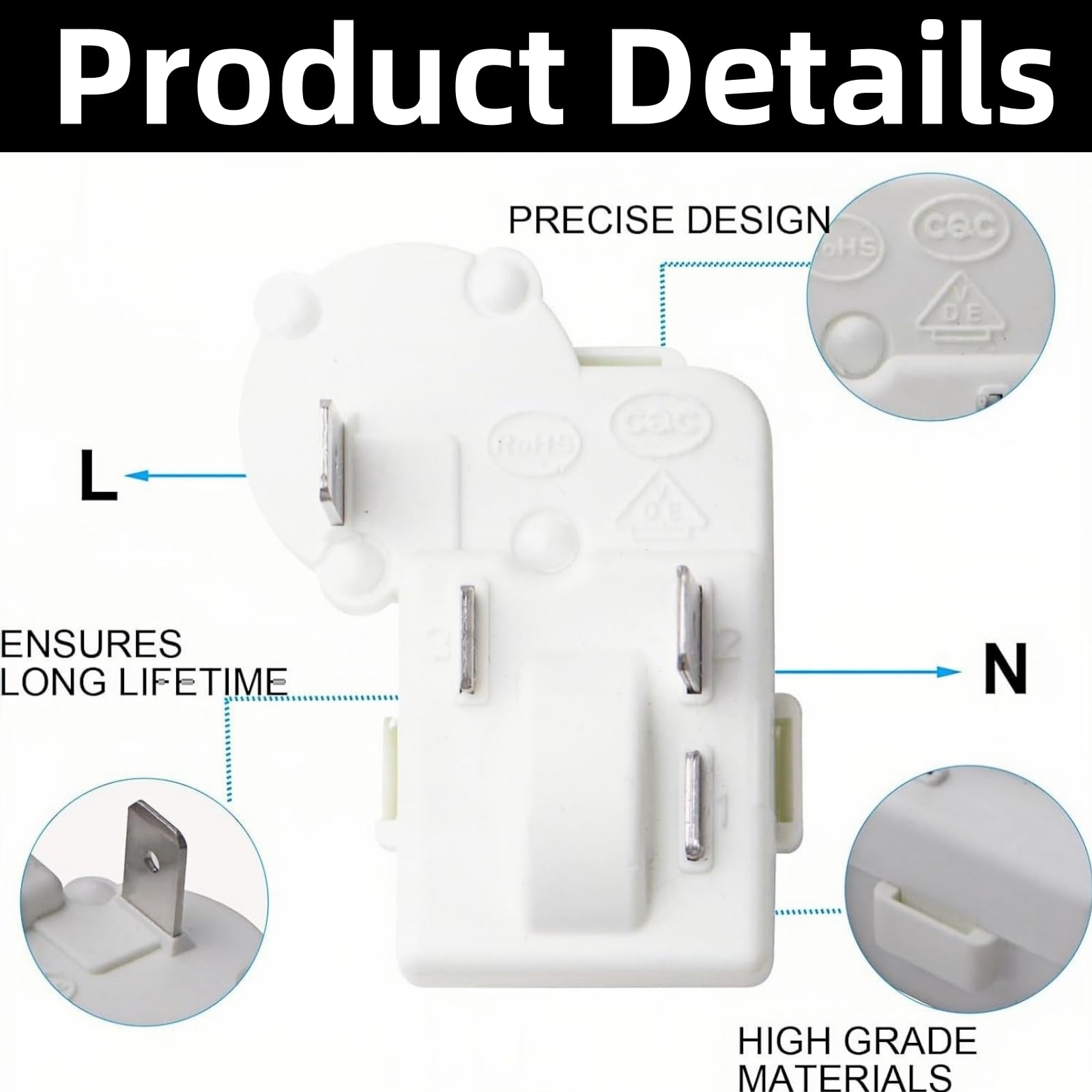 2Pin Replacement compressor PTC starter for refrigerators. Size about 1.77x1.26x1.07inch. Kindly Note: Brand new and not used, due to material problems, there will be a little scratches in the factory, please buy carefully if you mind. (If you need 4PIN, buy for "B0F9YP8JWK").