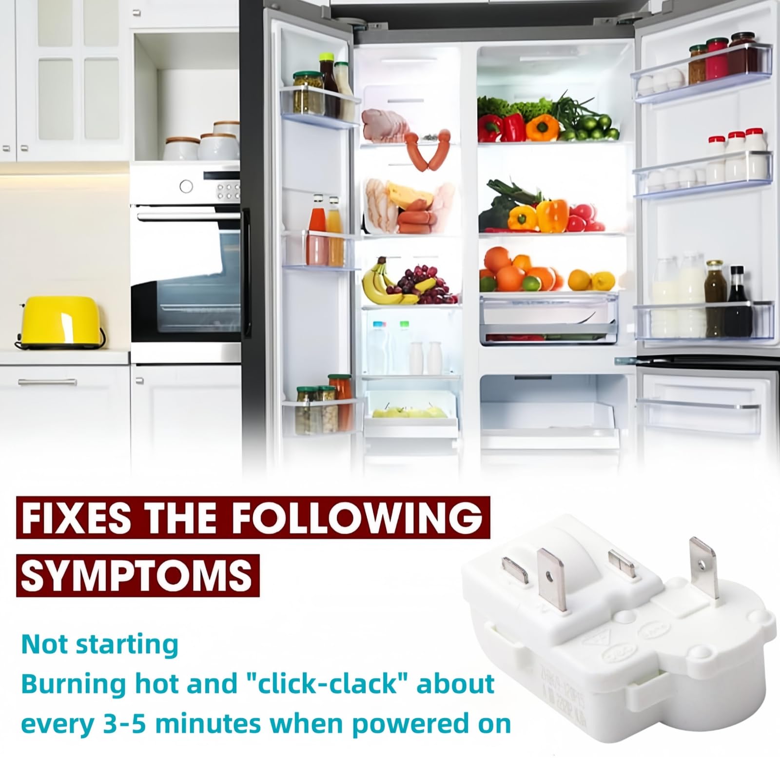 If your compressor is not starting, But burning hot and "click-clack" about every 3-5 minutes when powered on. It could be the start relay that is causing the issue. Our fridge start relay parts is your best choice.