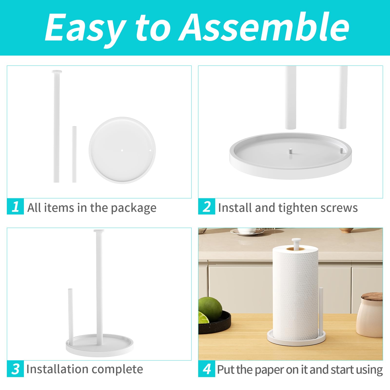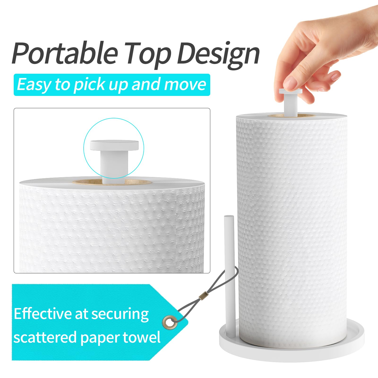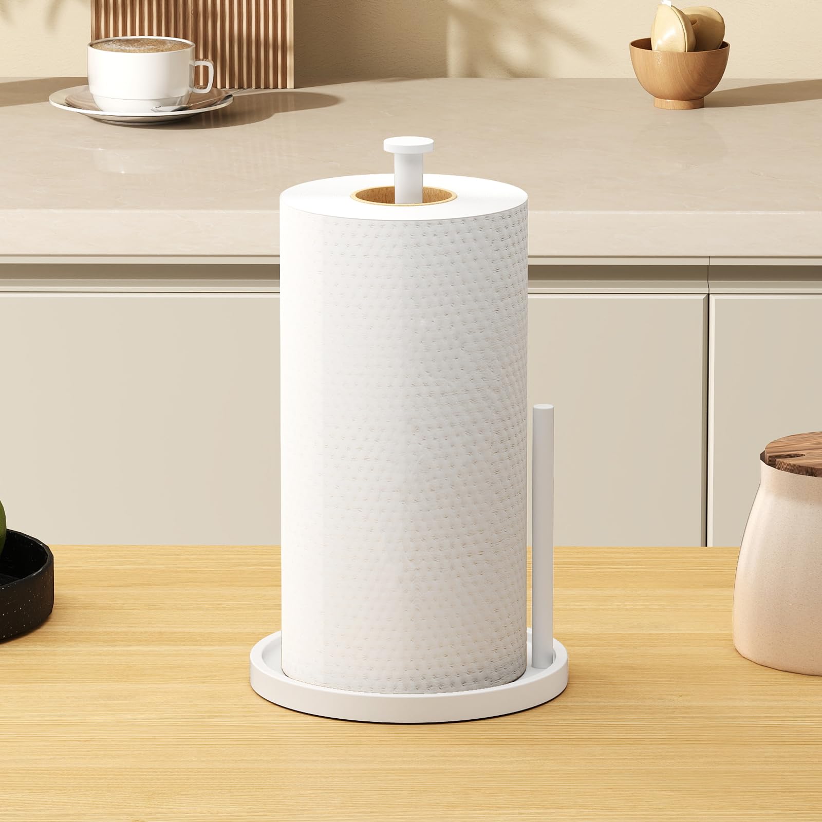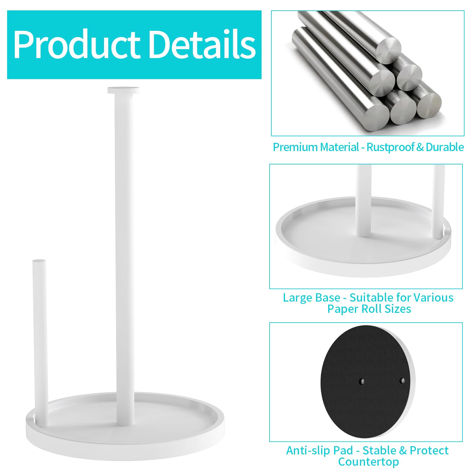 [Ideal Size] The white kitchen paper roll holder is 12.4" tall with a 7.1" base diameter. Its compact design saves space, making it perfect for small spaces or countertops. Ideal for kitchens, toilet, and areas with limited storage, it fits all standard and large paper towels