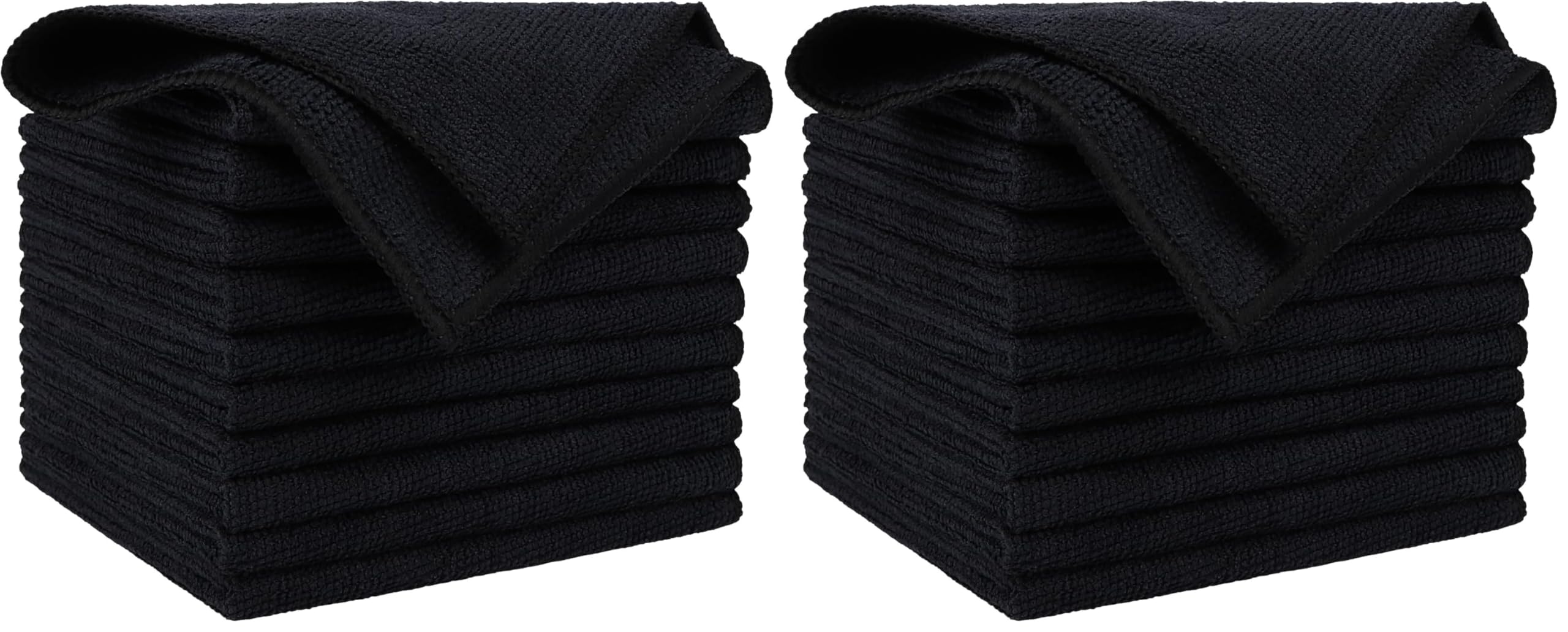 Size: 12x12 inches, 20 Pack Experience the exceptional cleaning ability and high absorption of these 12x12 inch microfiber cloths, which help you keep your house clean at all times. They can be easily reused after simple washing, saving you valuable time and money. With a variety of choices available, these cloths are ideal for virtually all auto, automotive, garage, household, kitchen, bathroom, commercial, and cleaning-related tasks. When washing these cloths, please use warm water and similar colors, and air dry or use the low setting for drying.