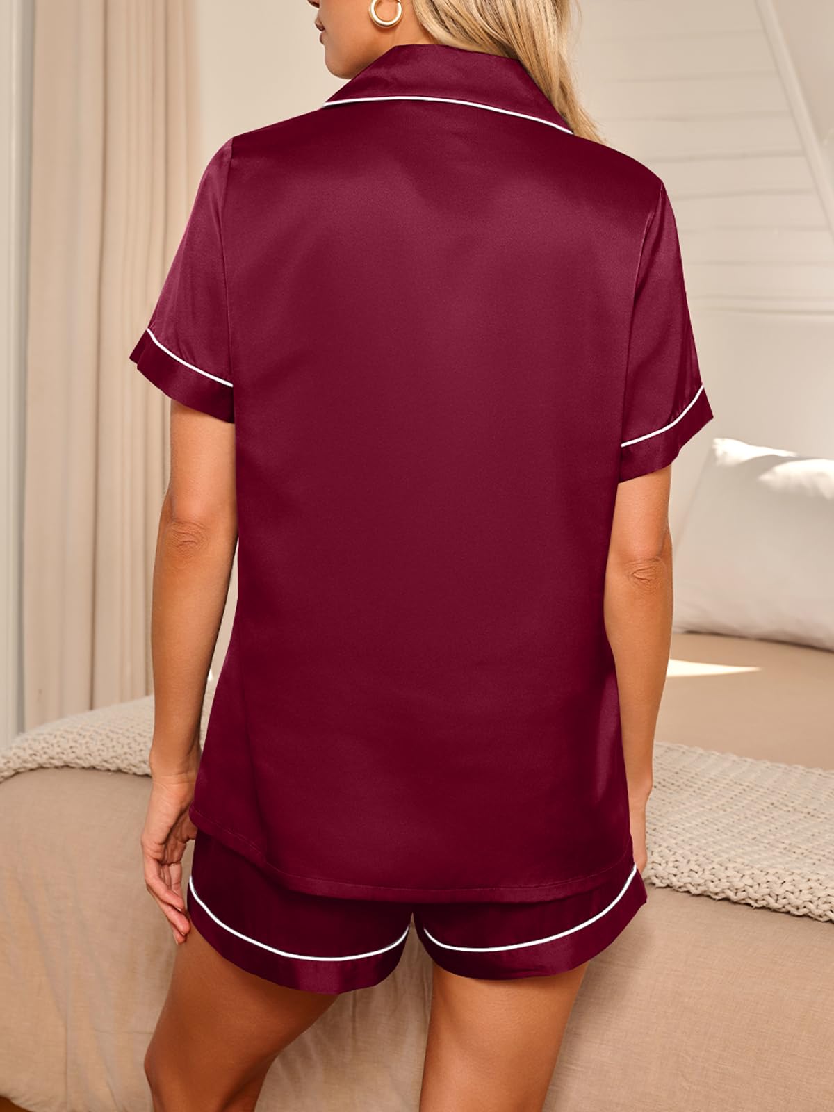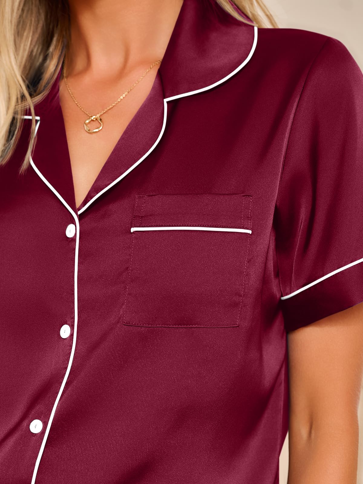 Pajama Top: Short sleeve sleepwear with notch collar,button front pajamas shirt and one chest pocket design.Lightweight and Skin-friendly silk pajamas for women.Great for sleeping,casual wear or lounging around the house or yard all day