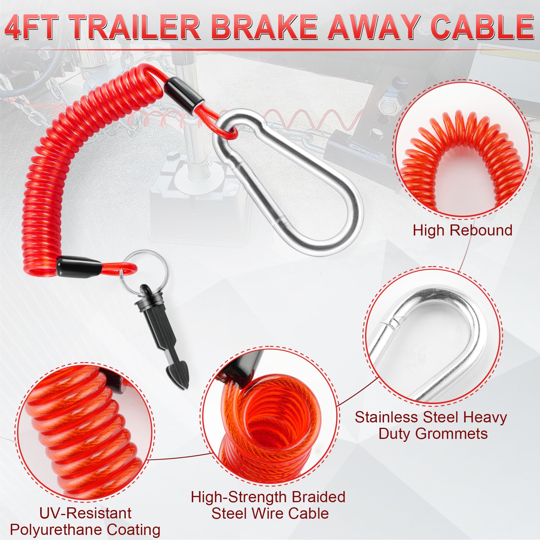 Easy Installation and Adaptation:With spring clip and split ring,just connect the pin and fix the buckle to complete the installation,compatible with almost all trailer breakaway devices,it is an ideal replacement for damaged or aging cable.