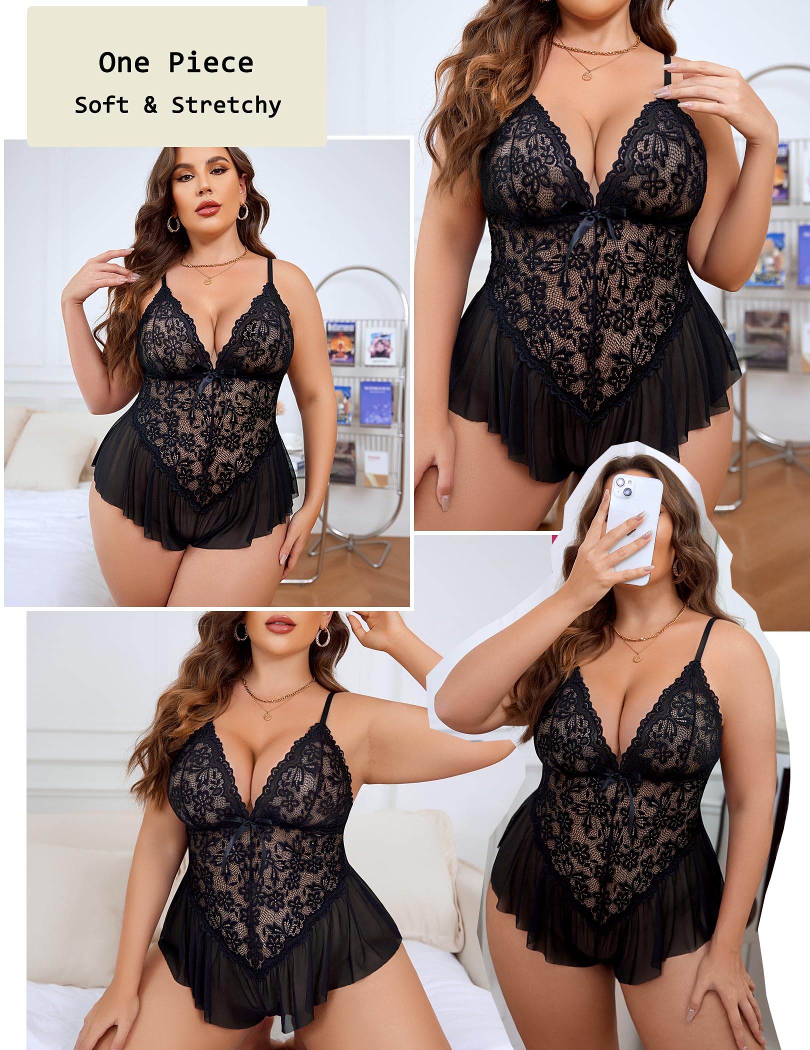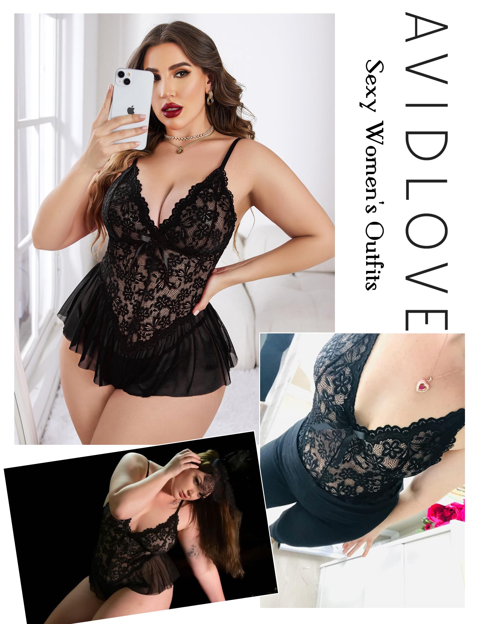Material: Avidlove plus size babydoll lingerie for women is made of Polyester and Spandex, the lace fabric is very soft, comfortable, breathable, great for close-fiting wear. Stretchy teddy is also perfect as maternity lingerie for boudoir shoots