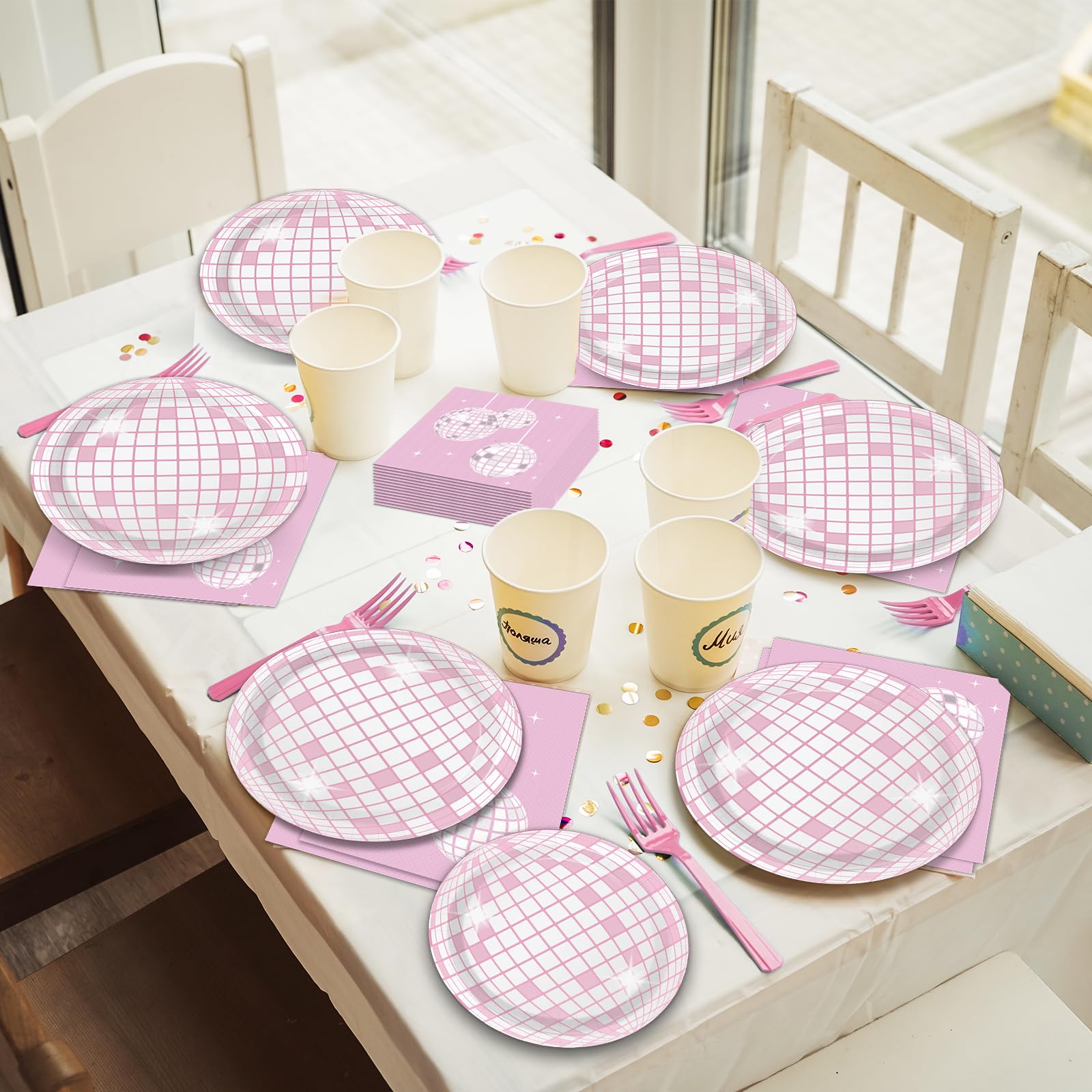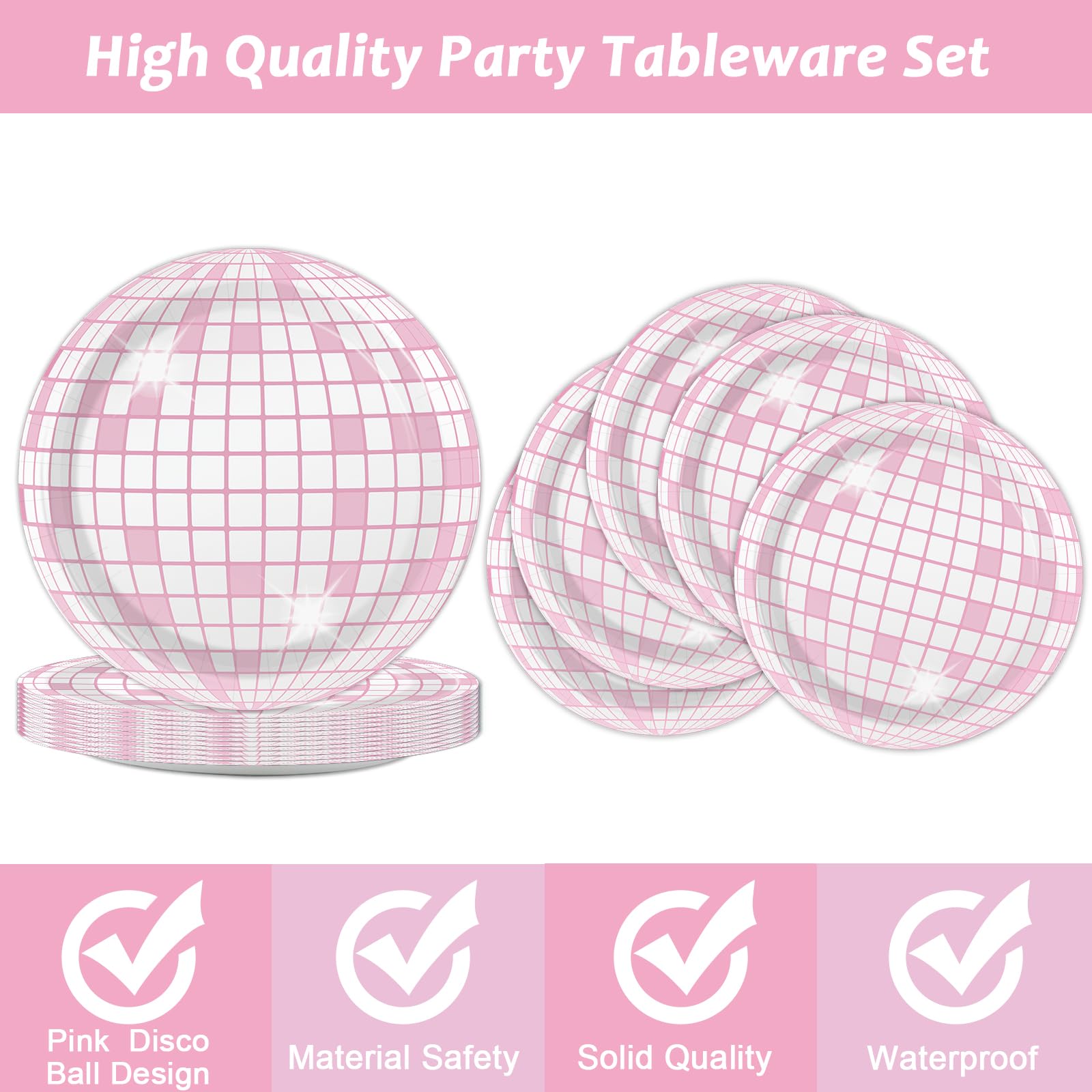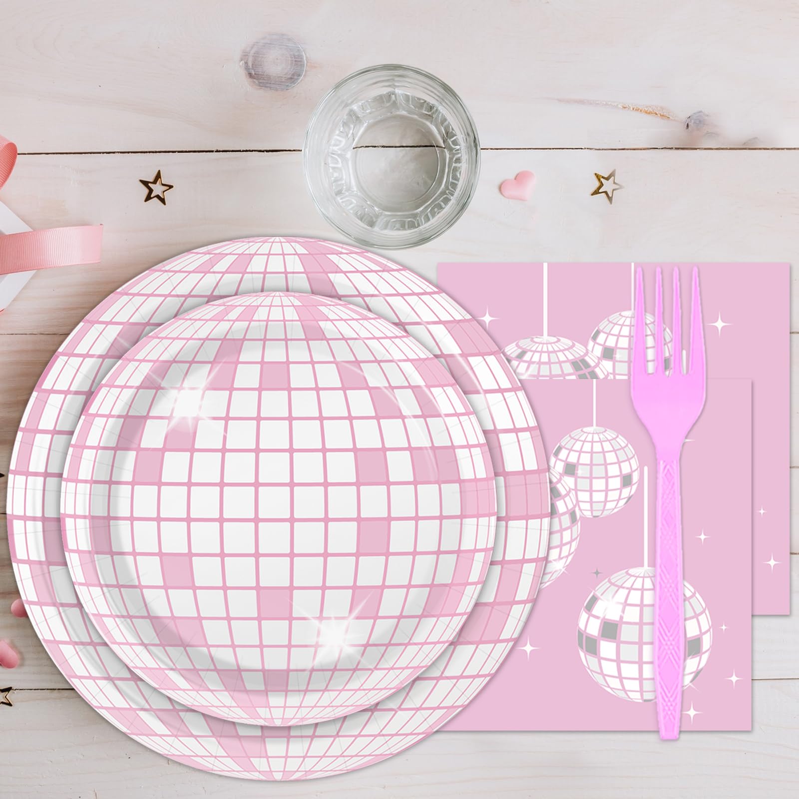 Exquisite Design:This 70s pink theme party tableware decorations are designed in pink disco ball background.Decorate the party with pink disco birthday tableware set of utensils to add to the theme atmosphere of the party.