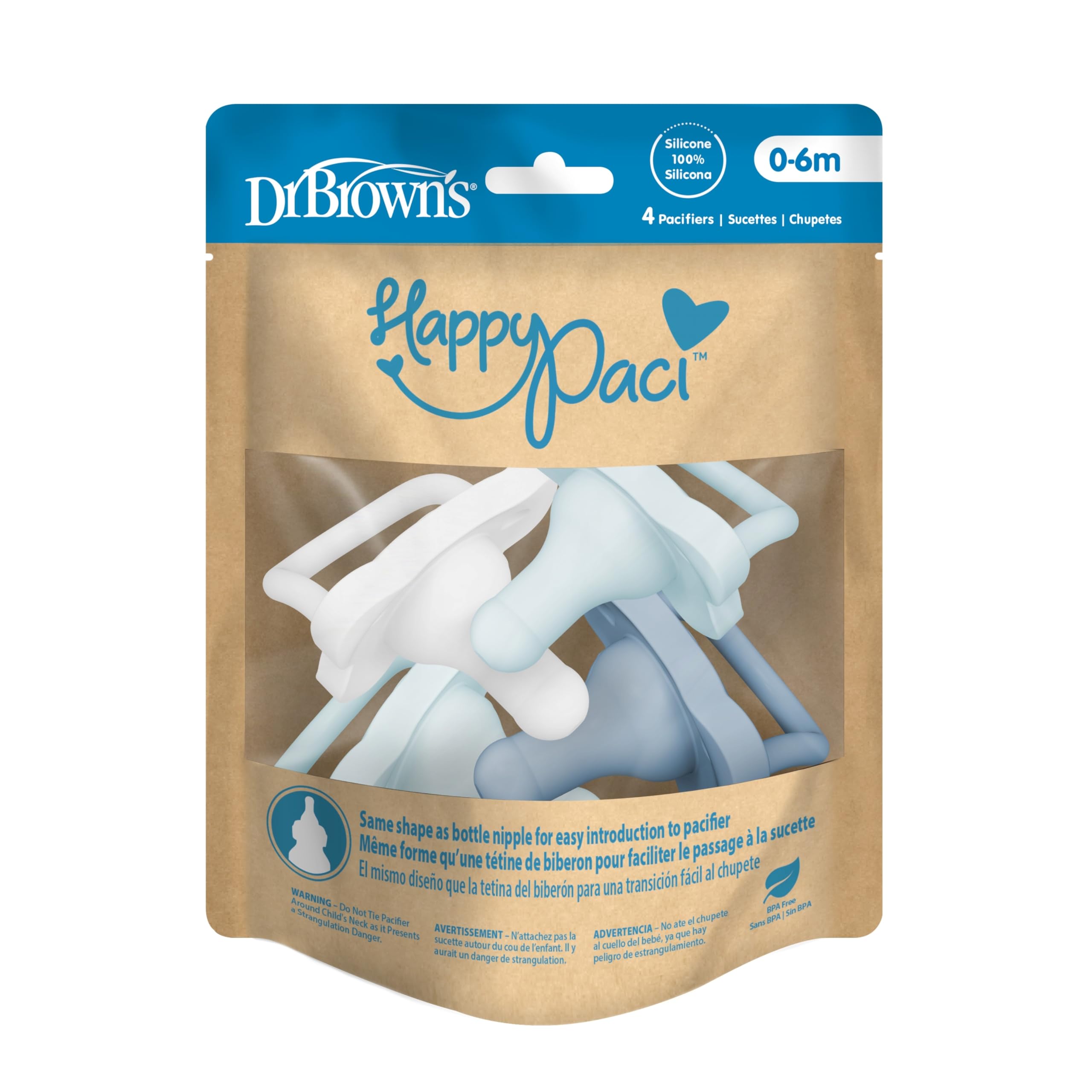 EASY TRANSITION TO PACIFIER. The unique 100% silicone HappyPaci bulb design features the same shape as Dr. Brown's bottle nipple that's familiar to baby.