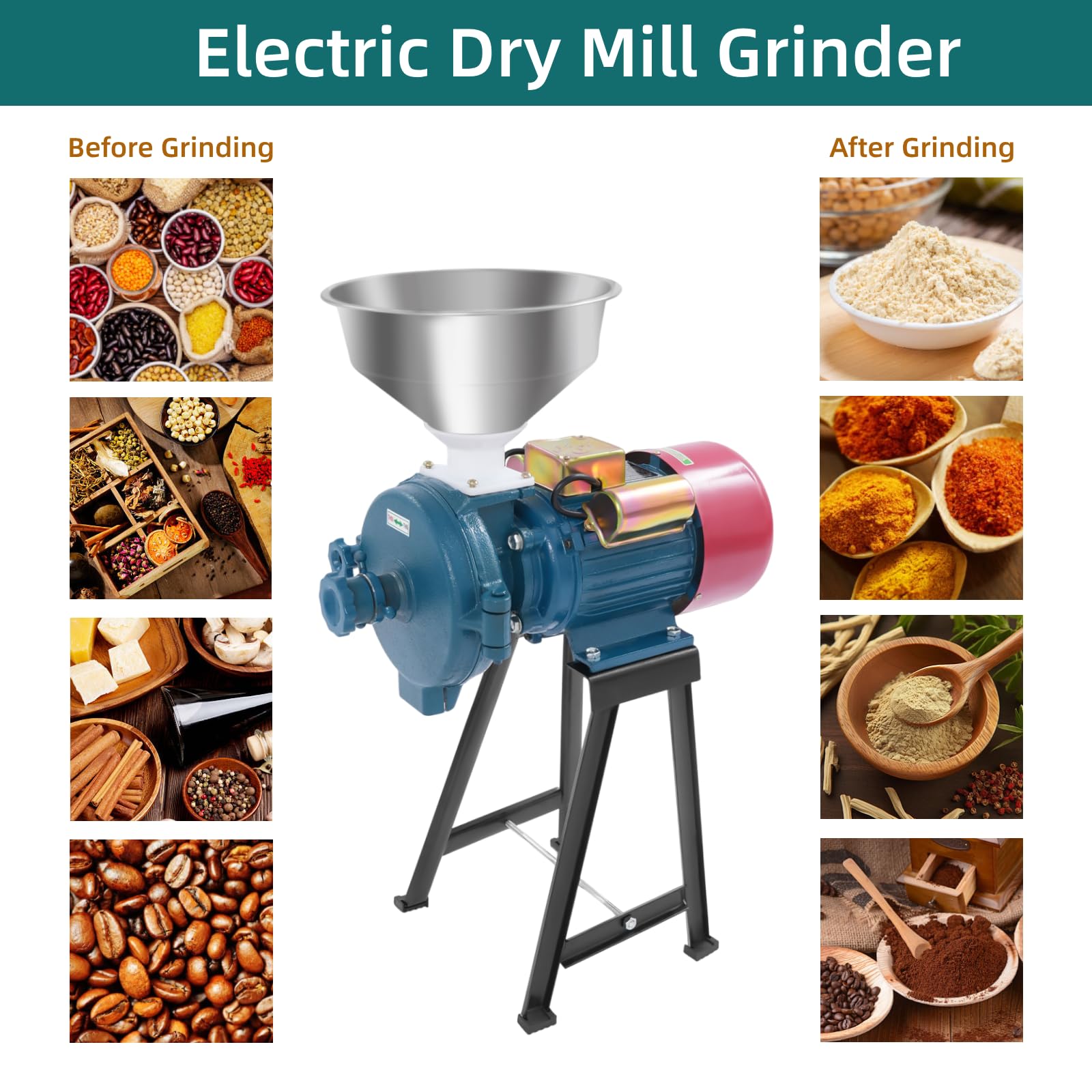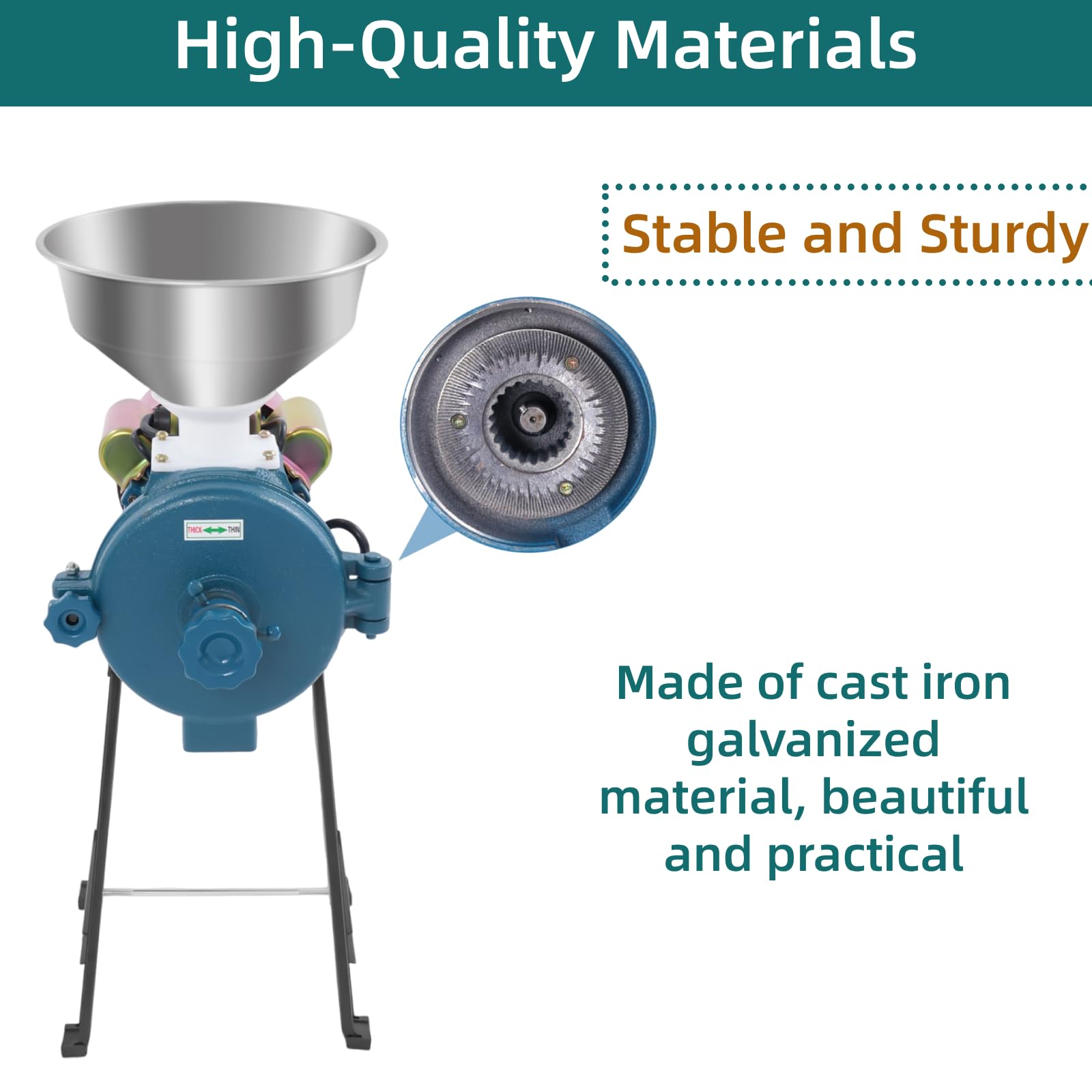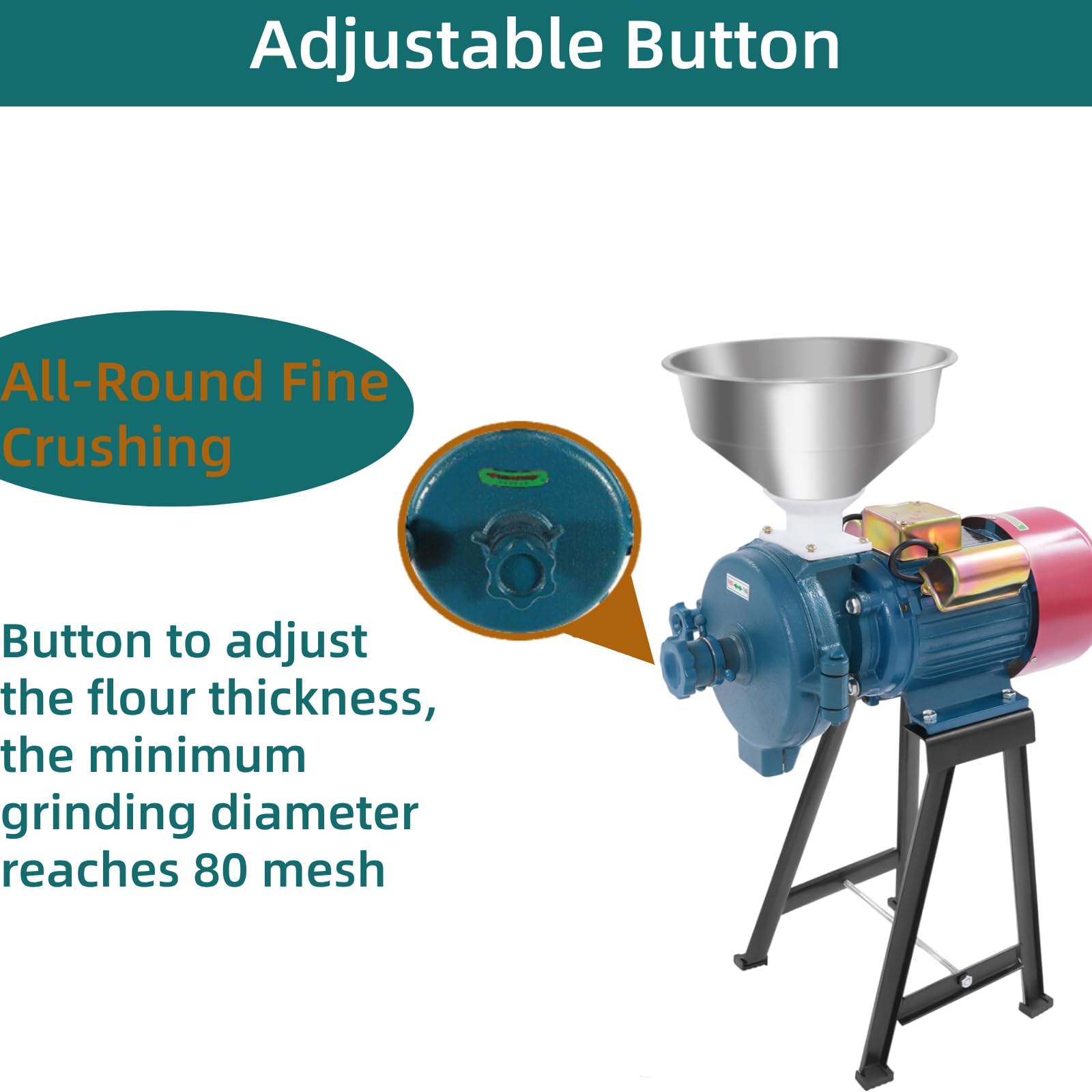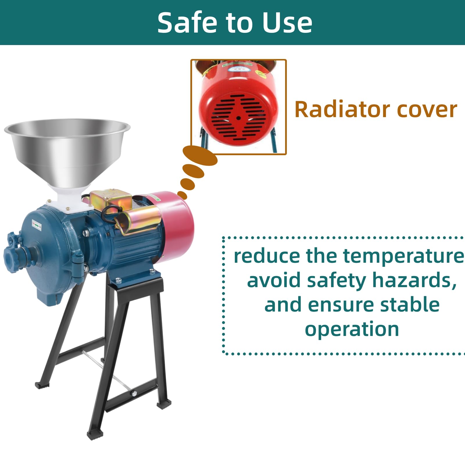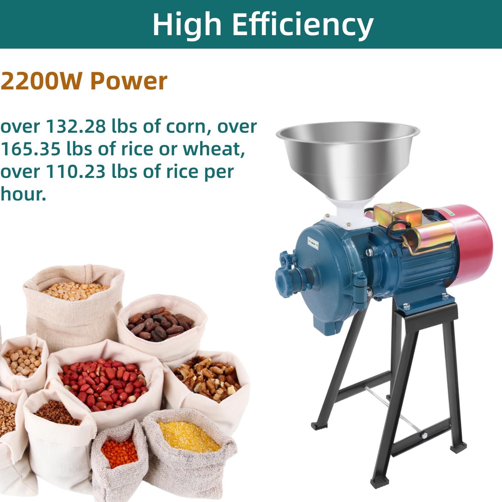 High Working Efficiency: The electric grain mill boasts a robust power of 2200W, a rotating speed of 1400r/m, which provides you with strong power and ensures that your grains can be ground quickly and easily.