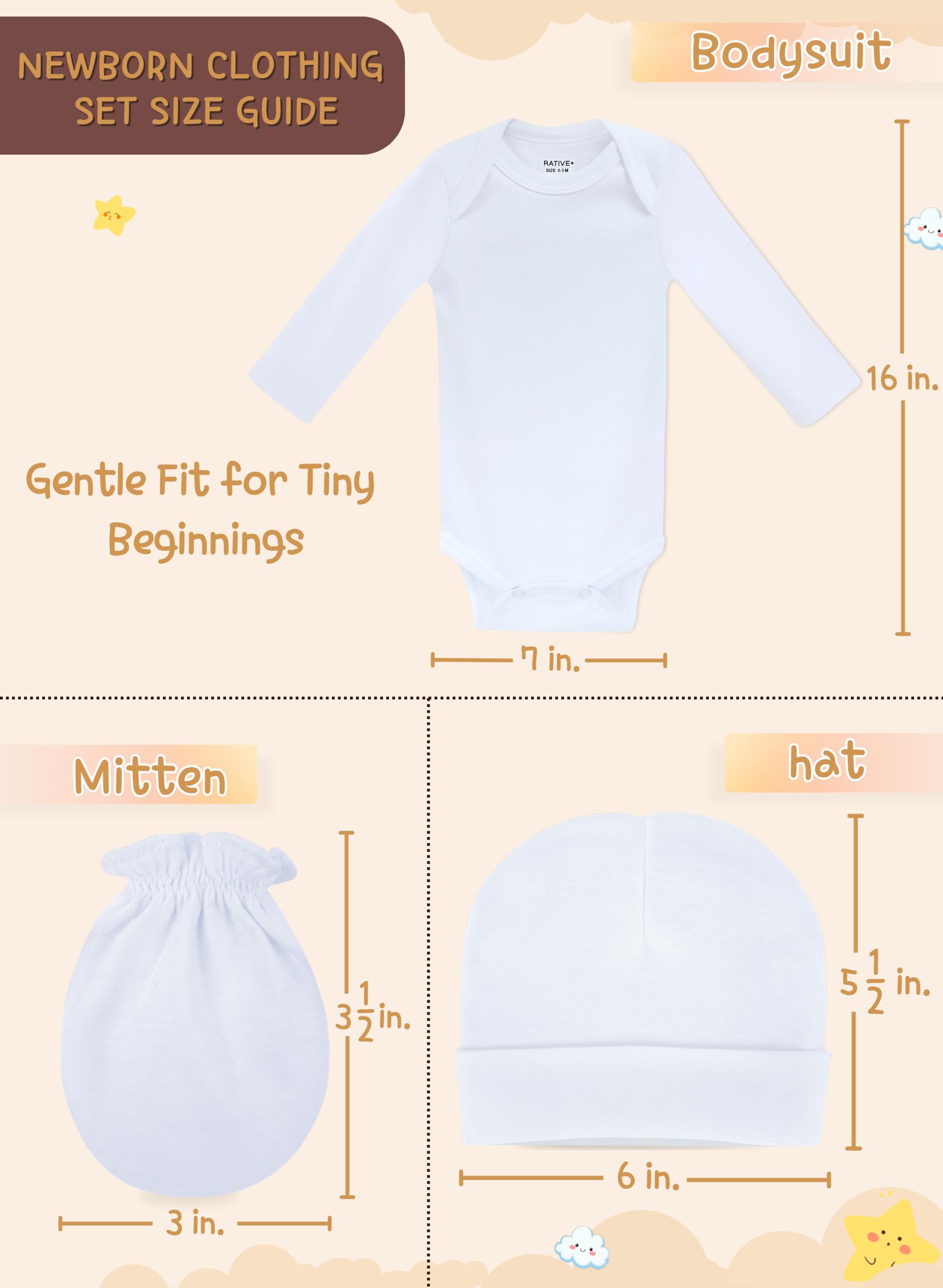 Complete Newborn Essentials Set – Includes one Long sleeve bodysuit, cozy Hat, and soft mittens – perfect for welcoming your baby home.