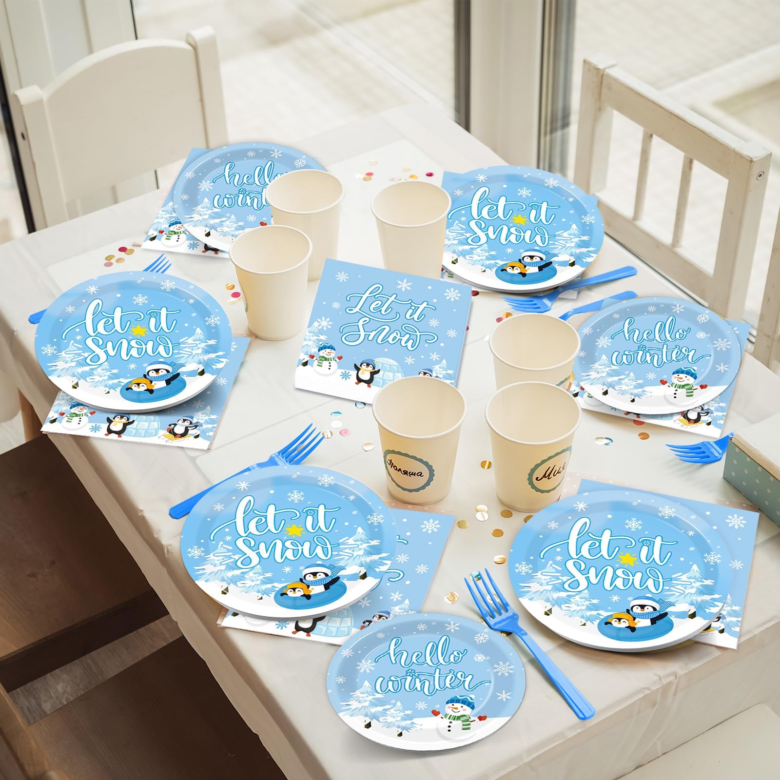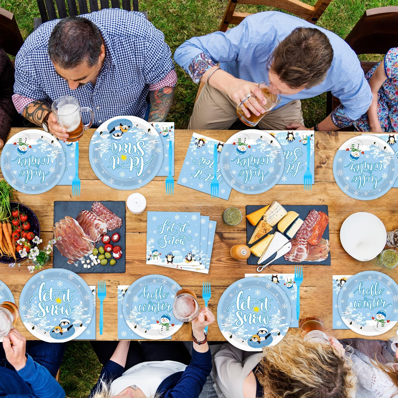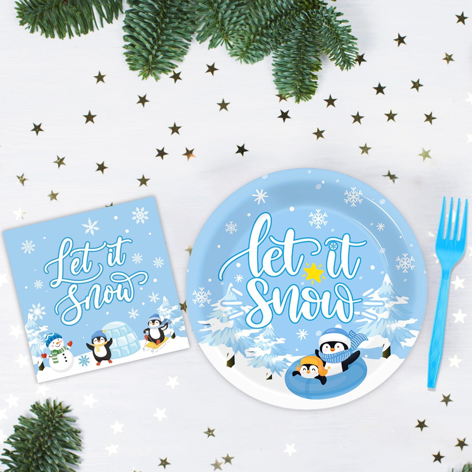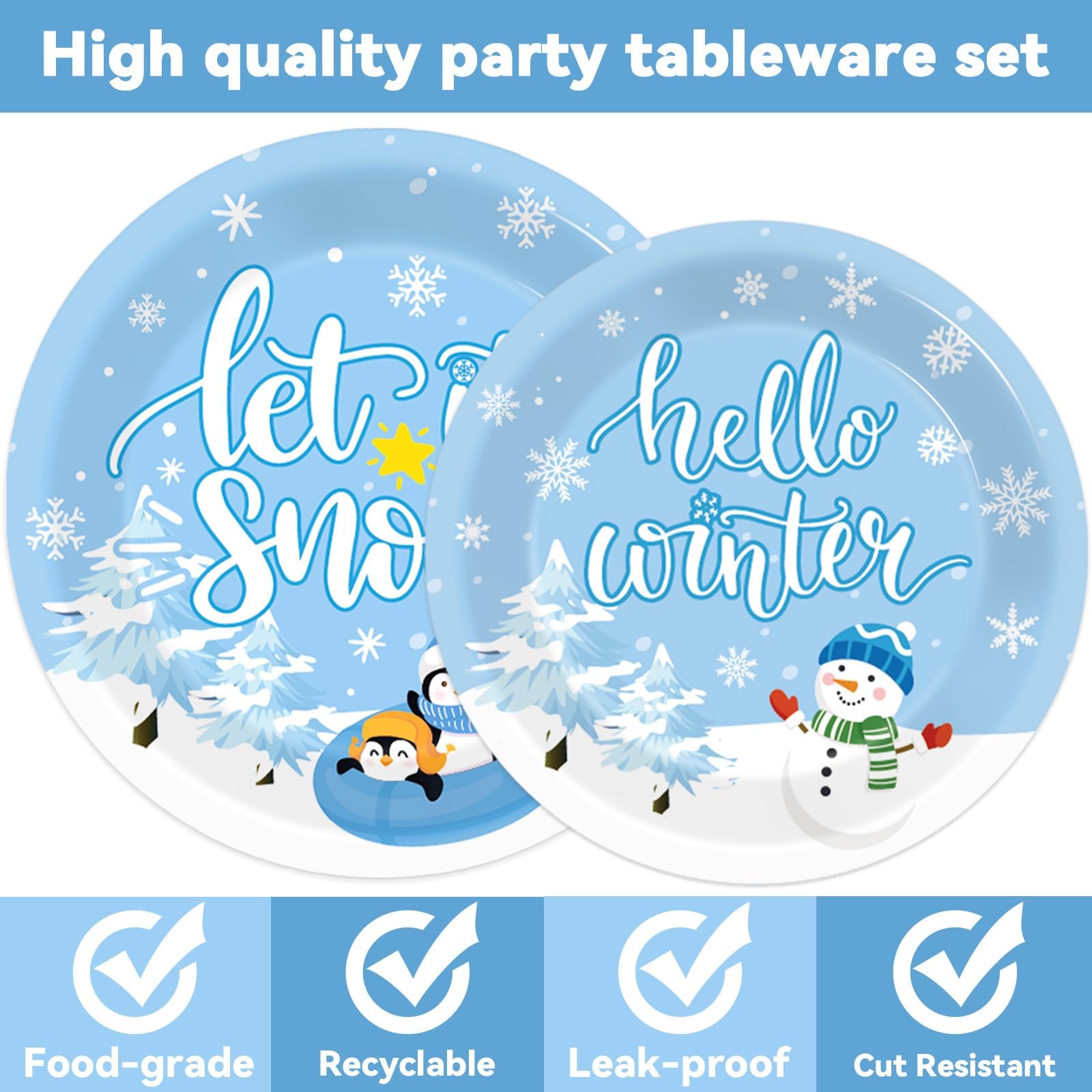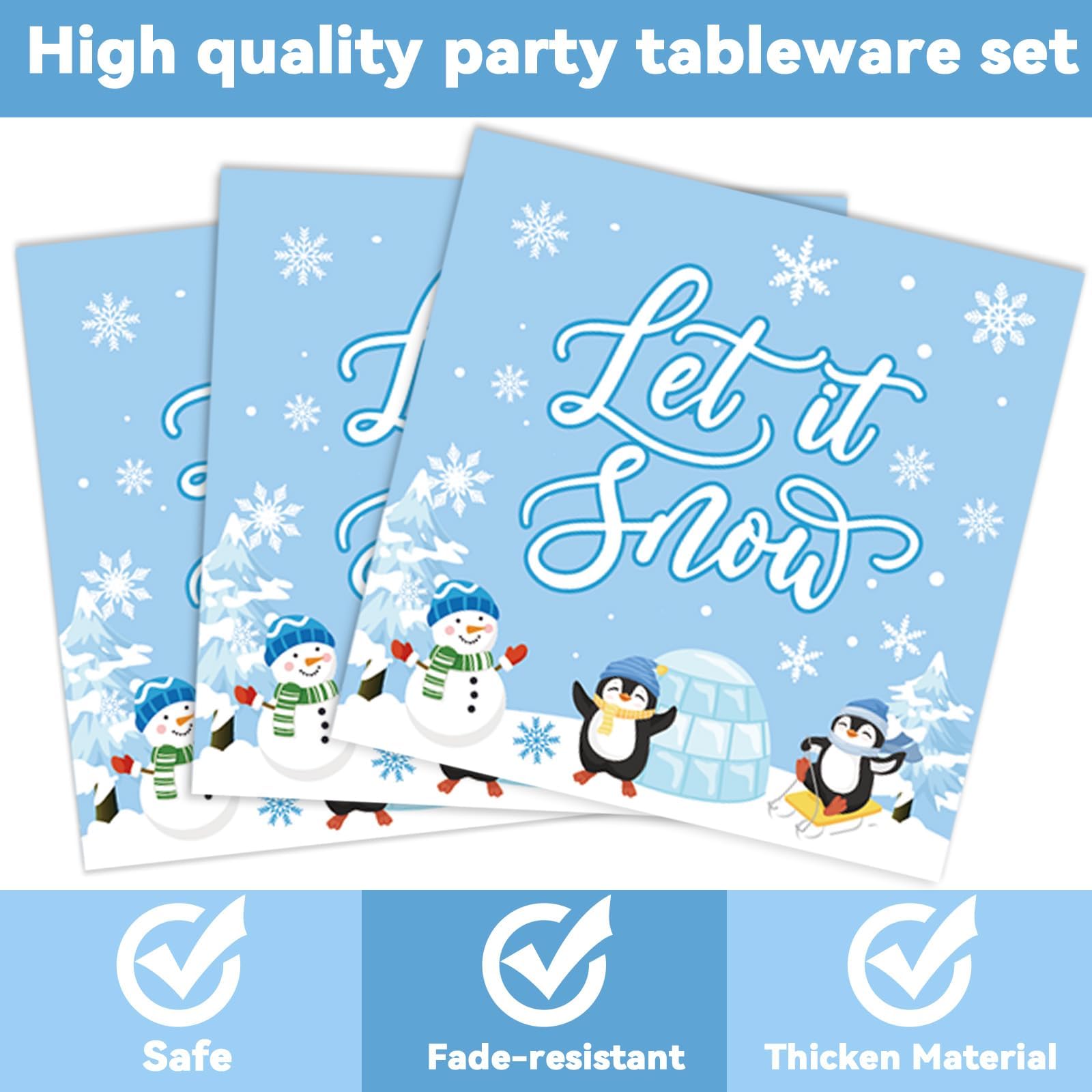 Exquisite Patterns:This winter theme party dinnerware set is printed with “Let It Snow”,and with snowman penguin snowflake,bright and beautiful colors.It's very suitable for Christmas theme party decoration as well as for daily life.