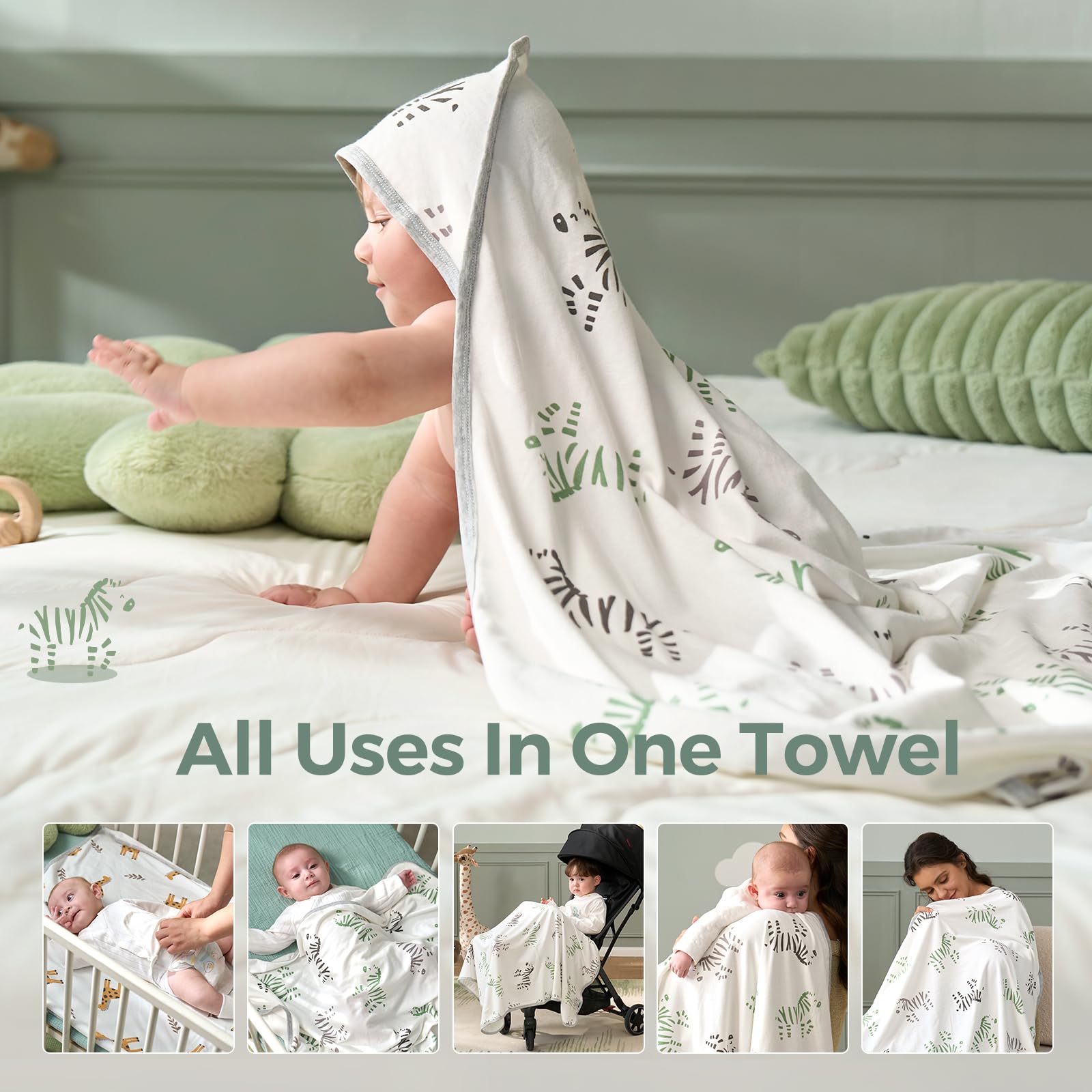 [ Hooded Baby Towel -- Soft As A Cloud ] Made of 50% viscose, 50% cotton. Cotton is soft while the viscoe has a silky feel. Wrapping your baby in warmth and softness, Momcozy baby bath towels are like a mother's embrace making each bathing a tender moment