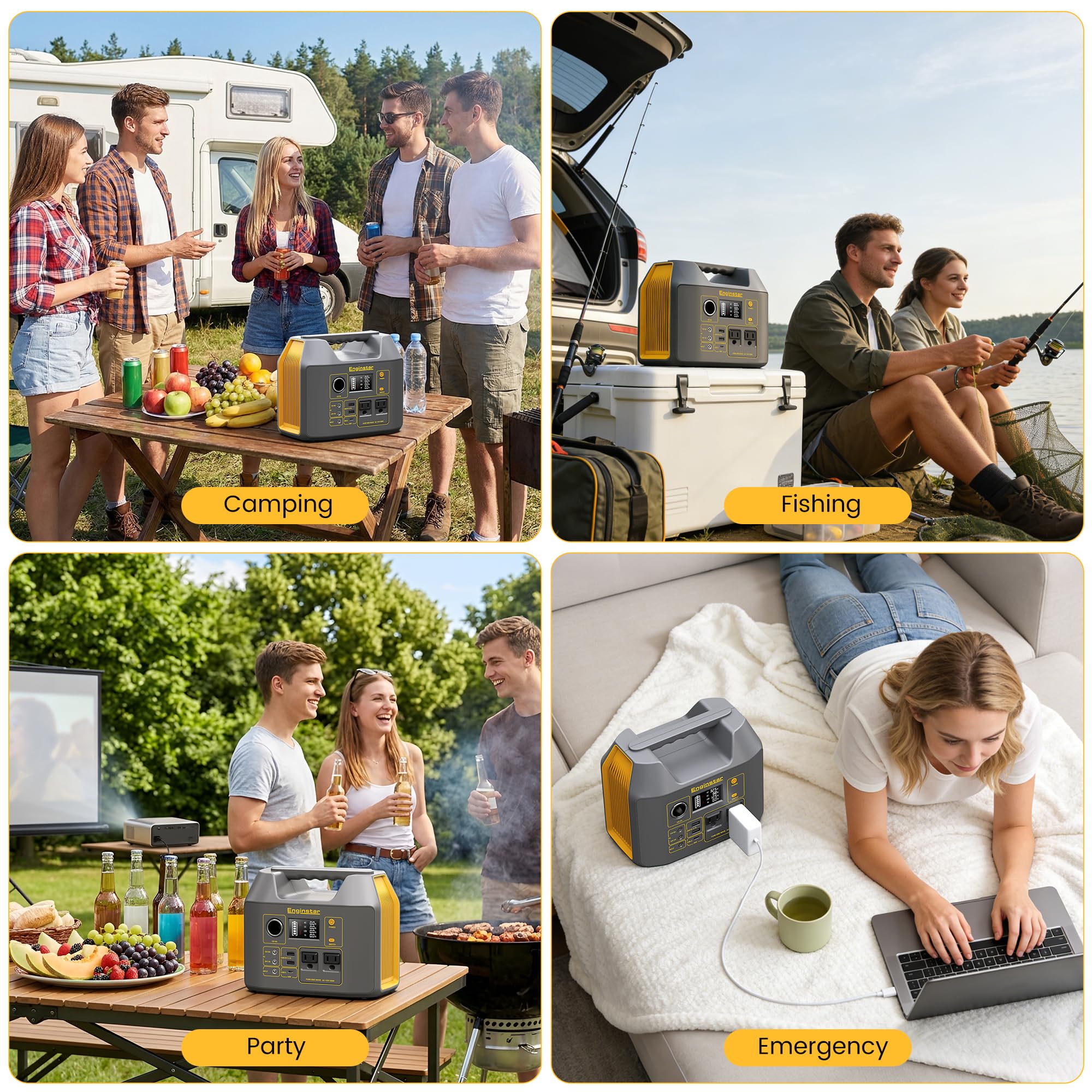 PURE SINE WAVE & MULTIPORT: solar generator for camping built with two 110V pure sine wave AC outlets, more efficient and more stable, which can power for your lamp, fan and protect your important file in laptop from damage. DC 12V Car Port can provide power for mini fridge and car charger. Equipped 2 DC outputs (12V 8A & 24V 3A) can provide power for vacuum. 2 USB outputs (5V/3.1A) for phone and tablet, USB-C fast charge port (18W)
