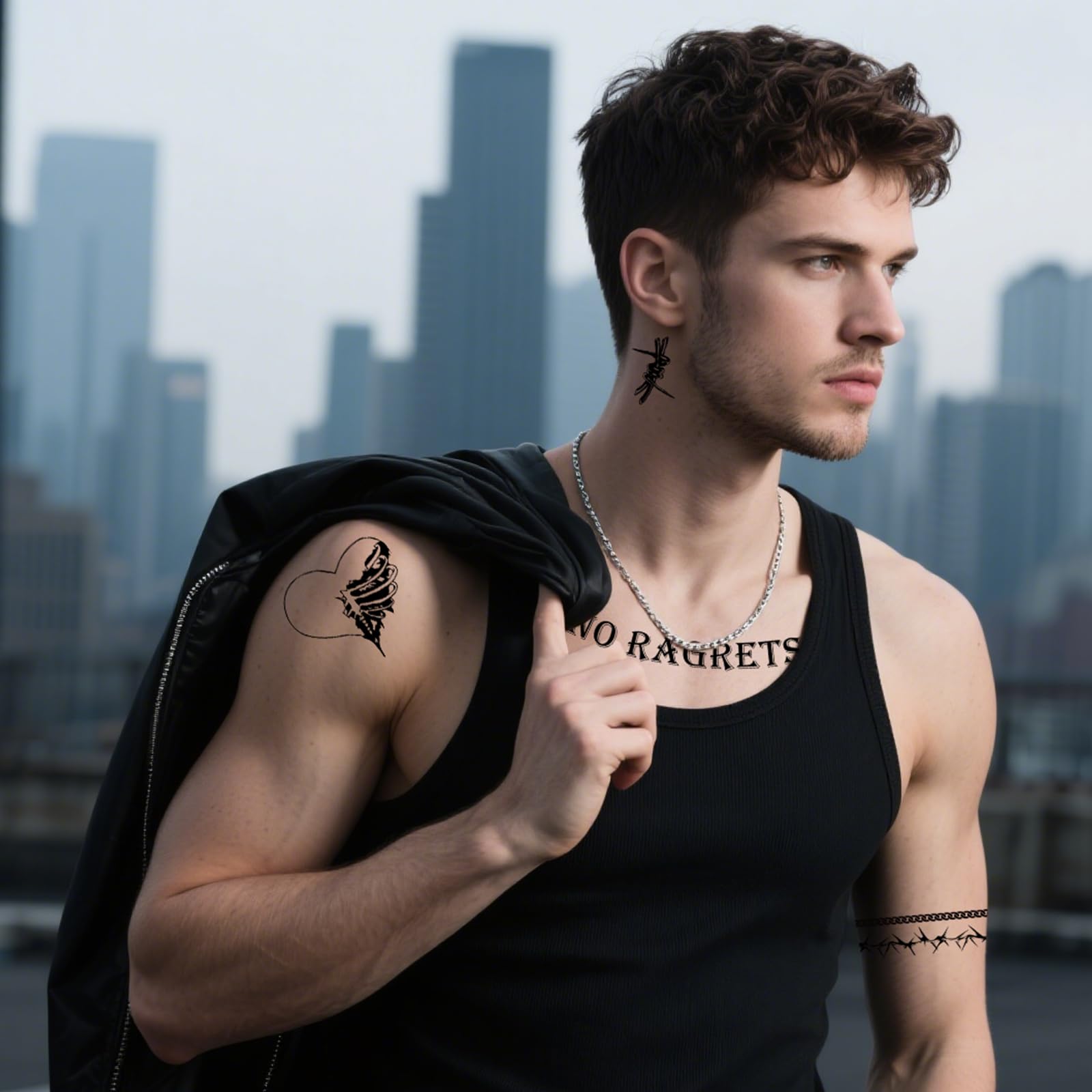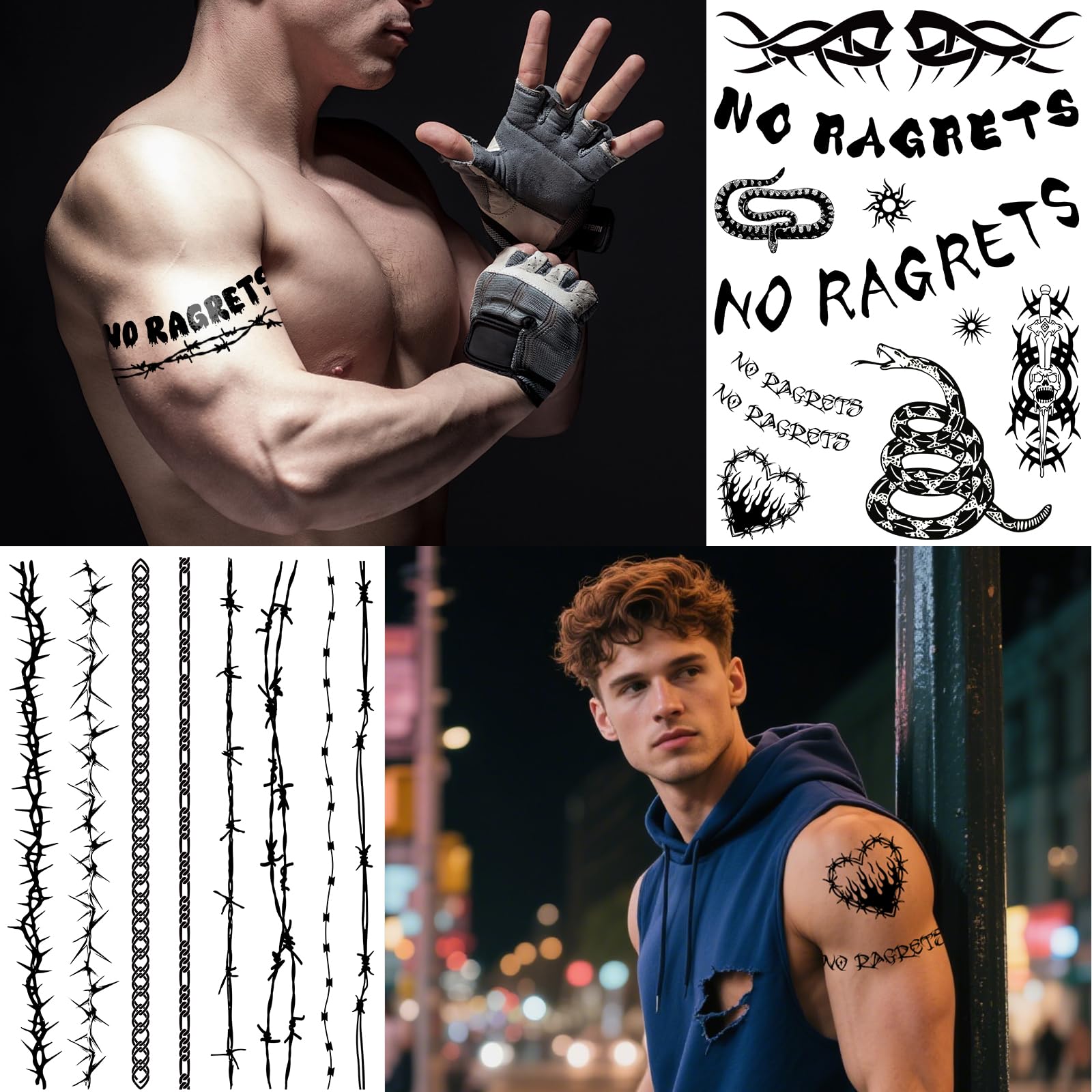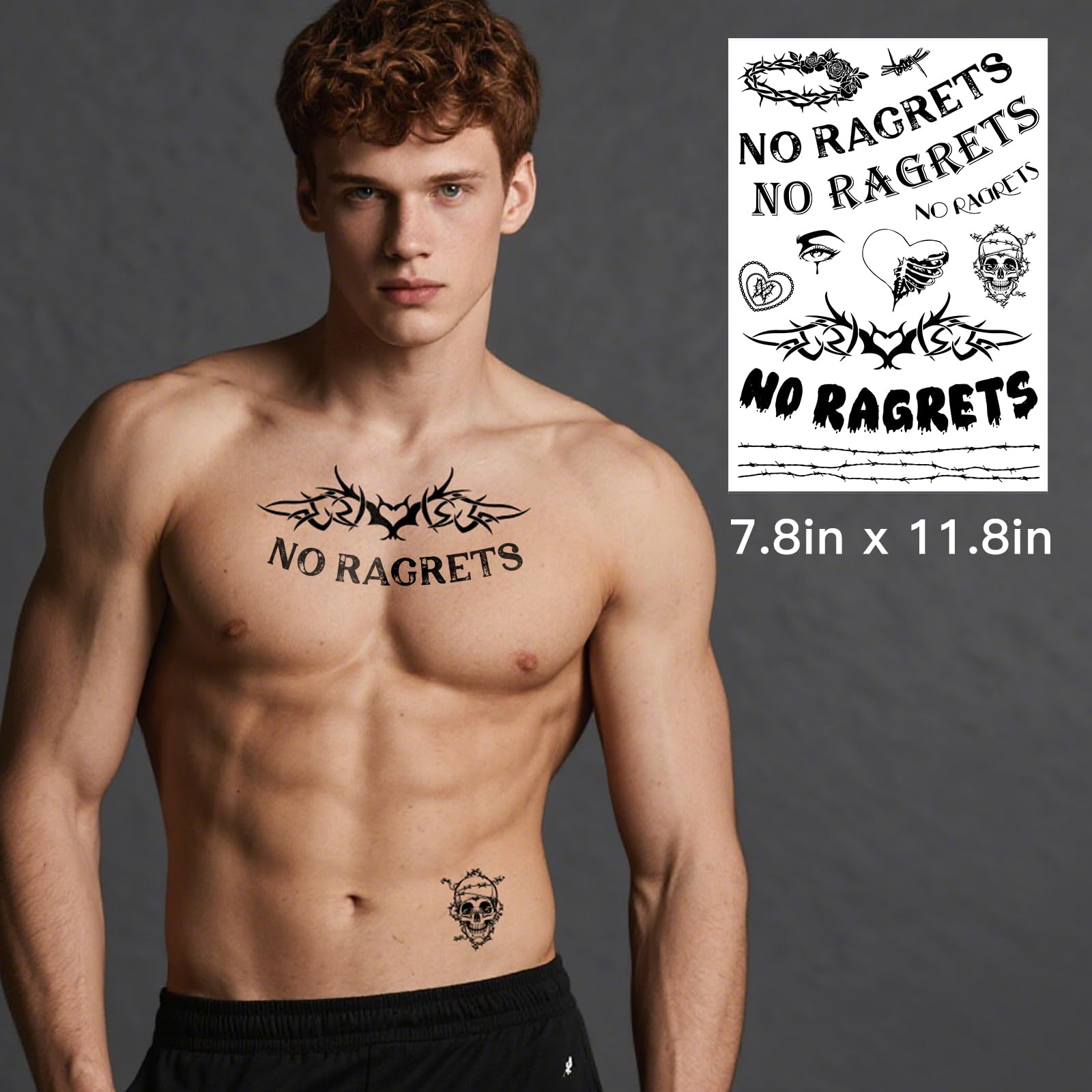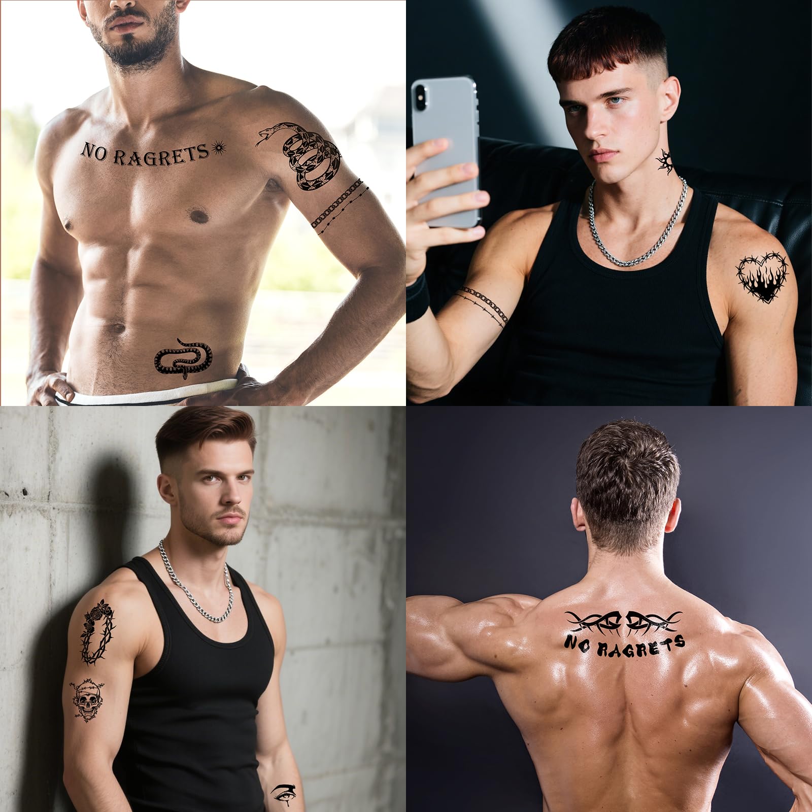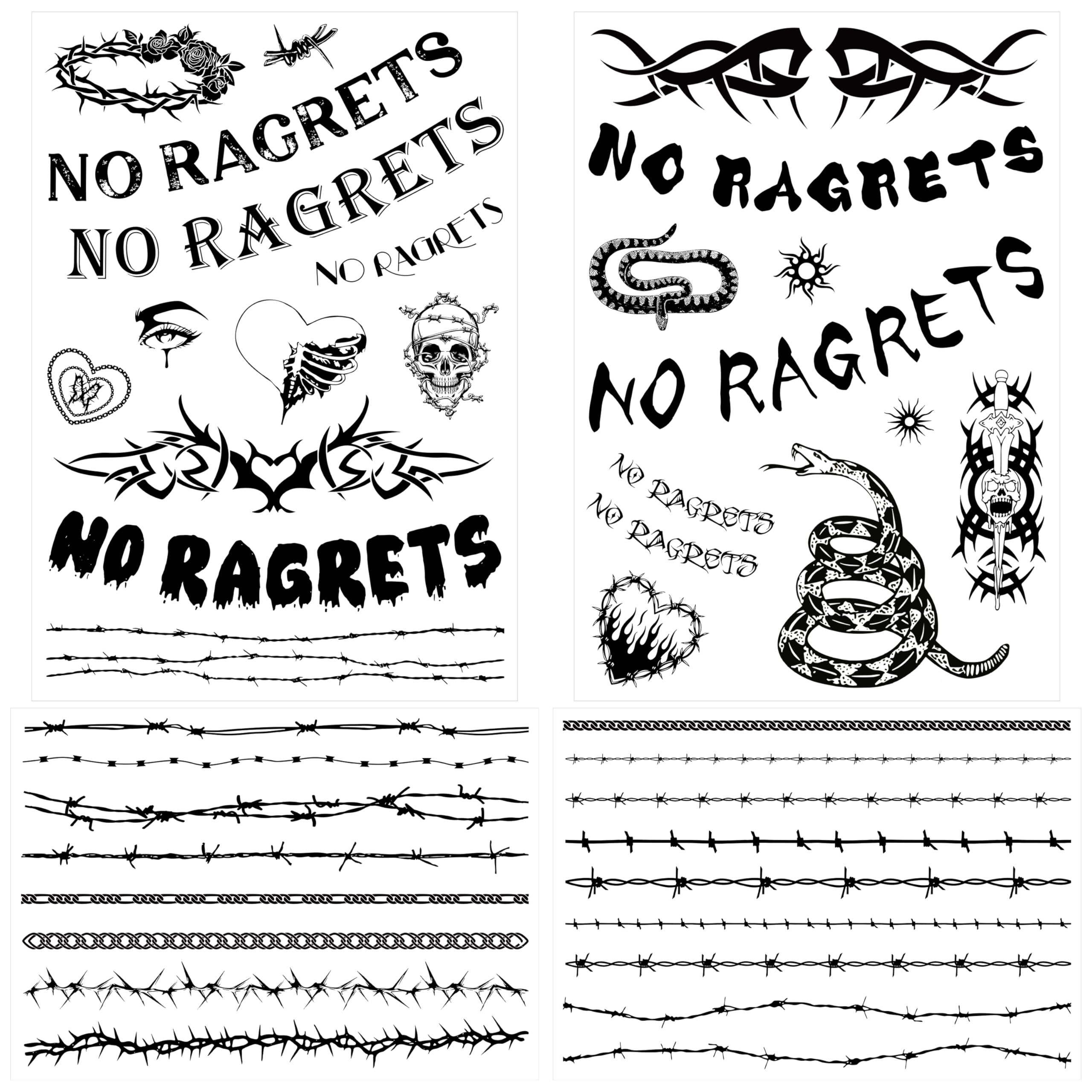 Diverse & Realistic Styles: Each sheet features 10+ tattoos temporary realistic designs, totaling 40+ styles, including fake barbed wire, skulls, "No Ragrets," and more. Whether you want a tramp stamp temporary tattoo, neck tattoo, or spine tattoos for women, this collection has a variety of large and small patterns to suit your style.