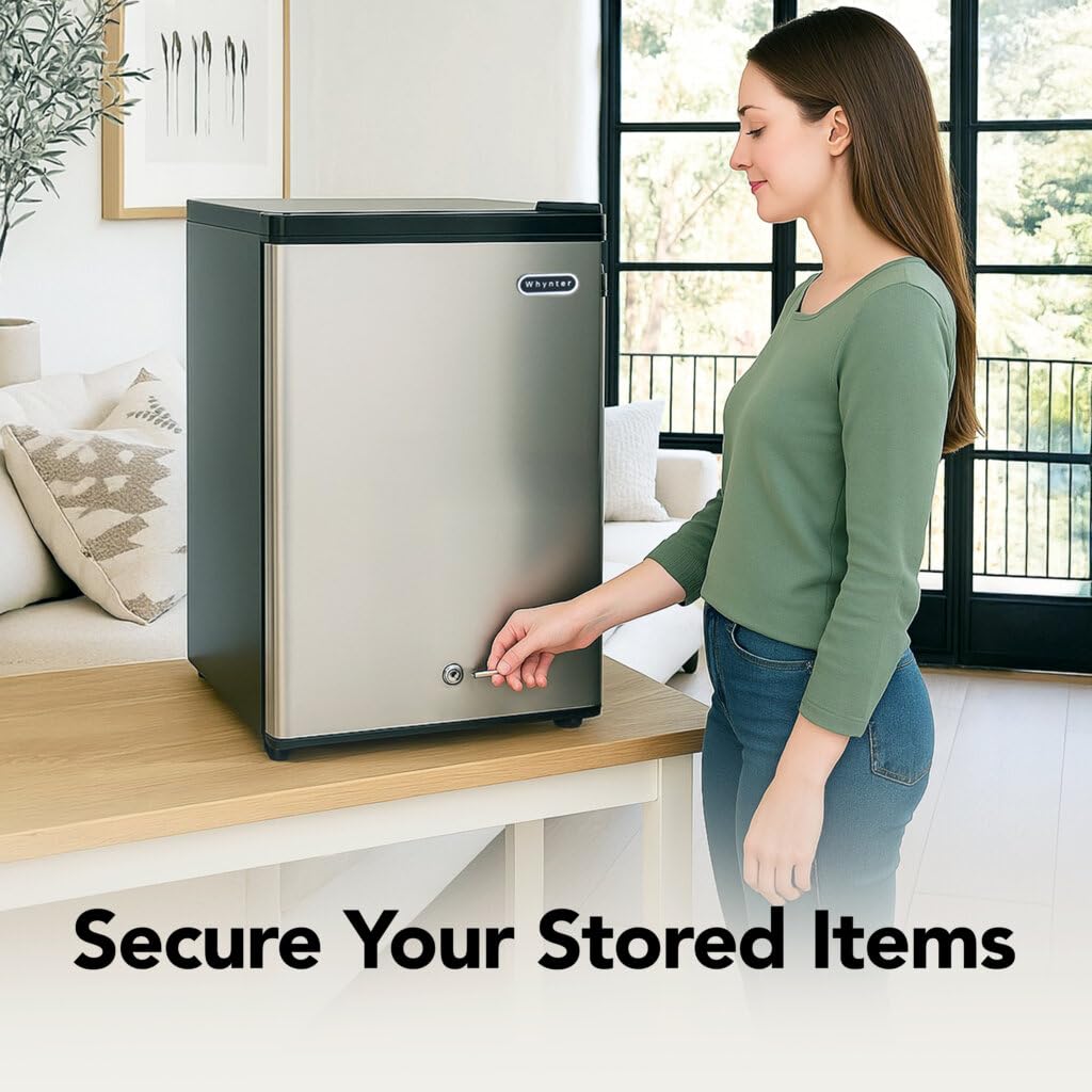 Secure Storage: The perfect freezer for garages, offices, basements and other small spaces, this compact freezer includes a cylinder lock and 2 keys for added security when storing your food