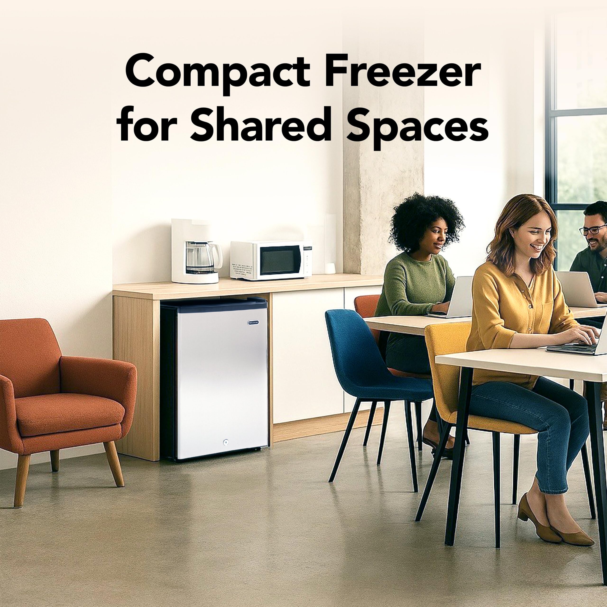 Small Upright Freezer: Ideal for any small space where cold storage is needed, this mini freezer can be used as a kitchen, office, basement or garage freezer; 60 Hertz frequency