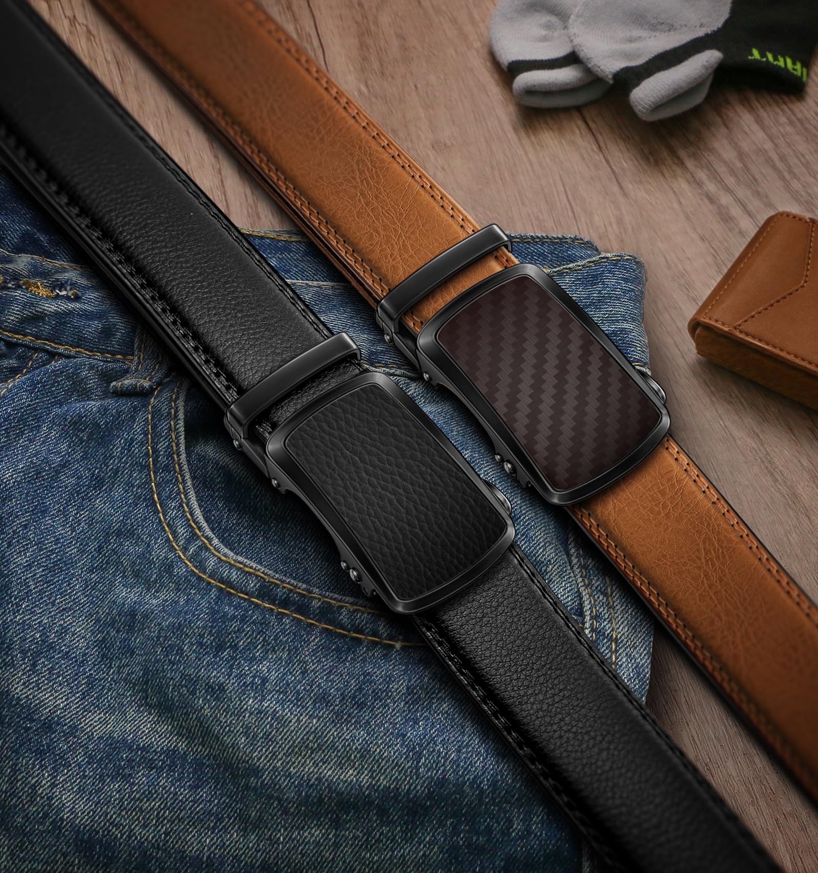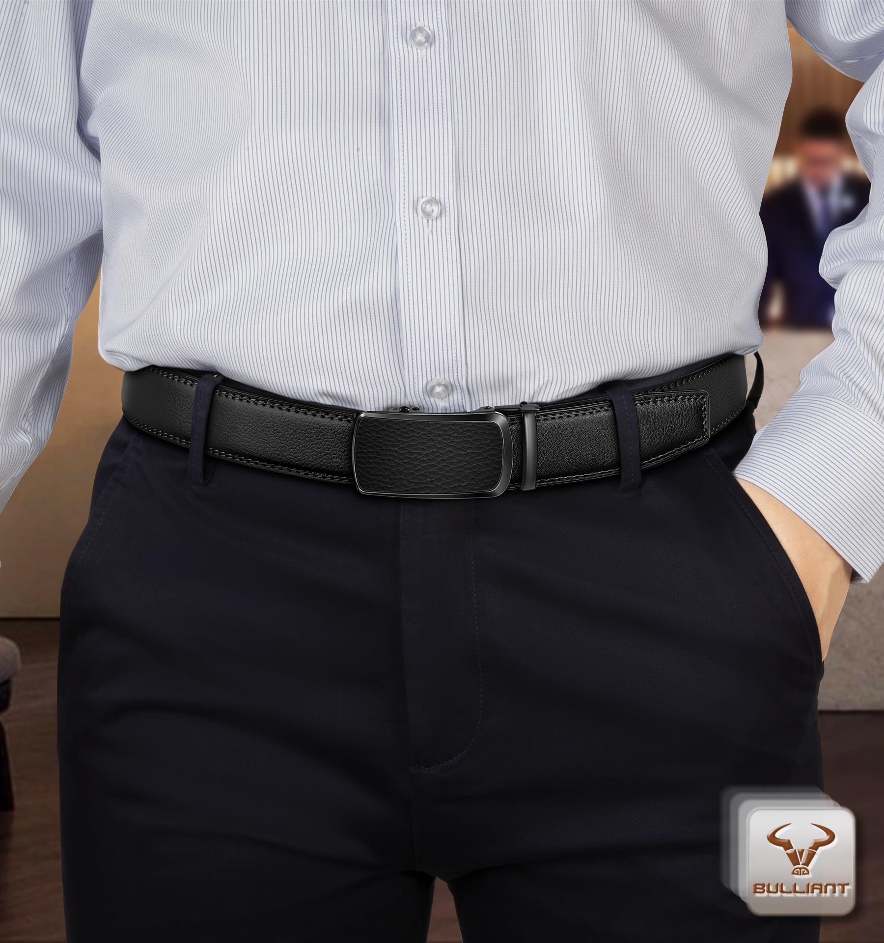 PRECIESE FIT--The Bulliant men's belt is installed an slide ratchet with 32 notches and each gapped at 1/4",with this belt,you can get an perfect fit any time for all-day comfort. Just say goodbye to the hassle of belts that are too tight or too loose;