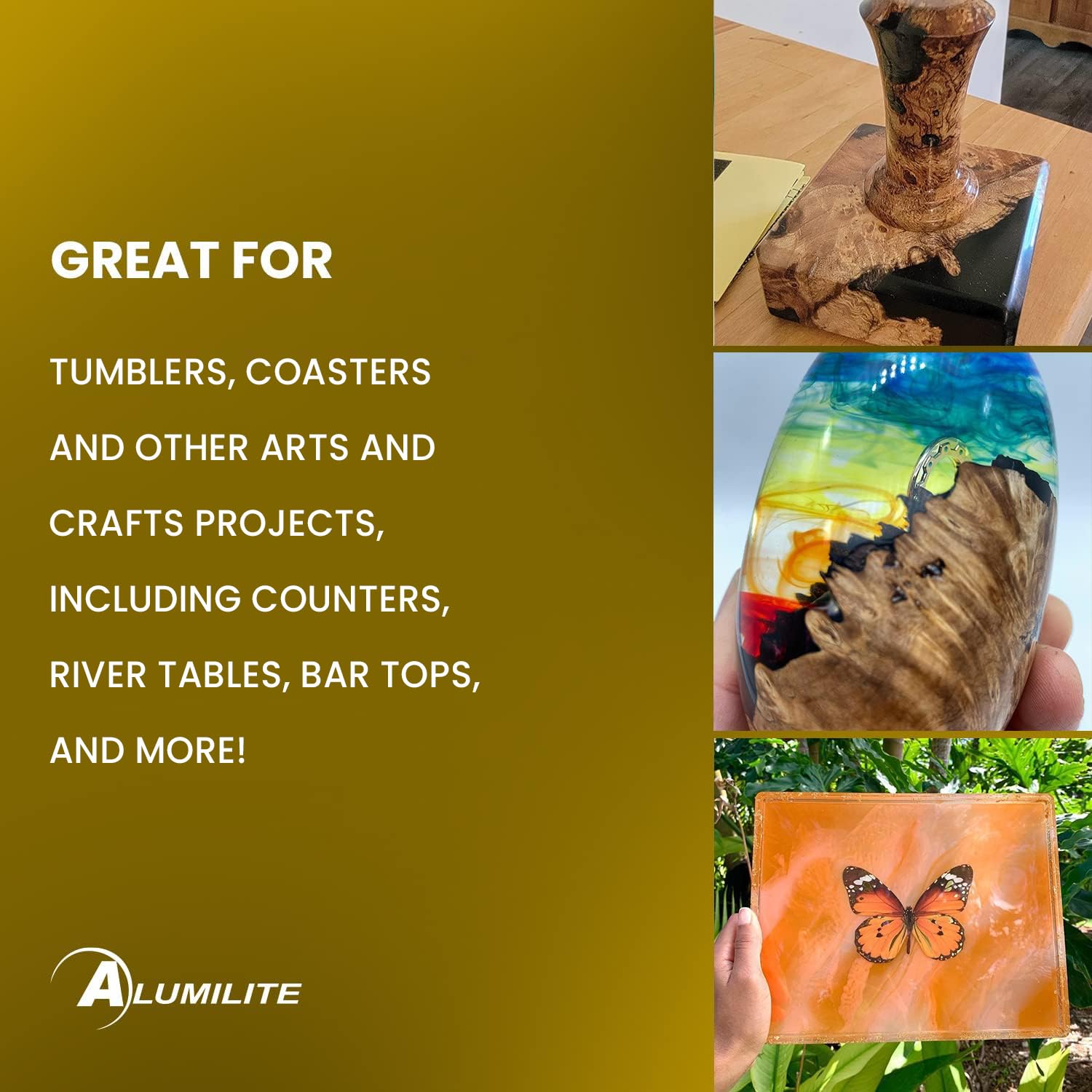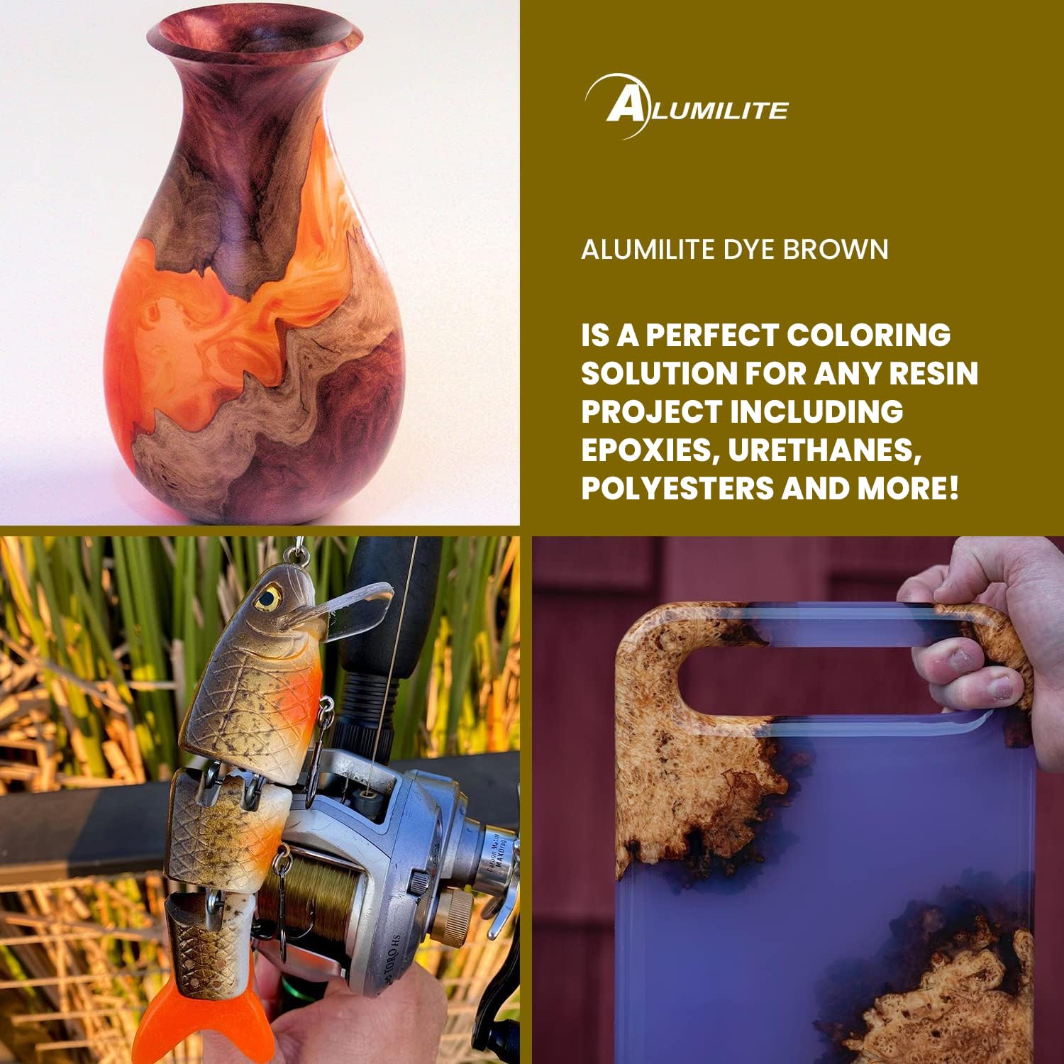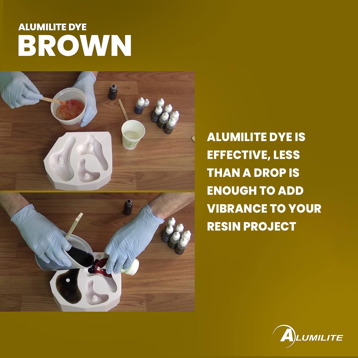 Resin Enhancement - Add Alumilite dyes to clear or opaque resins, or with epoxy for dynamic art and craft coatings, achieving translucent or solid colors for versatile use.