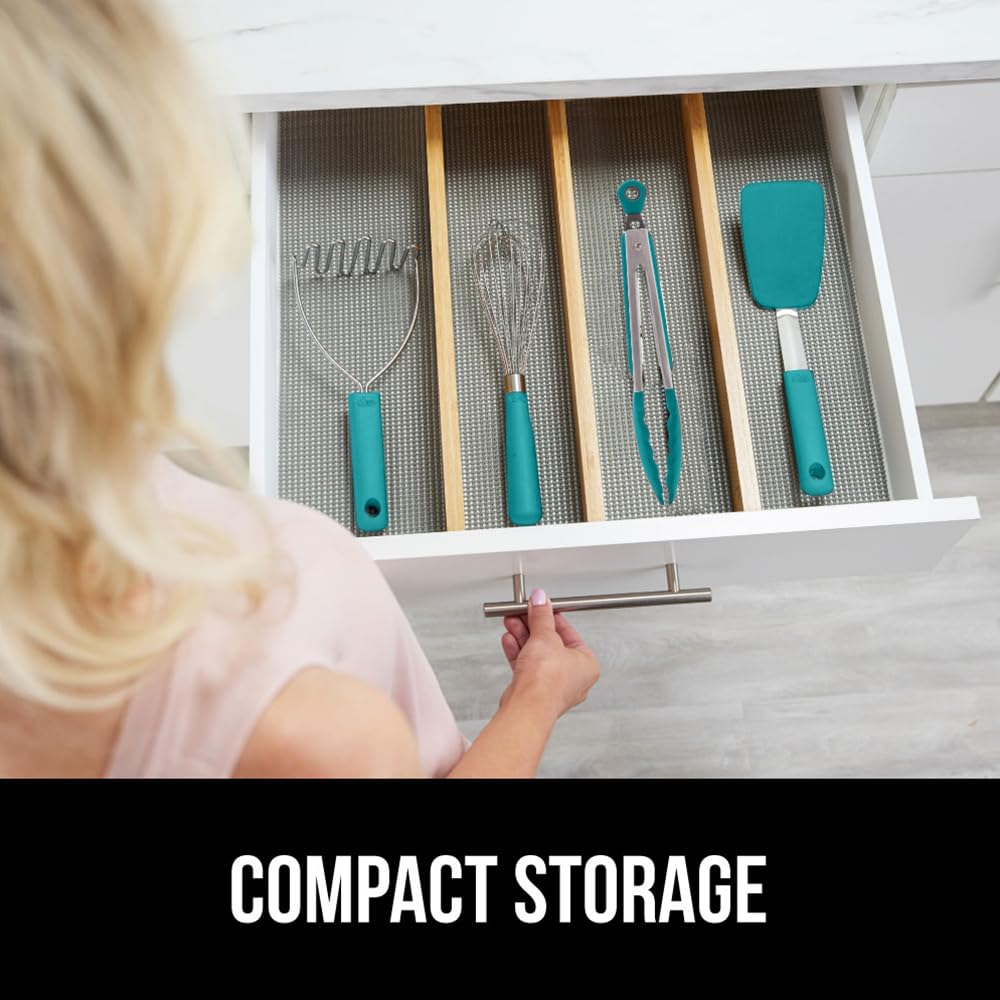 EASY PULL LOCK: the tongs easily become compact when you pull the easy pull lock up; they fit seamlessly in most drawers and cabinets for easy storage; also include a hook for easy hang