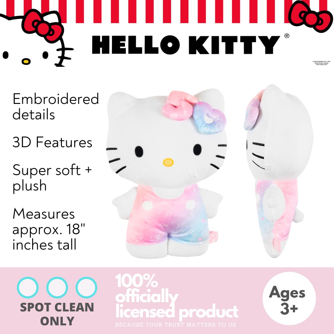ITEM INCLUDES (FOR AGES 3 AND UP): A Hello Kitty shaped plush cuddle pillow that measures approximately 18 x 13 x 6 in. The perfect size to snuggle up for any Sanrio fan!