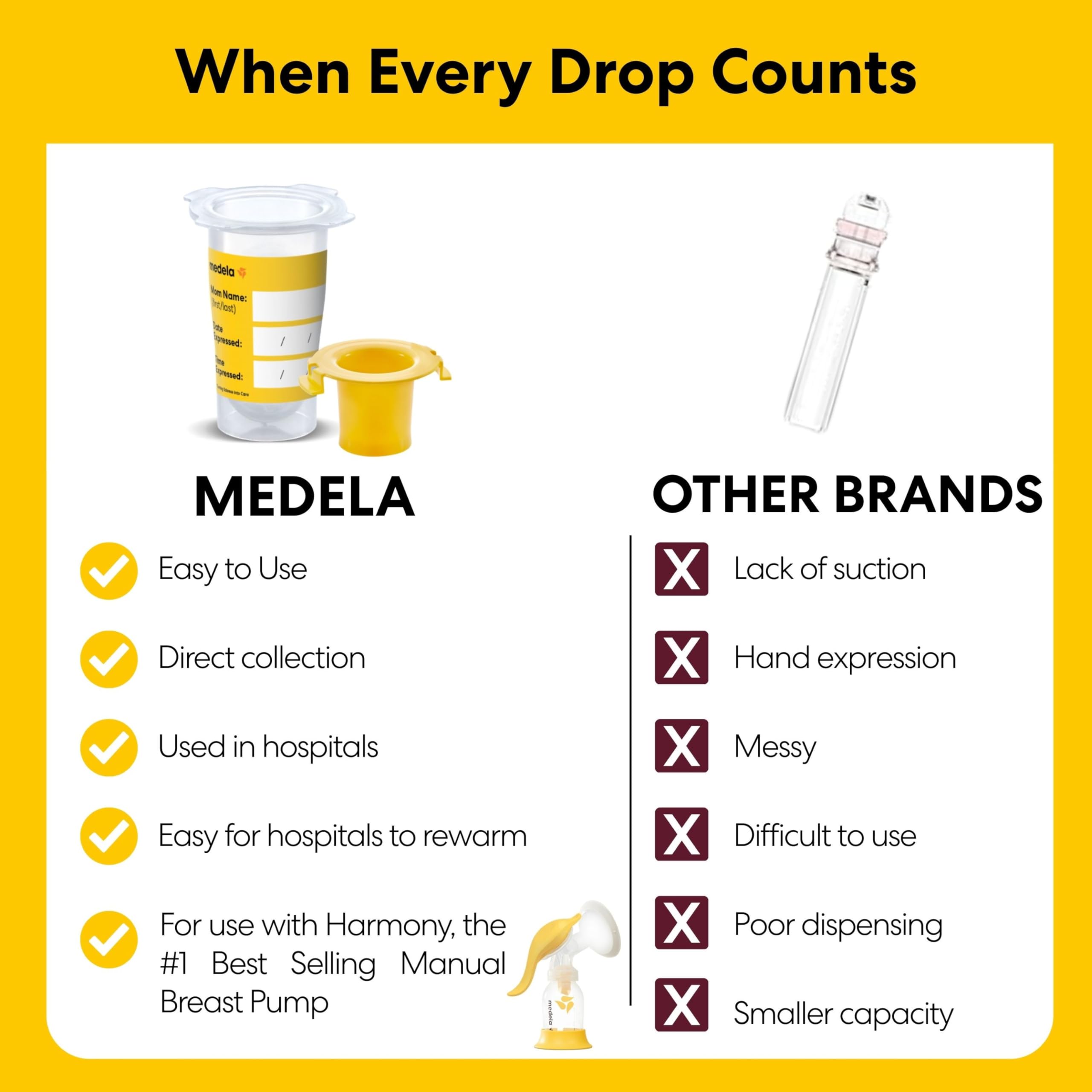 For Use with Harmony Manual Breast Pump: Designed for use with Harmony, the #1 best selling manual hand pump to easily collect, store, and feed colostrum (Harmony manual breast pump sold separately).