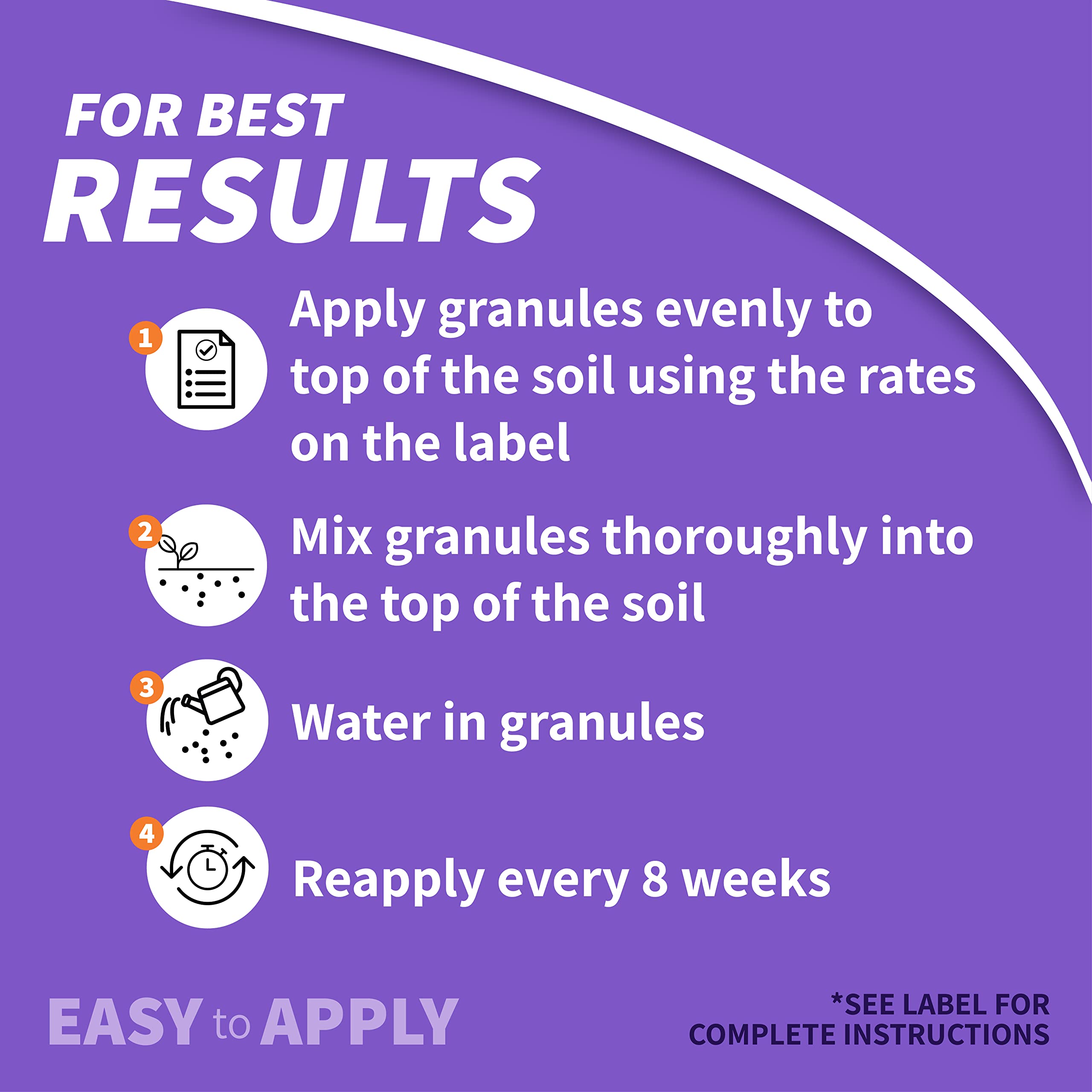 This product arrives conveniently ready-to-use; to use apply granules evenly to the top of the soil and mix thoroughly into the soil, water in granules and reapply every 8 weeks as needed; for full use instructions please see product label